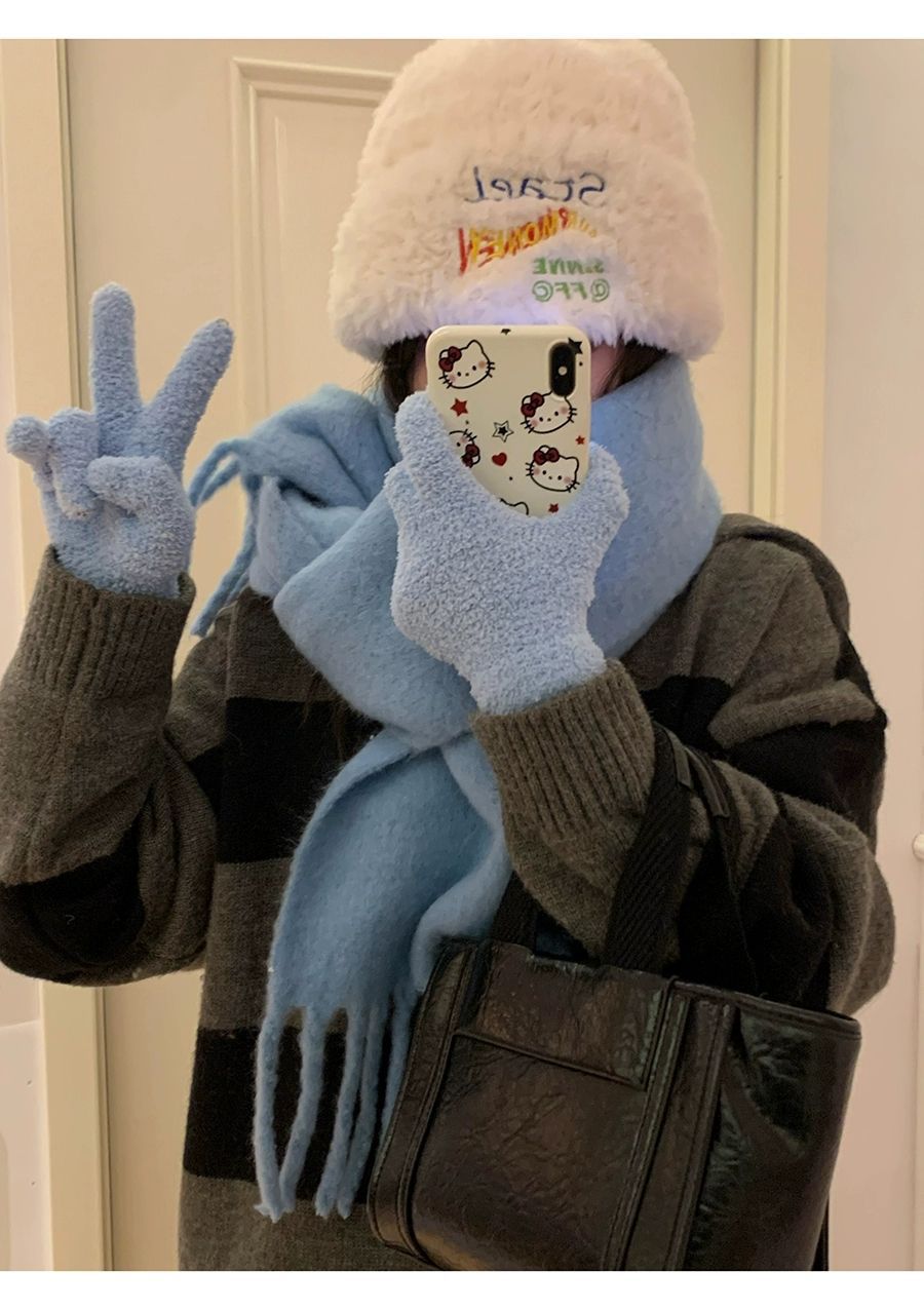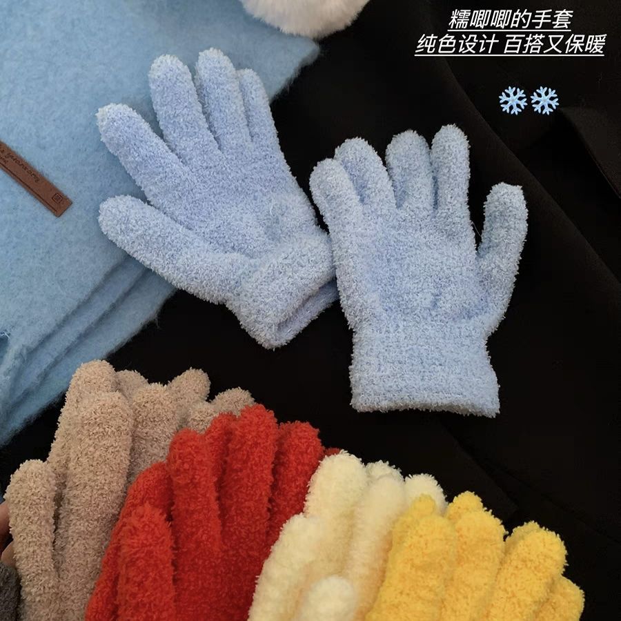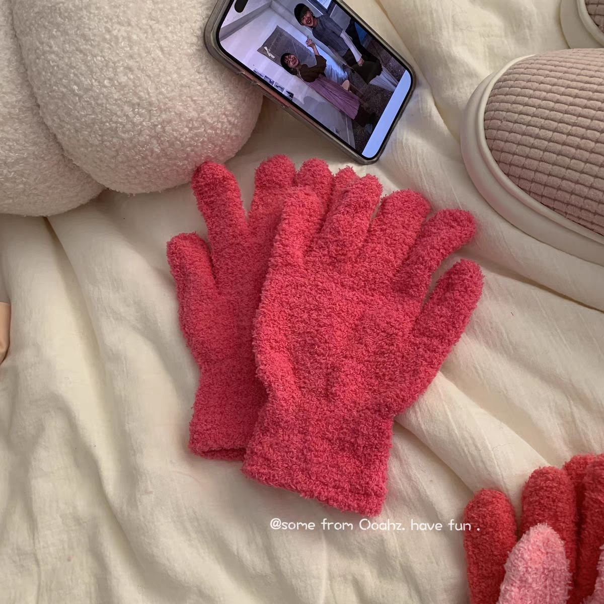 공장 도매 겨울 봉제 장갑 여성 한국어 버전의 산호 양털 손가락 장갑 캔디 컬러 사이클링 따뜻한 감기스토어 가기