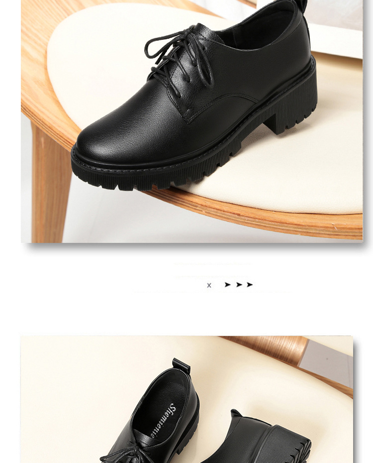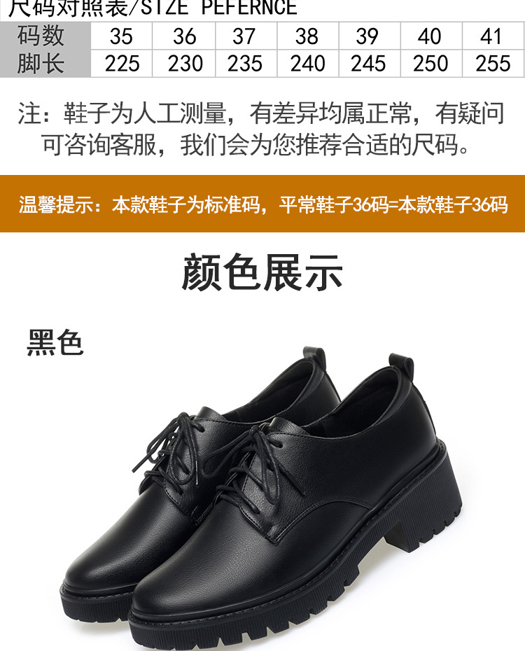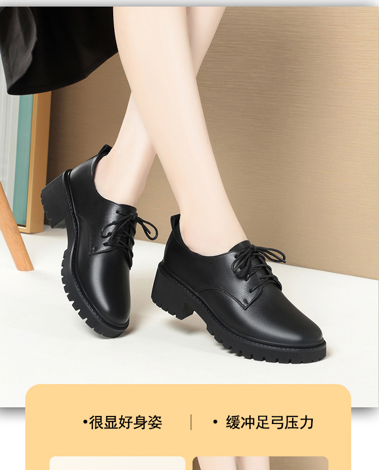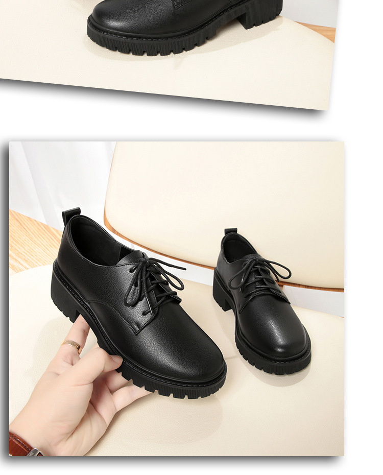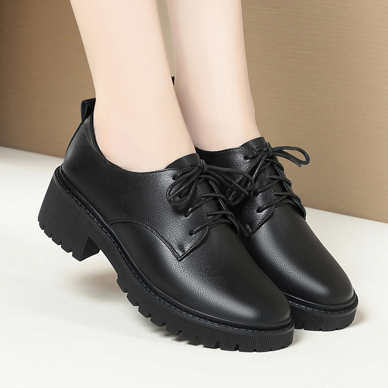 깊은 입 레이스 업 작업 신발 여성 블랙 툴링 작업 통근 여성 가죽 신발 부드러운 단독 표면 여성 신발 가을 겨울
