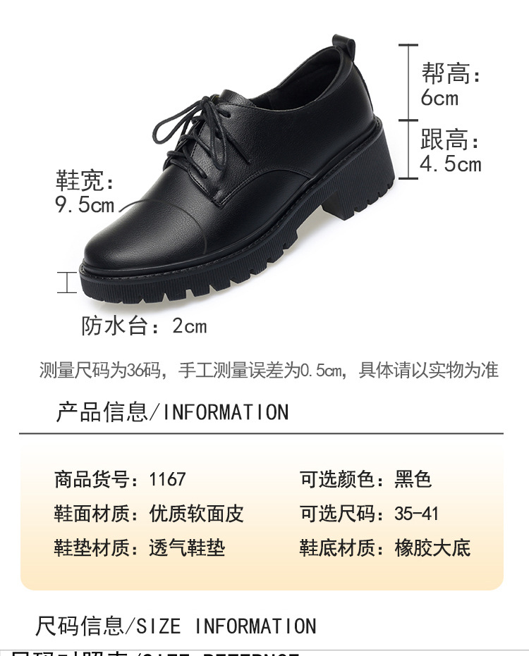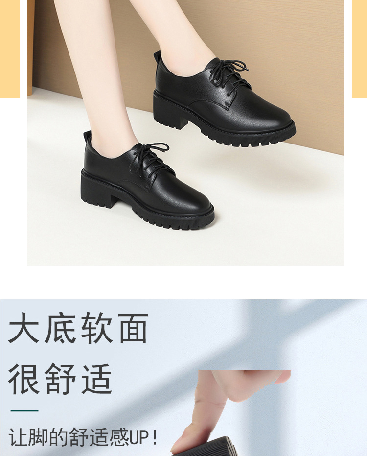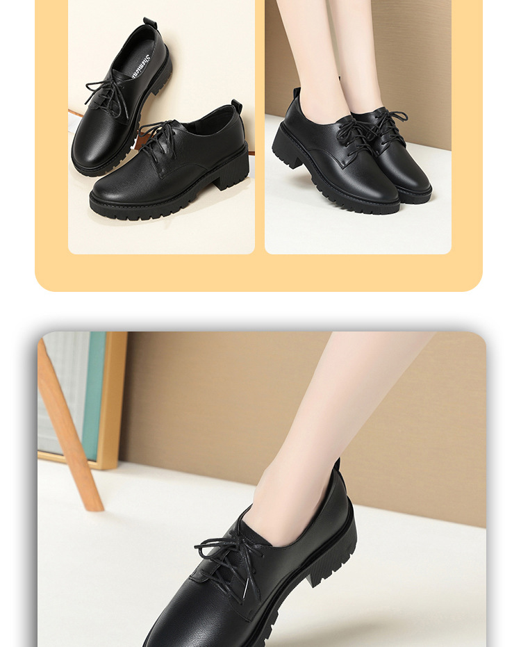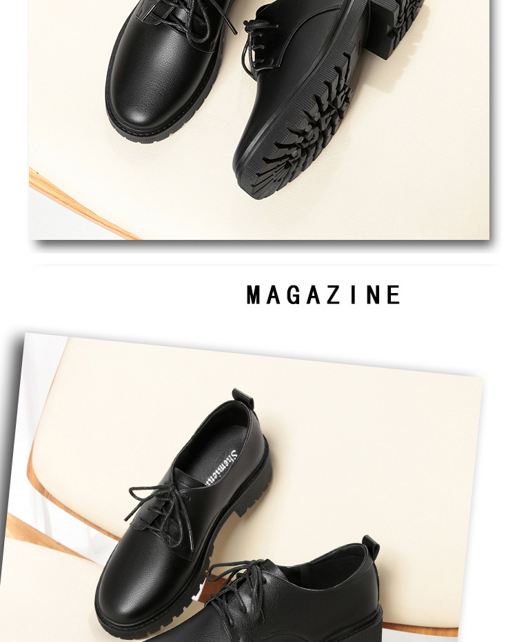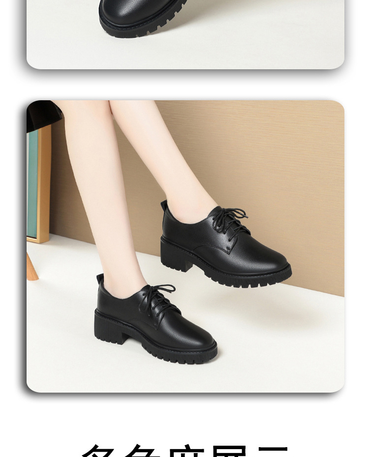 깊은 입 레이스 업 작업 신발 여성 블랙 툴링 작업 통근 여성 가죽 신발 부드러운 단독 표면 여성 신발 가을 겨울
