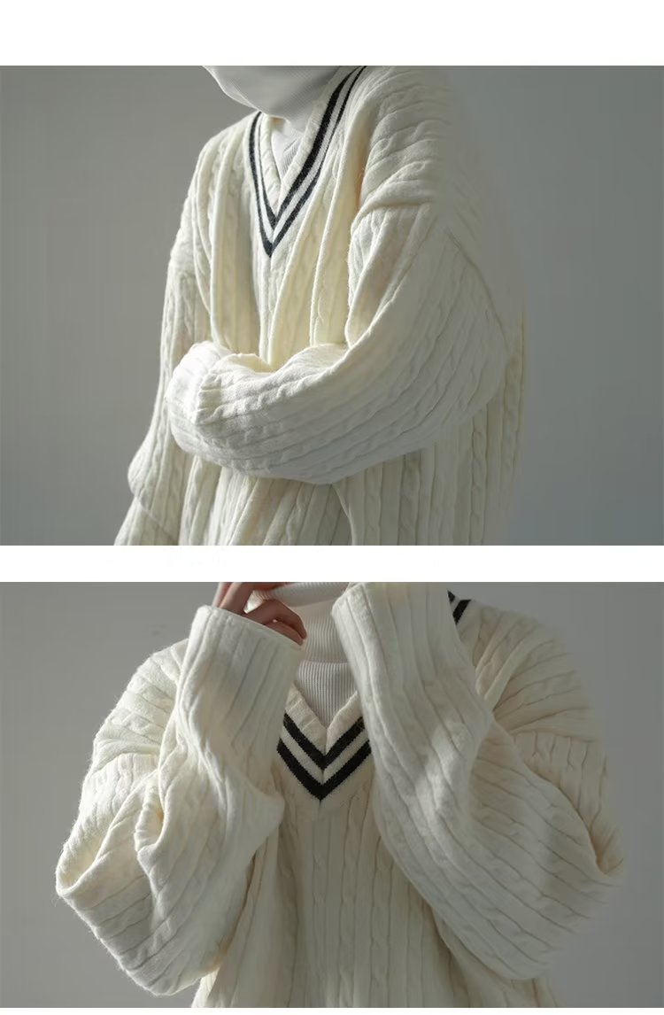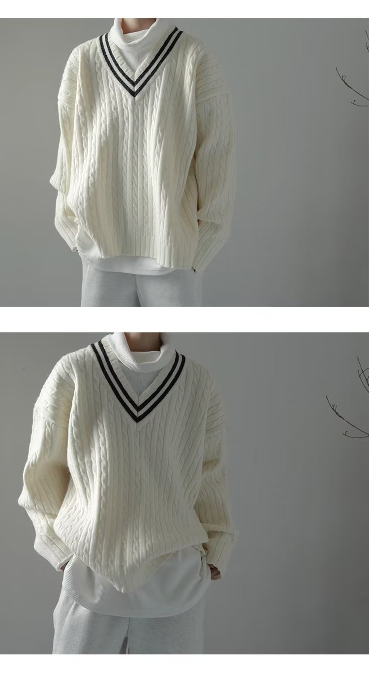 오버 사이즈 일본 대학 스타일 V 넥 트위스트 스웨터 남자 레트로 게으른 스타일 루즈 소프트 왁스 풀오버 스웨터스토어 가기