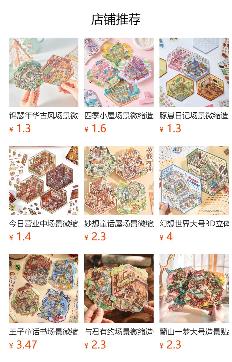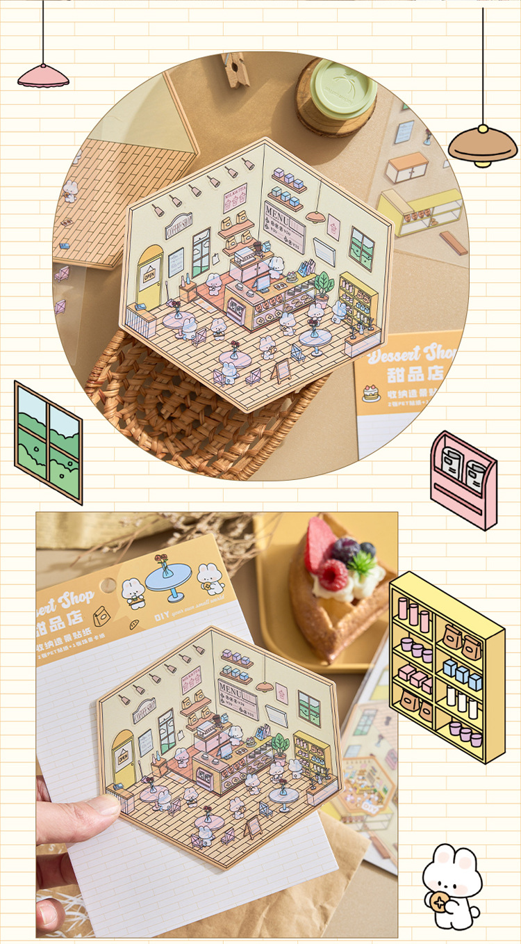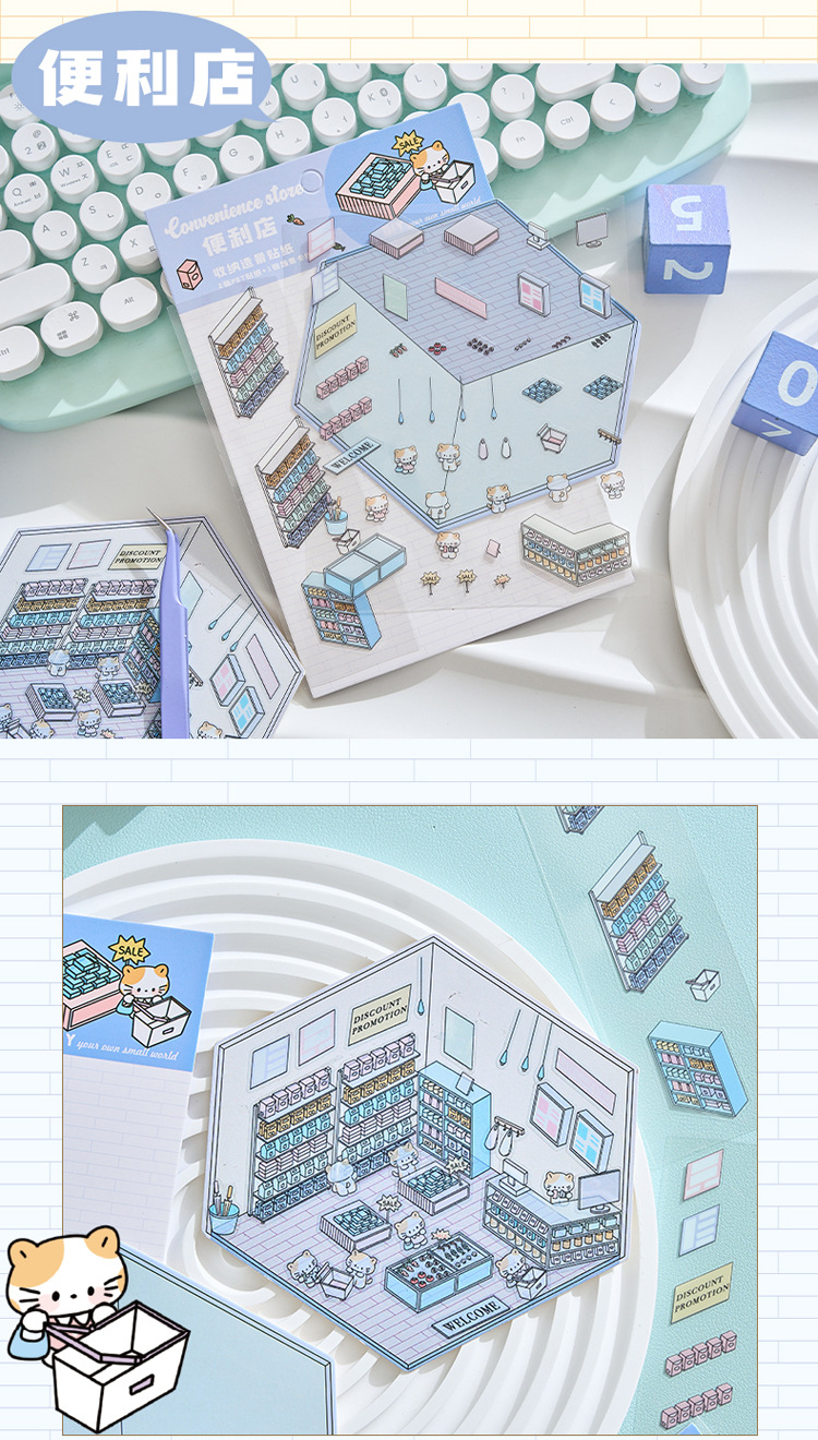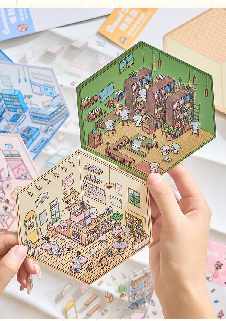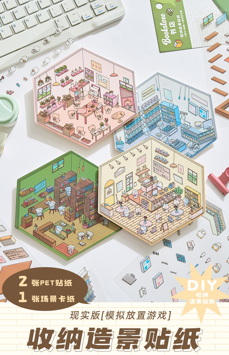 작은 세계 장면 미니어처 조경 스티커 쌓아 3 차원 작은 집 장면 저장 스티커 감압 DIY 장난감스토어 가기