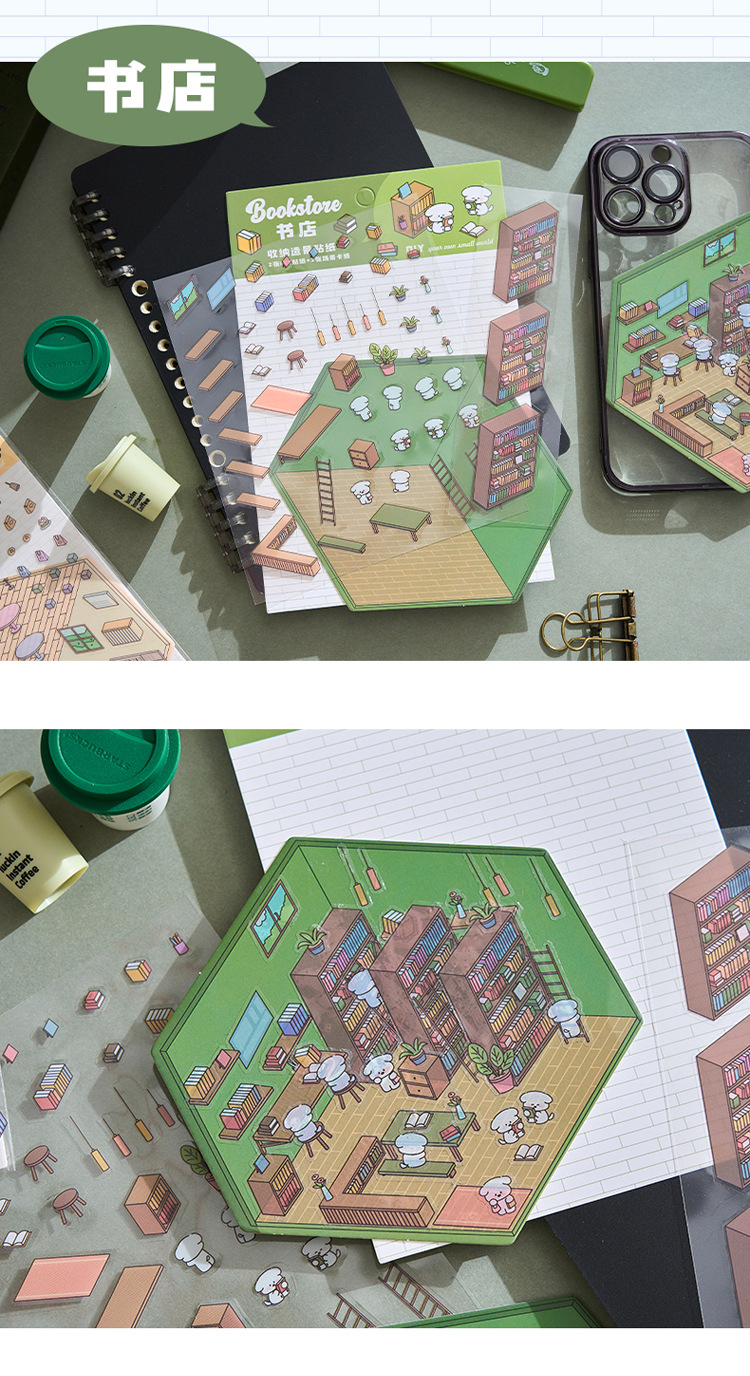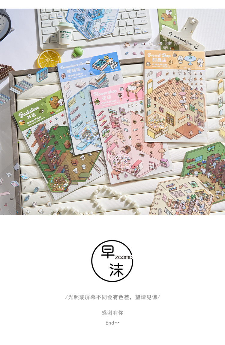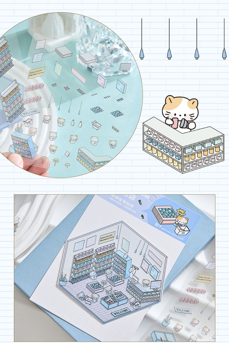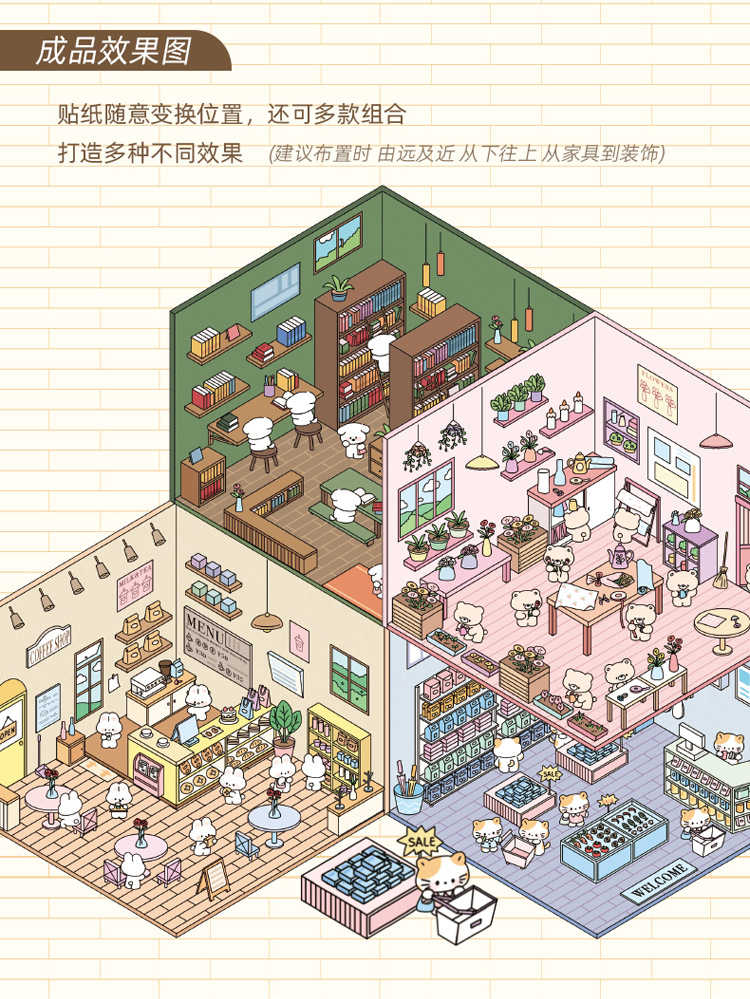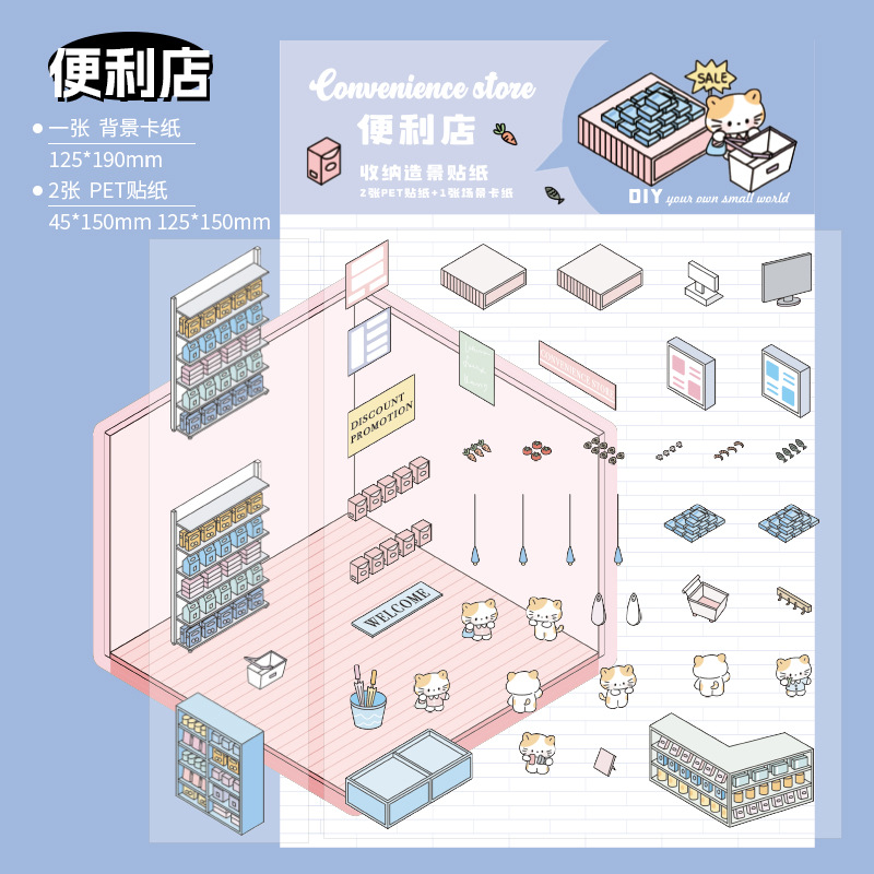 작은 세계 장면 미니어처 조경 스티커 쌓아 3 차원 작은 집 장면 저장 스티커 감압 DIY 장난감스토어 가기