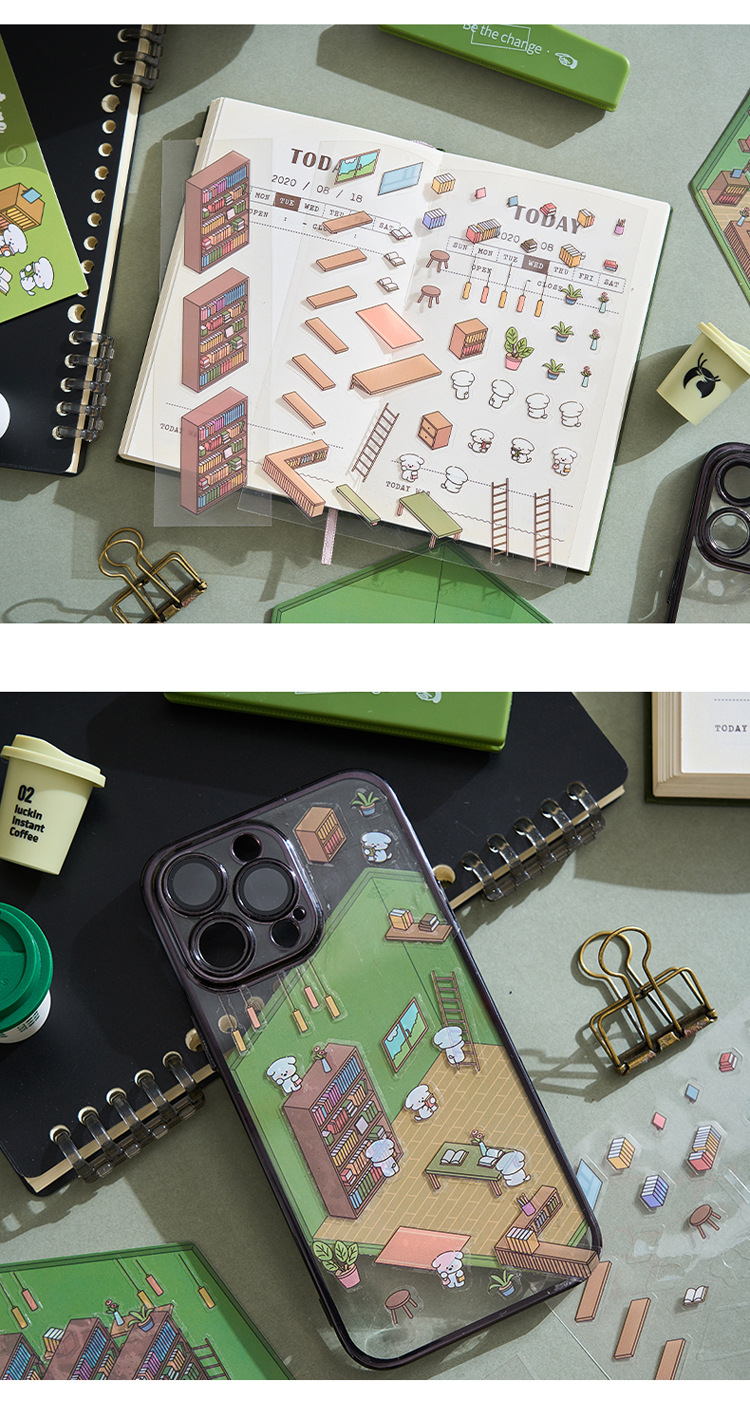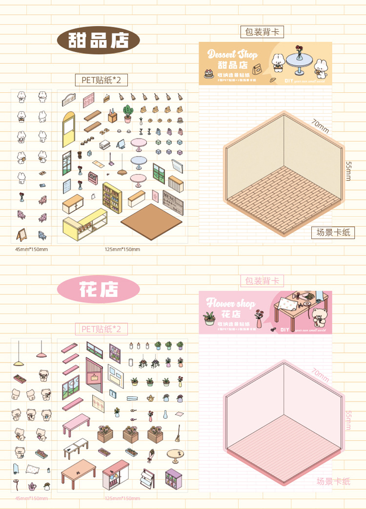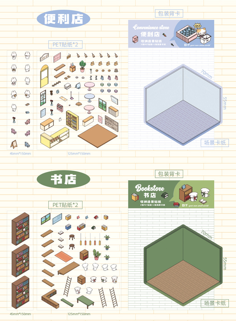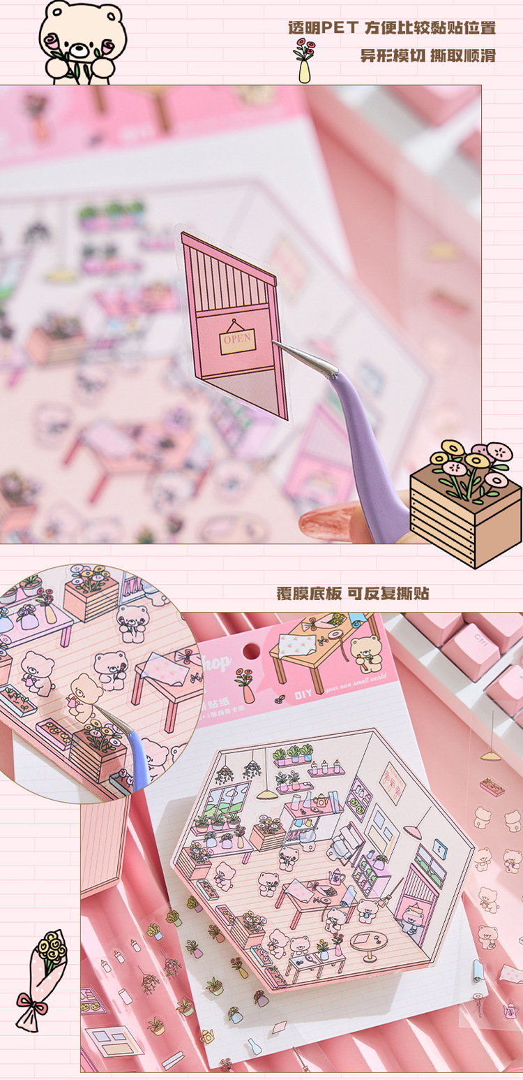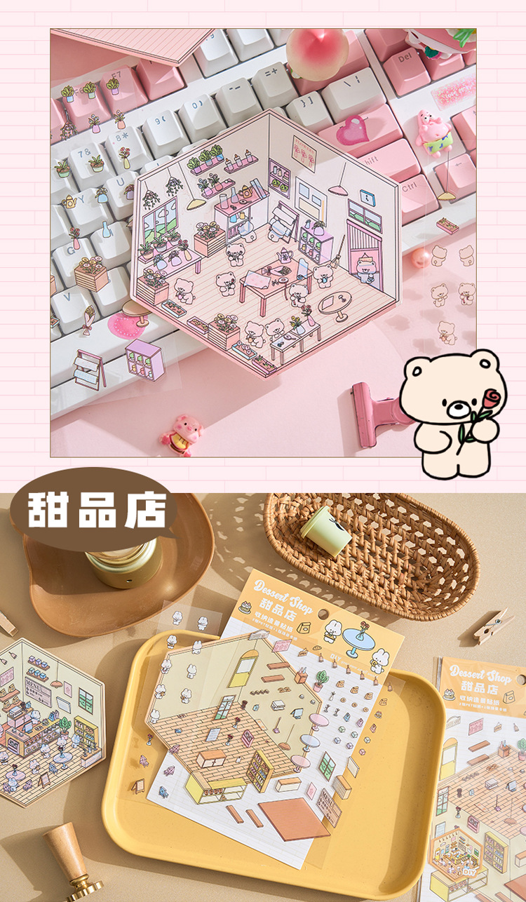 작은 세계 장면 미니어처 조경 스티커 쌓아 3 차원 작은 집 장면 저장 스티커 감압 DIY 장난감스토어 가기