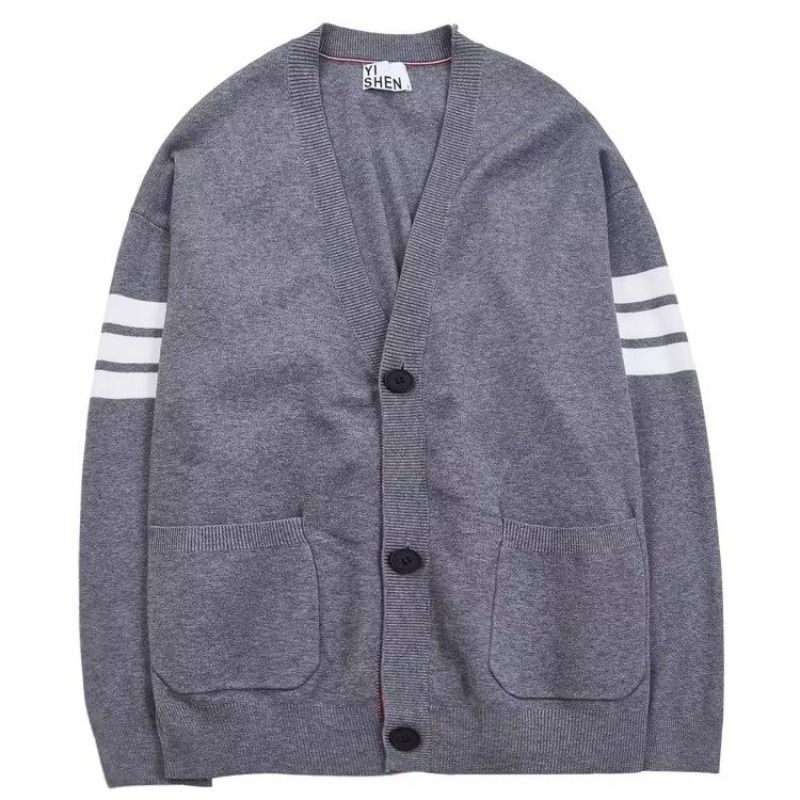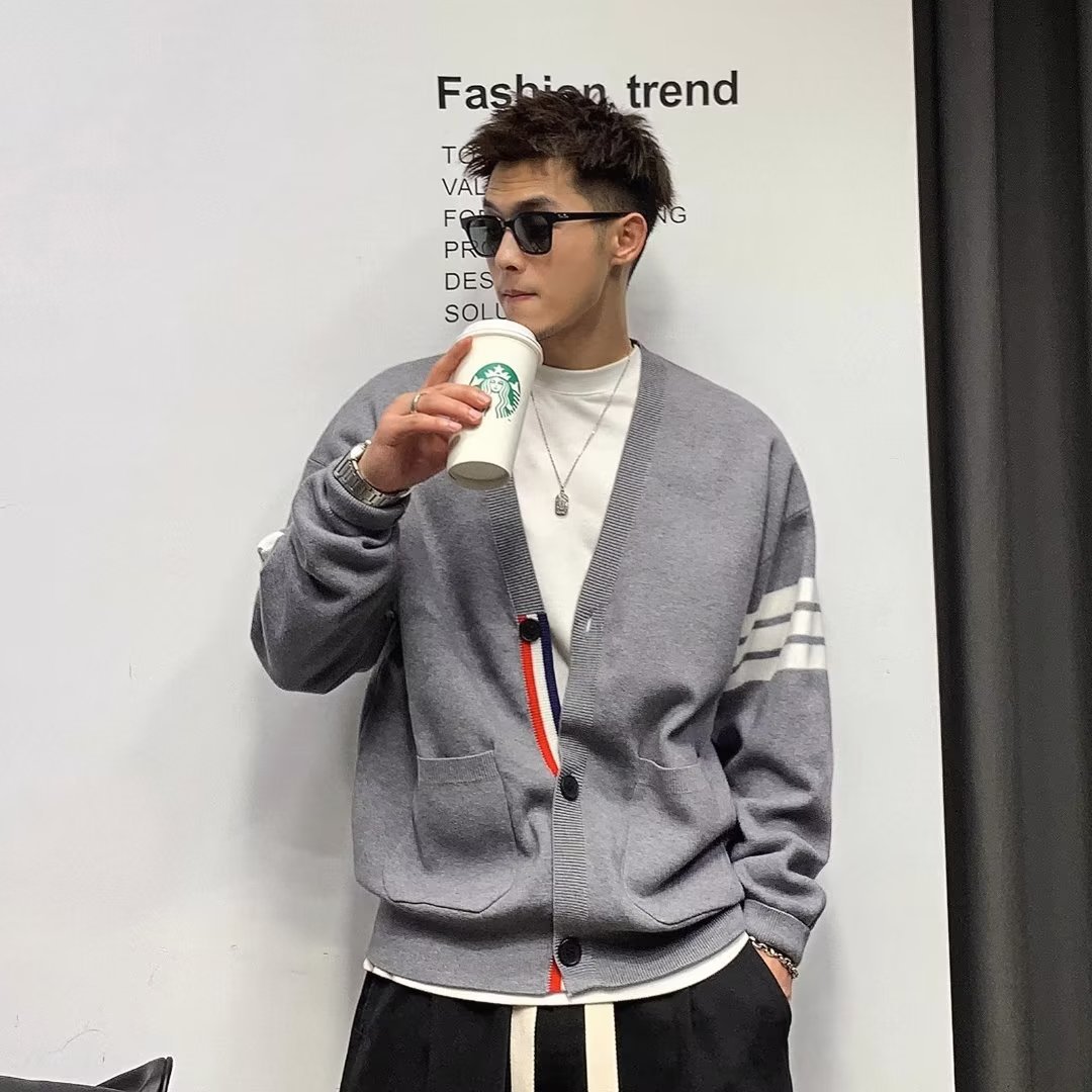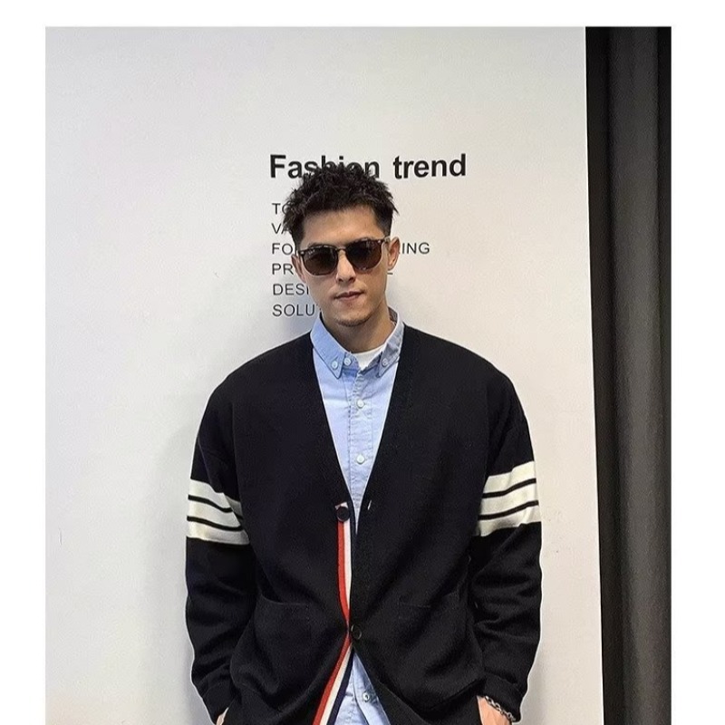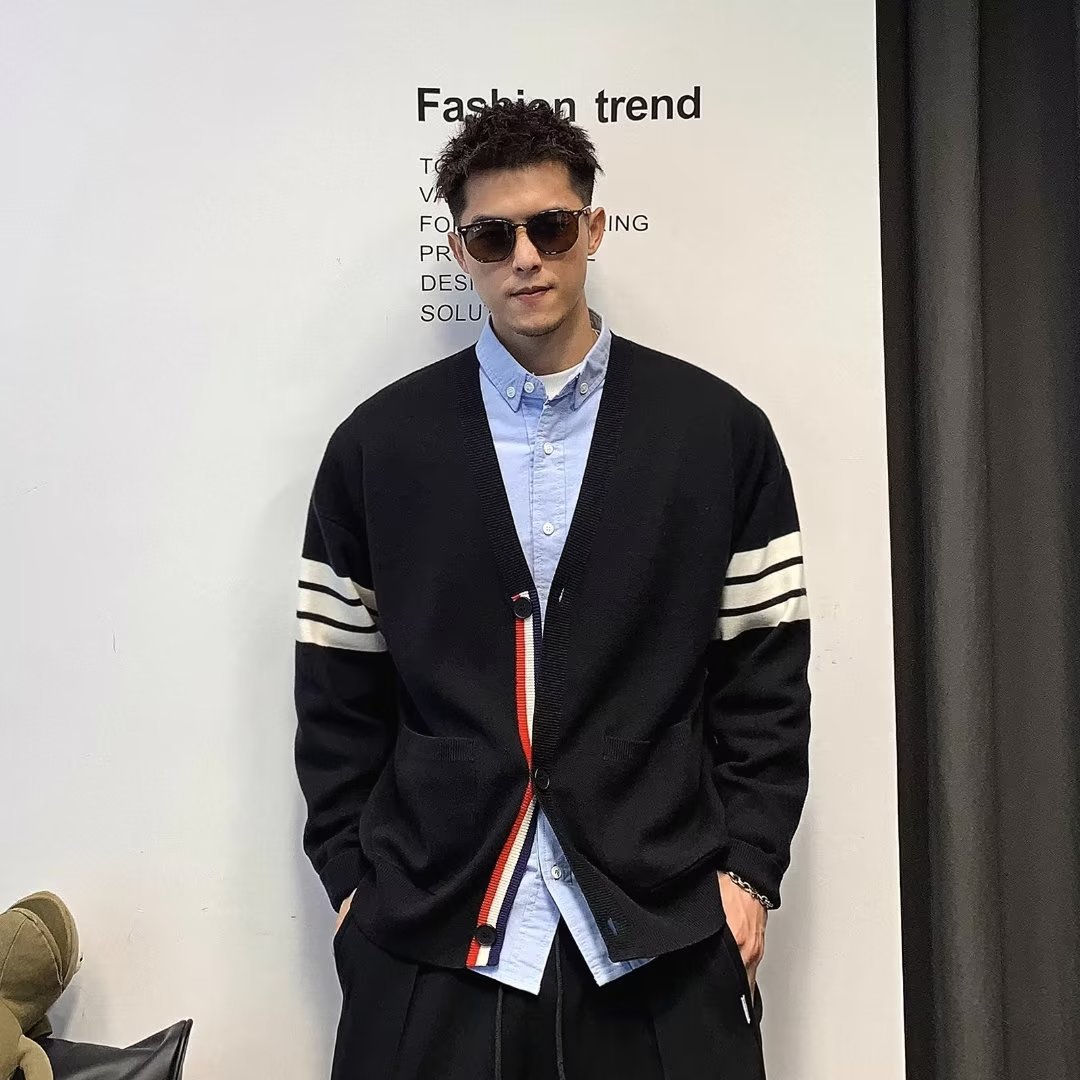 크로스보더 신상 버튼 가디건 니트 스웨터 남성 트렌디 브랜드 삼선 상의 한국 남성복 다용도 캐주얼 아우터