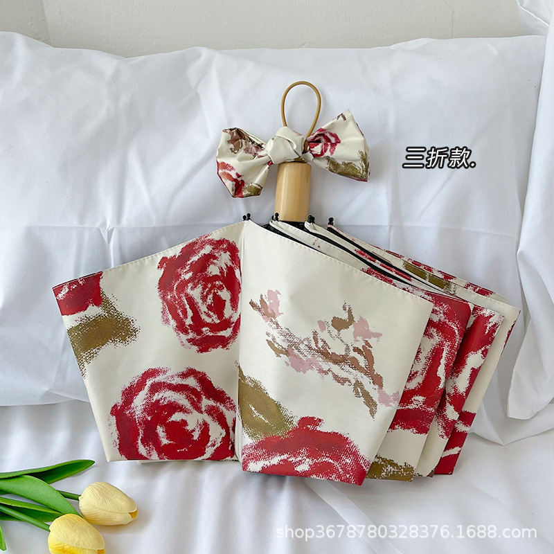 자동 접는 우산 햇빛 햇빛과 비 Ins 스타일 여성의 신선한 꽃 안티 자외선 태양 우산스토어 가기