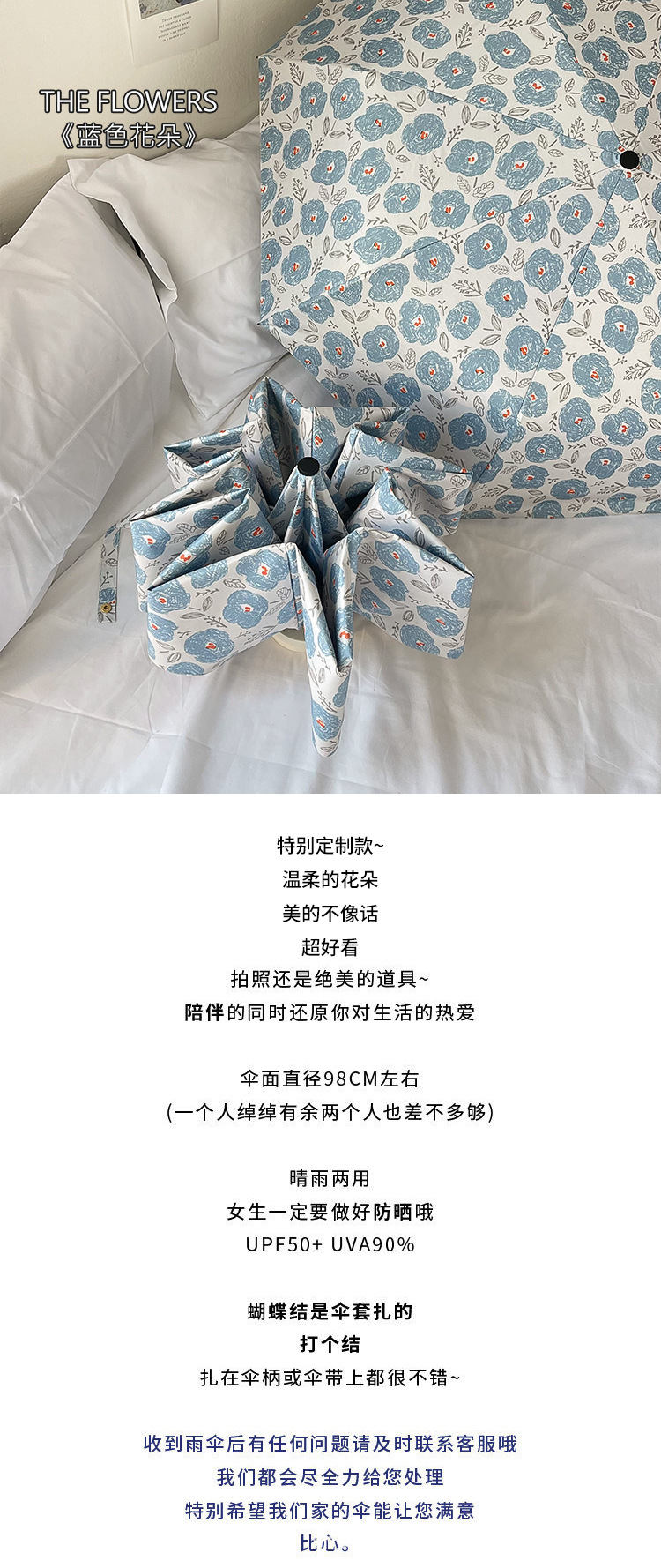 자동 접는 우산 햇빛 햇빛과 비 Ins 스타일 여성의 신선한 꽃 안티 자외선 태양 우산