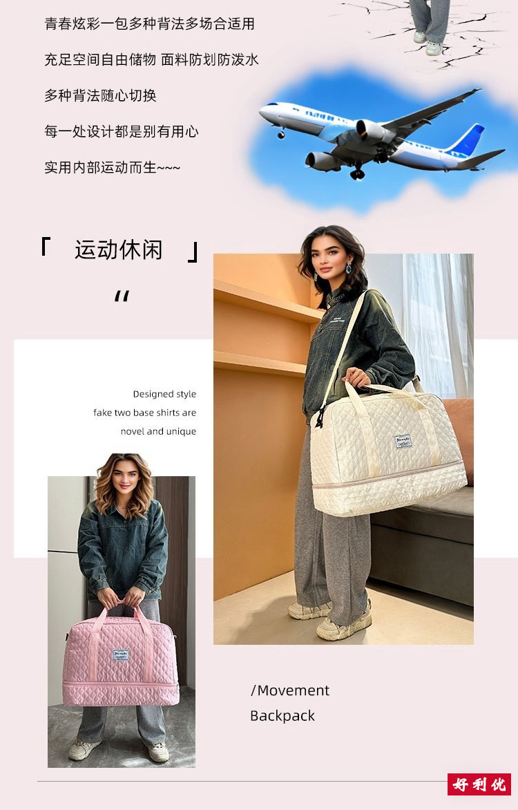 여행 가방 대용량 여행 더플 백 건조하고 젖은 별도의 보관 가방 외출 스포츠 피트니스 가방 압축 면스토어 가기