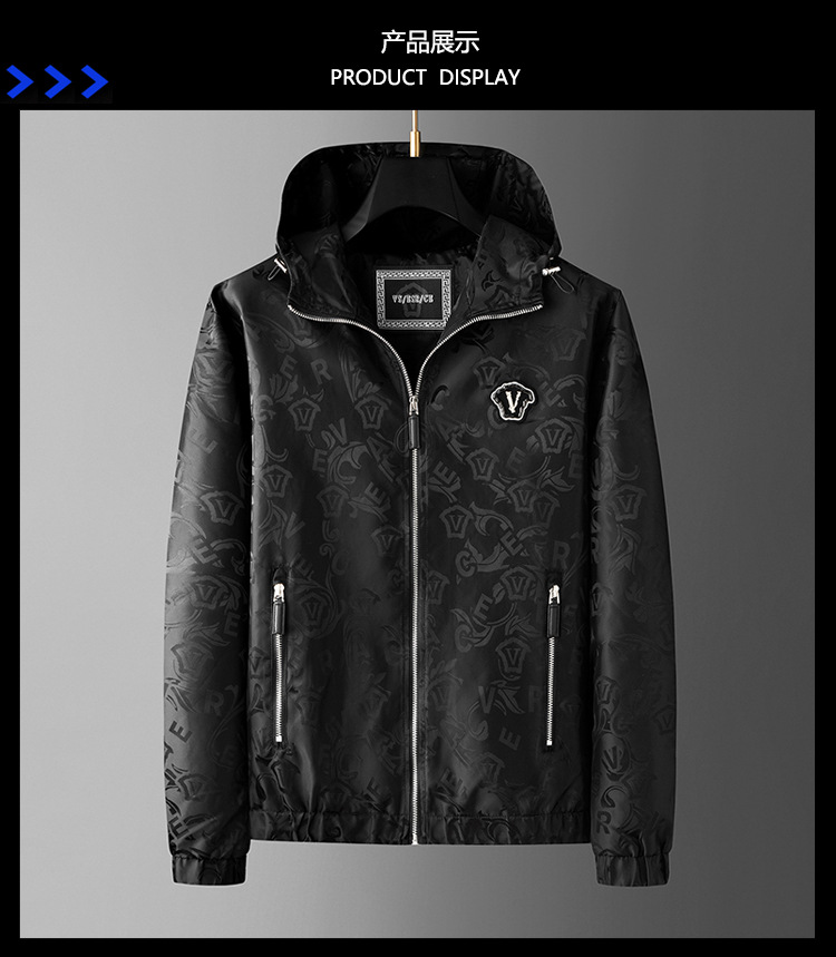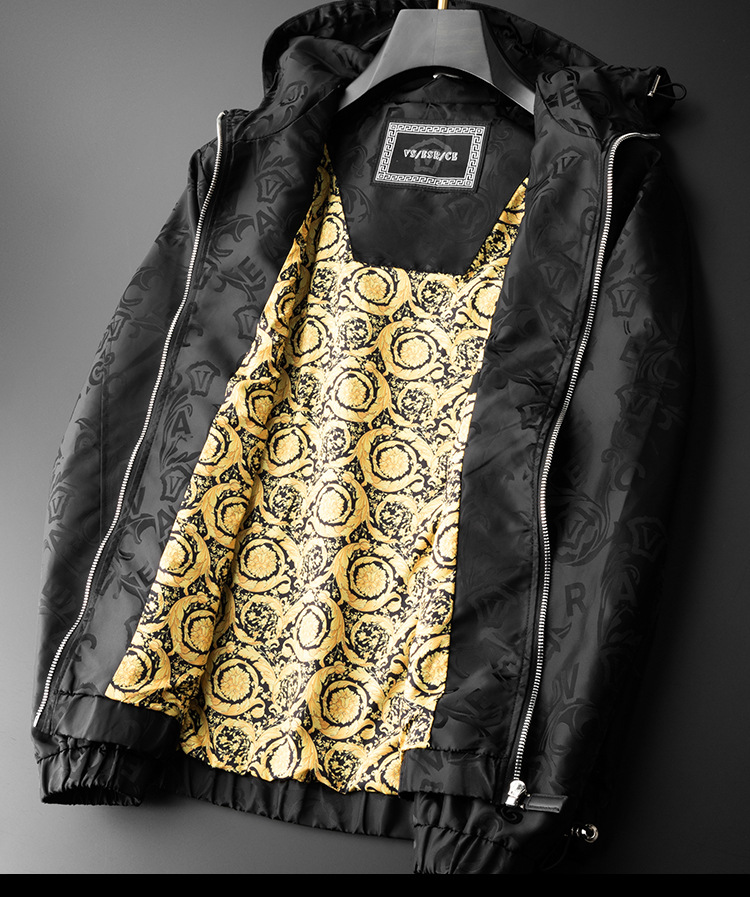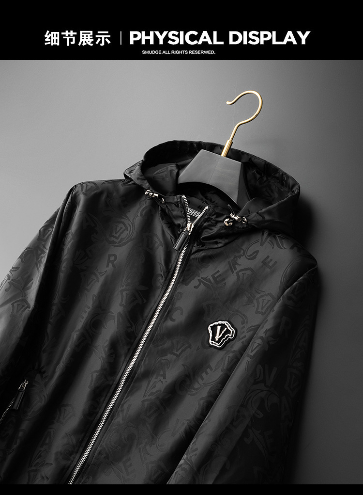 유럽 역 봄과 가을 후드 재킷 남성용 잘 생긴 맞춤형 조명 자카드 트렌디 브랜드 남성 최고 슬림 핏 재킷스토어 가기