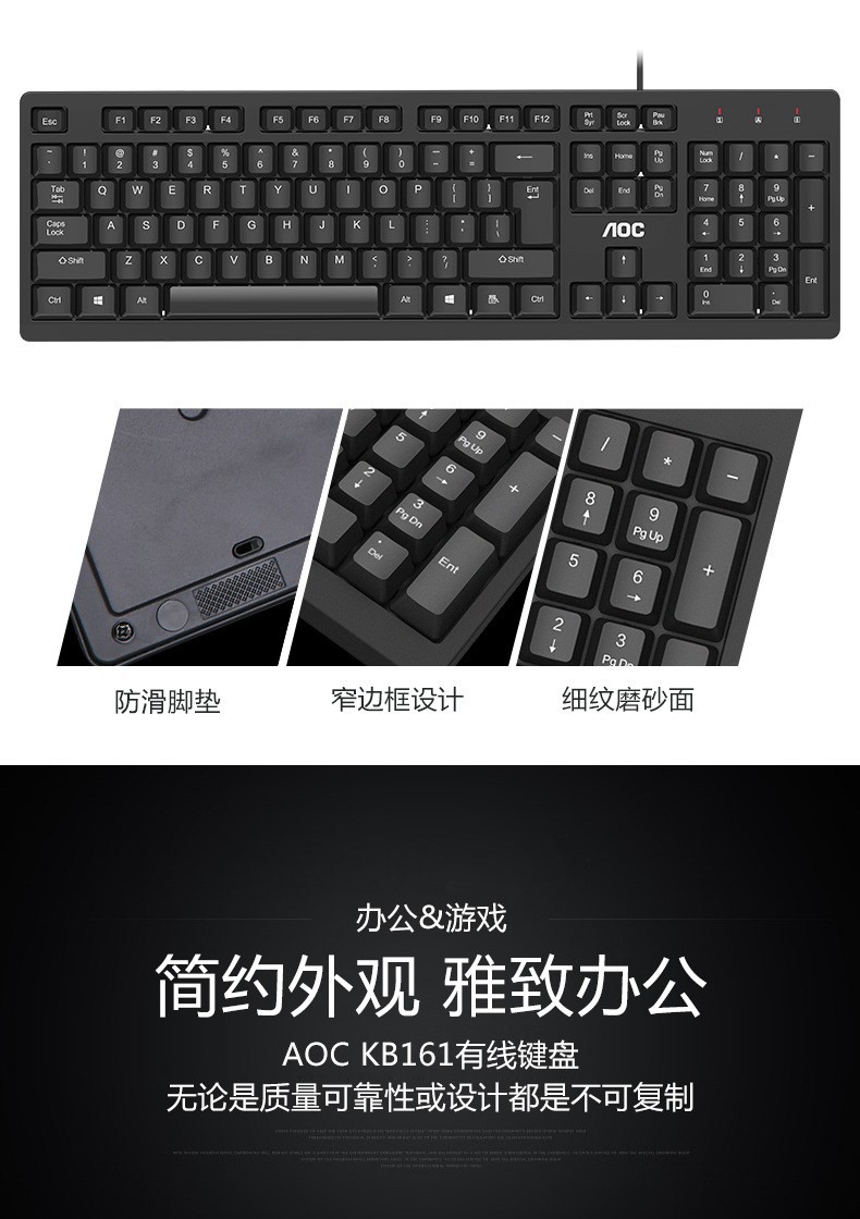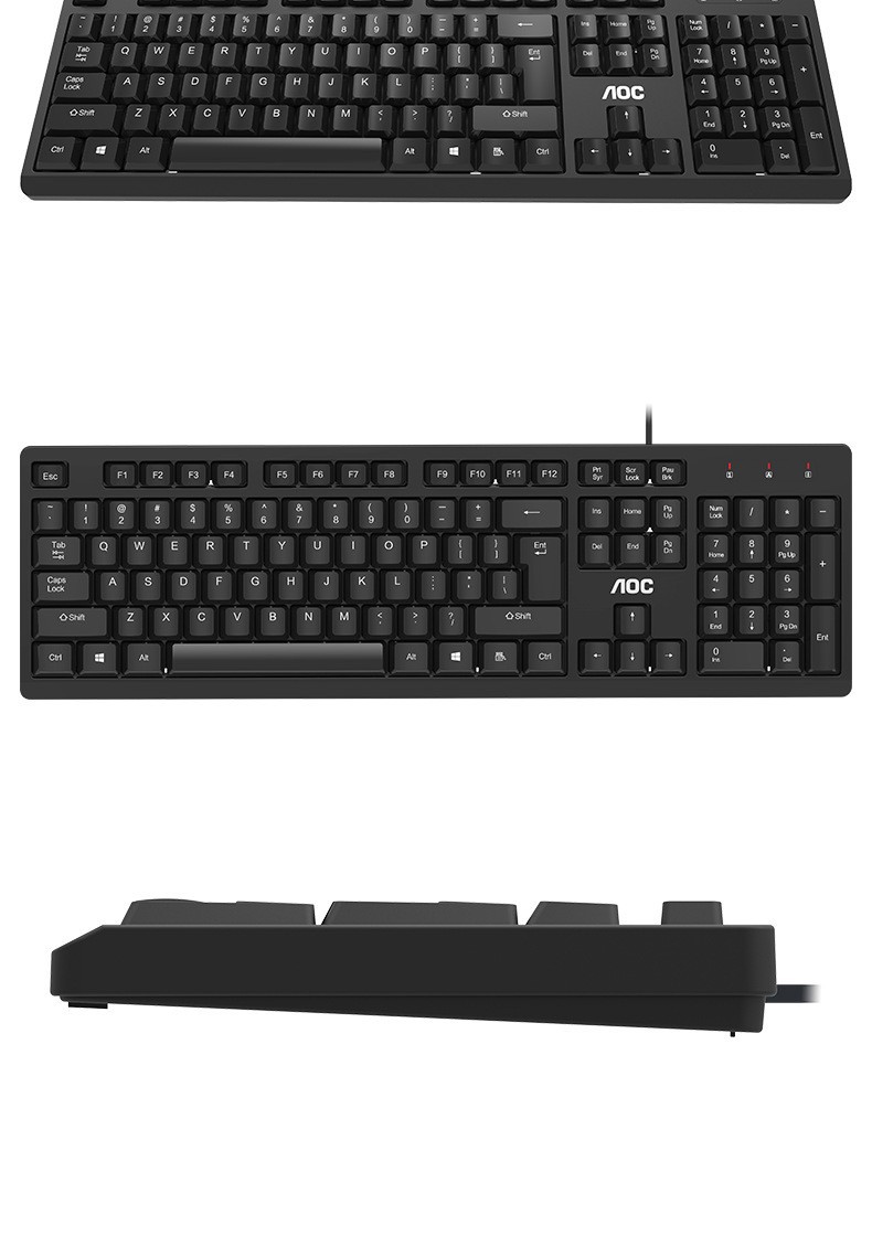 TPV AOC KB161 유선 키보드 USB 포트 유닛 사무실 올인원 데스크탑 키보드 마우스 도매 국경