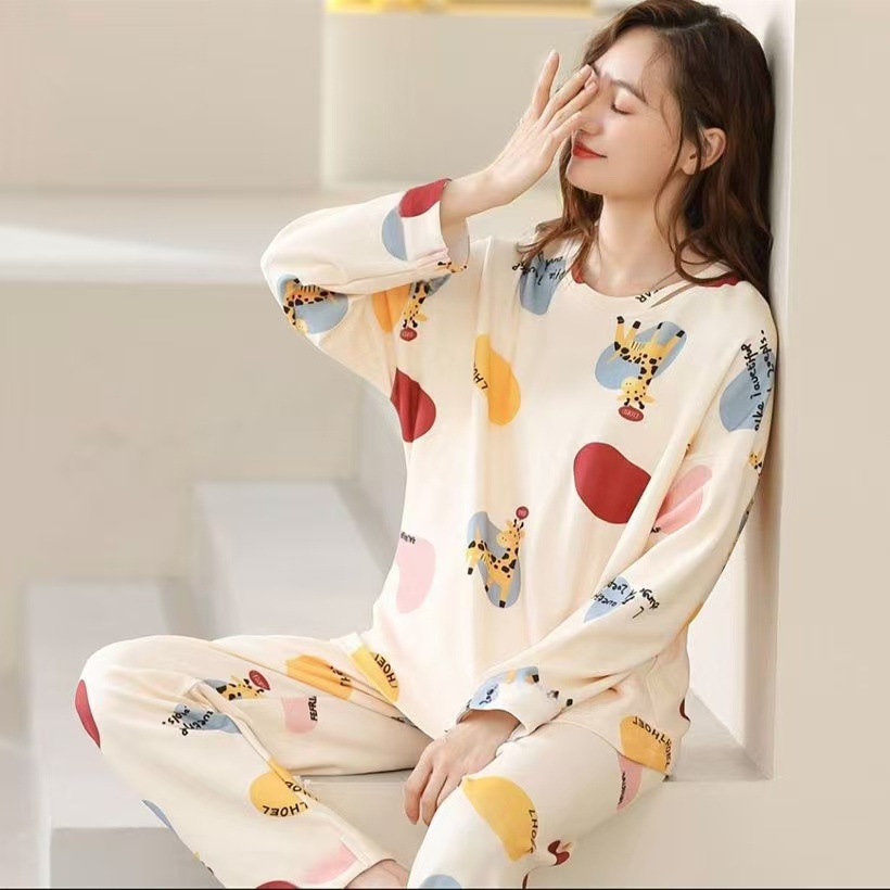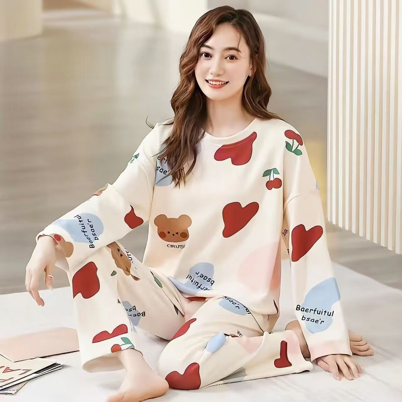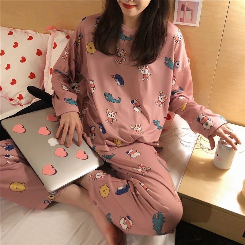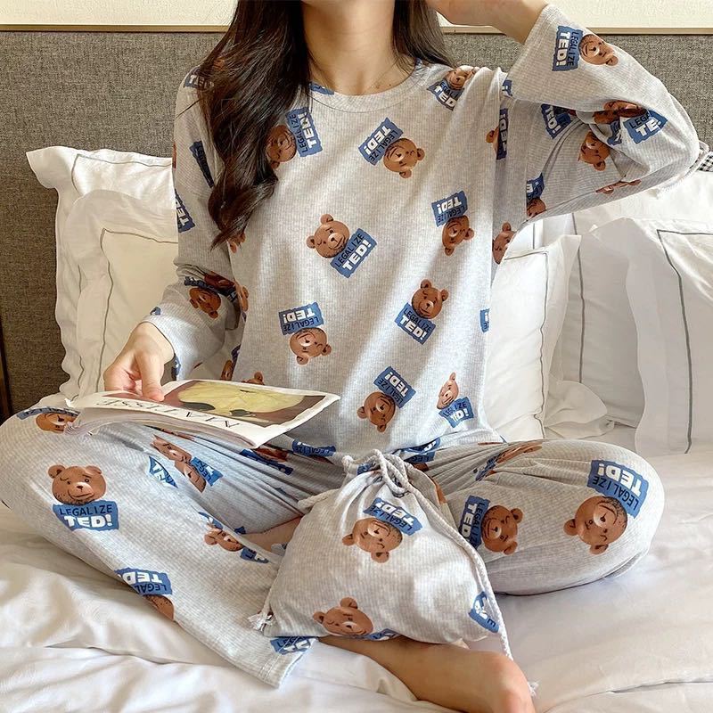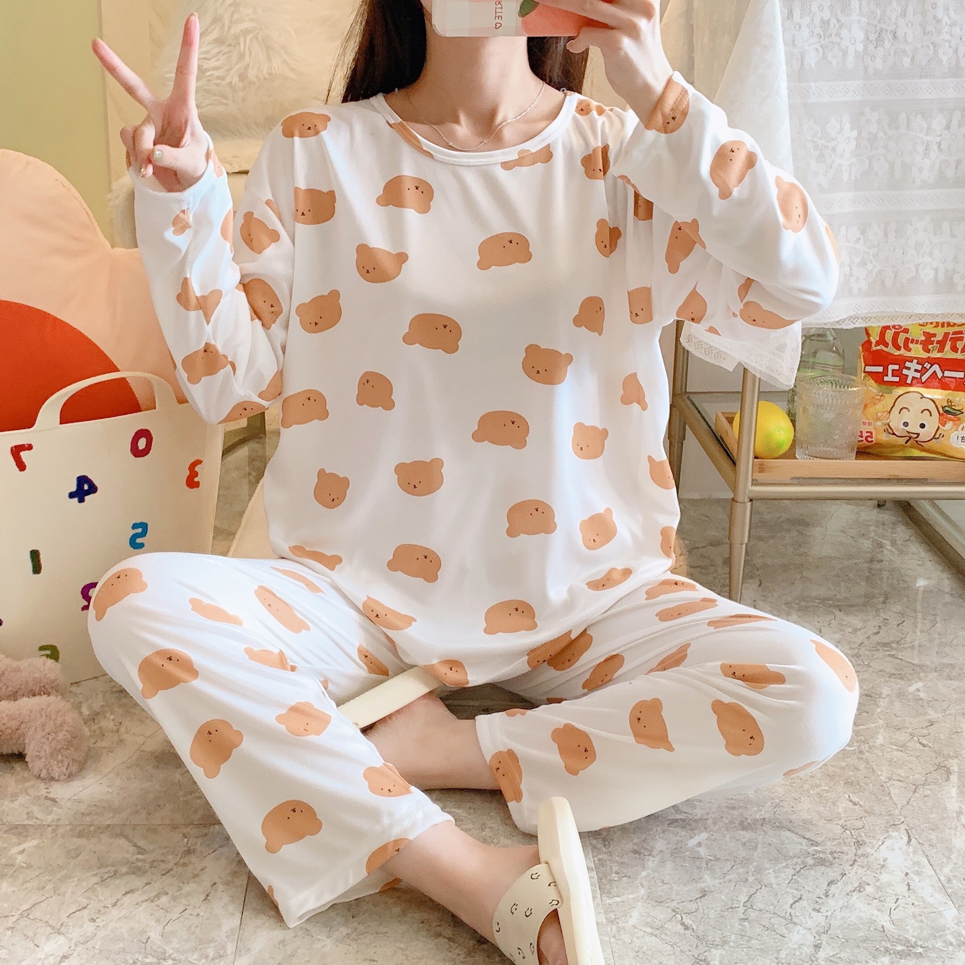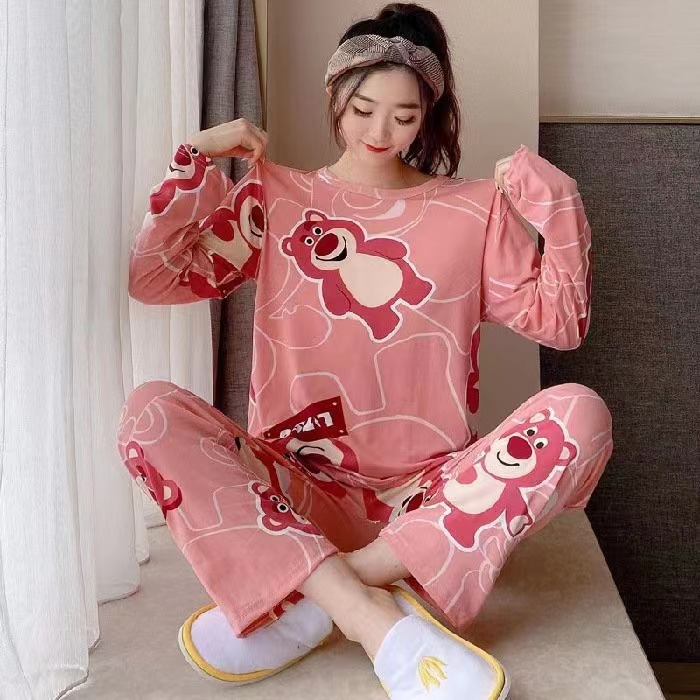 봄 가을과 겨울 잠옷 여성의 새로운 만화 귀여운 곰 학생 긴 소매 2024 캐주얼 겉옷 홈 세트스토어 가기