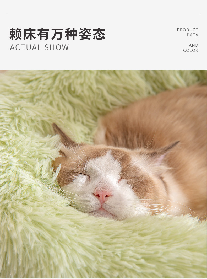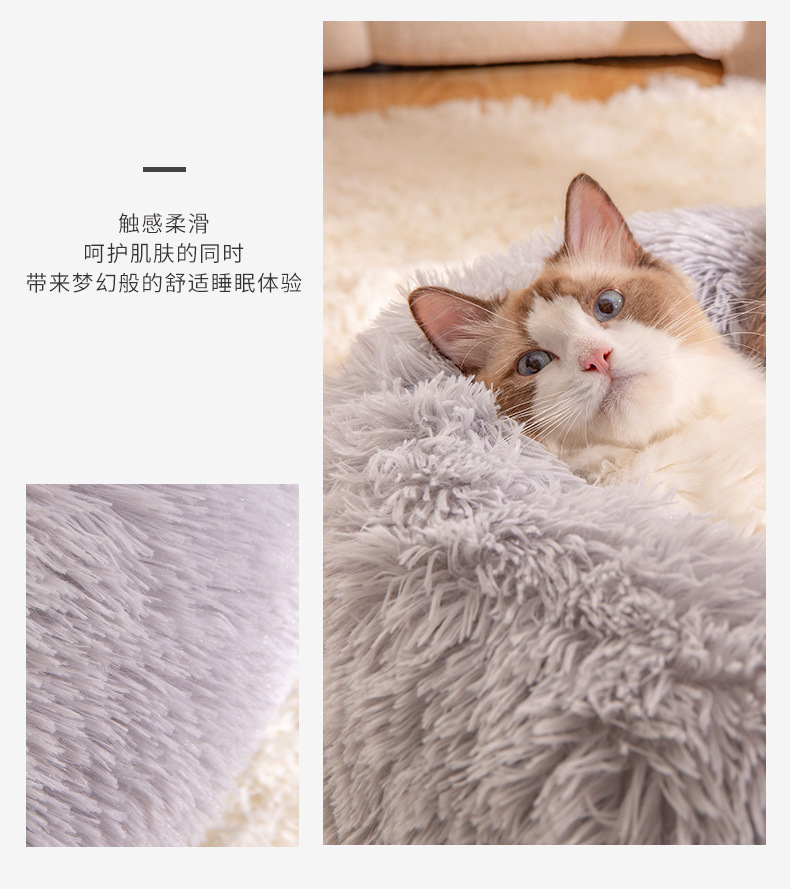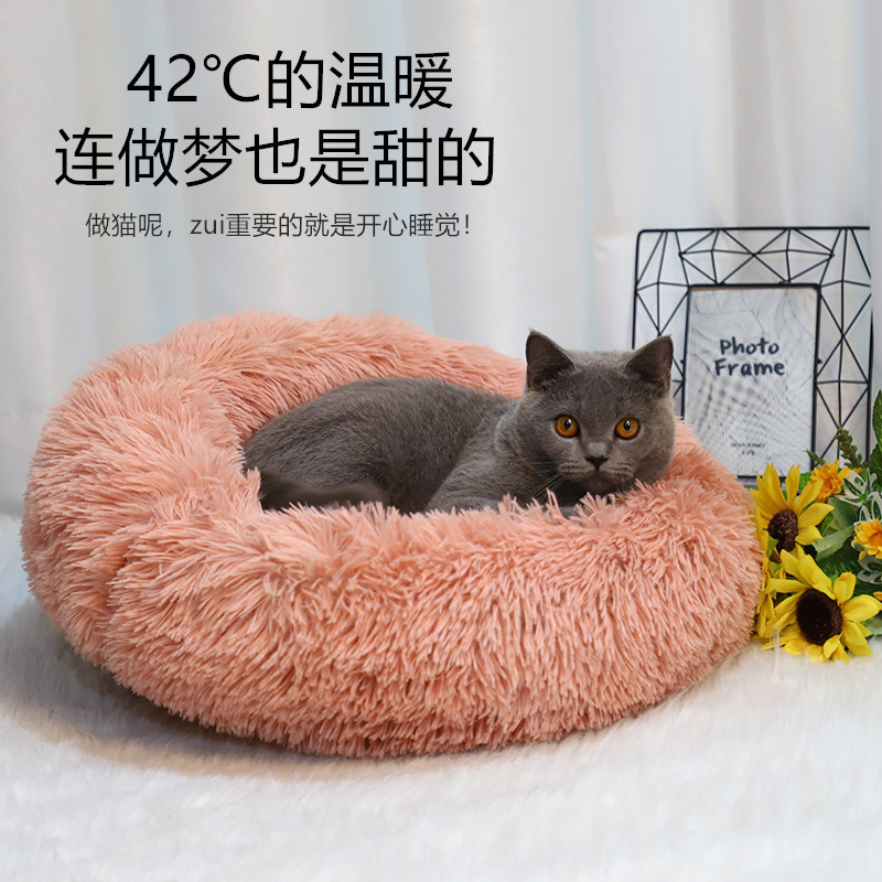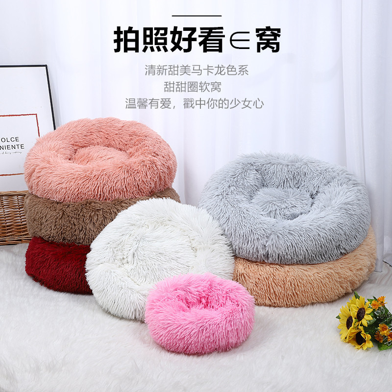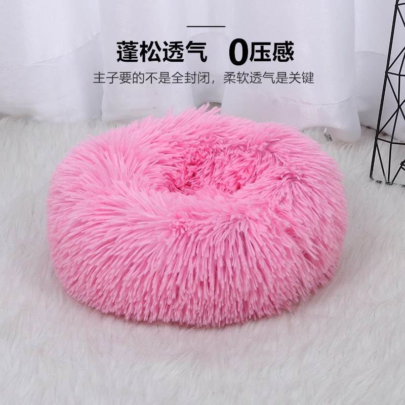 겨울 따뜻한 고양이 둥지 패딩 쿠션 도매 라운드 긴 봉제 애완 동물 제품 깊은 수면 둥지 방수스토어 가기