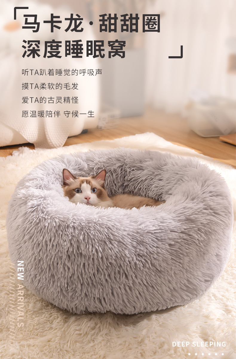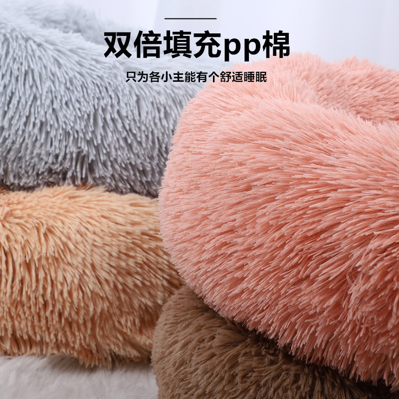 겨울 따뜻한 고양이 둥지 패딩 쿠션 도매 라운드 긴 봉제 애완 동물 제품 깊은 수면 둥지 방수