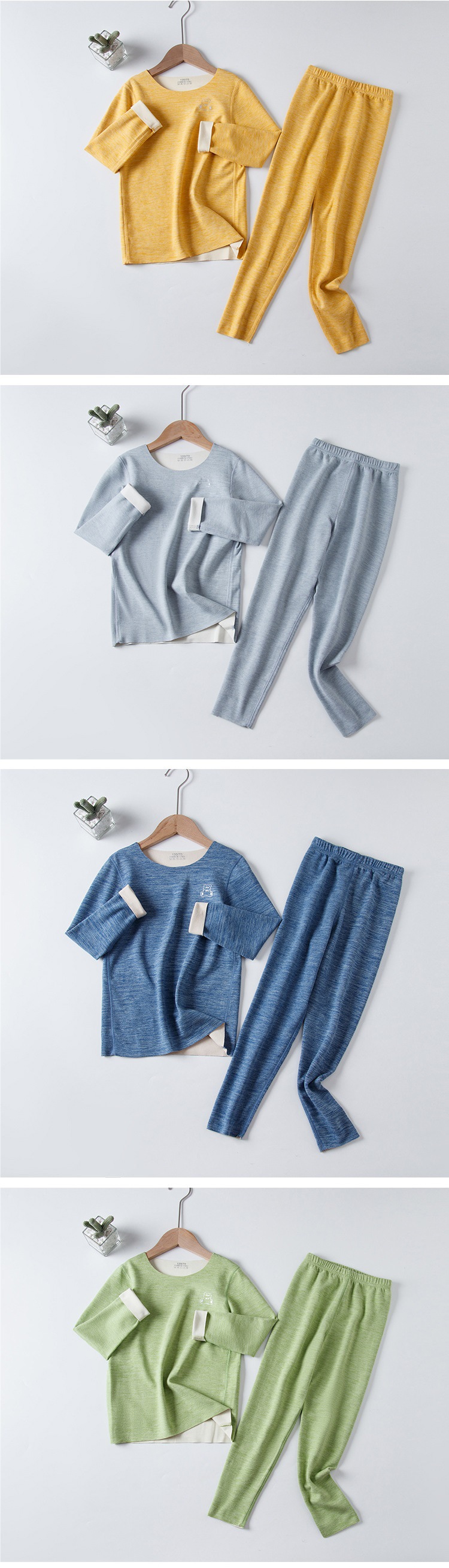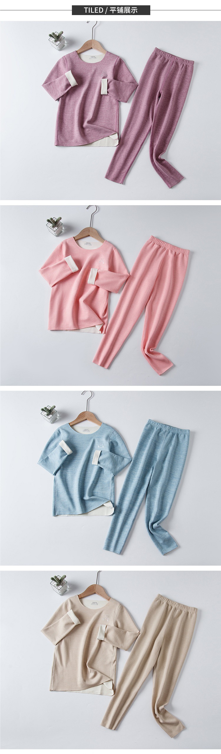 AB Mounder Boys and Girls Velvet 얇은 벨벳 따뜻한 집 옷 파자마베이스 옷 어린이 원활한 속옷 세트 크루 넥스토어 가기