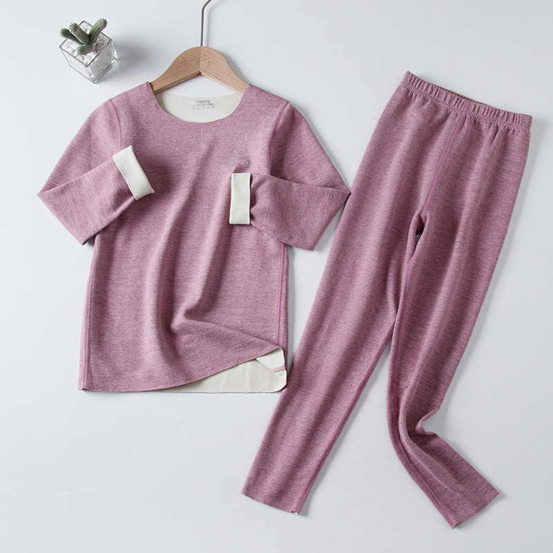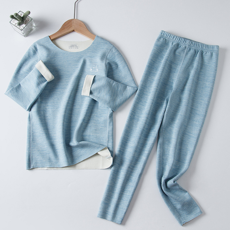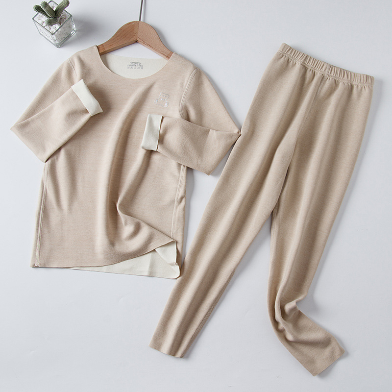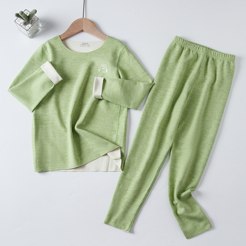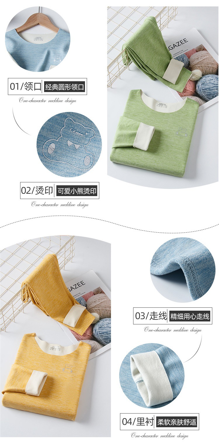 AB Mounder Boys and Girls Velvet 얇은 벨벳 따뜻한 집 옷 파자마베이스 옷 어린이 원활한 속옷 세트 크루 넥