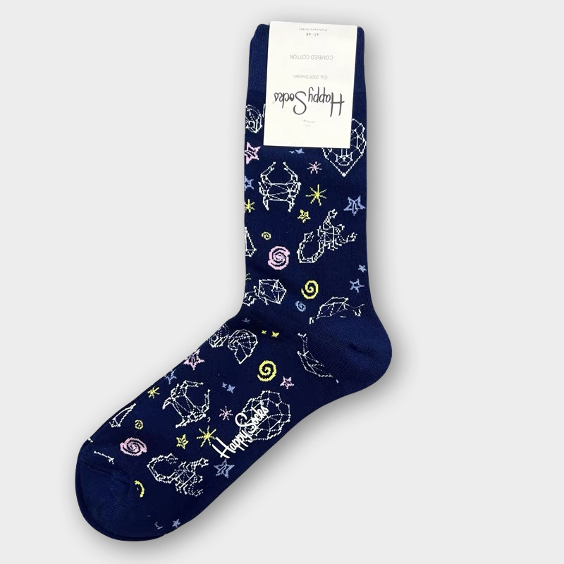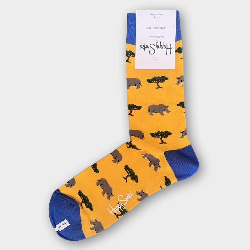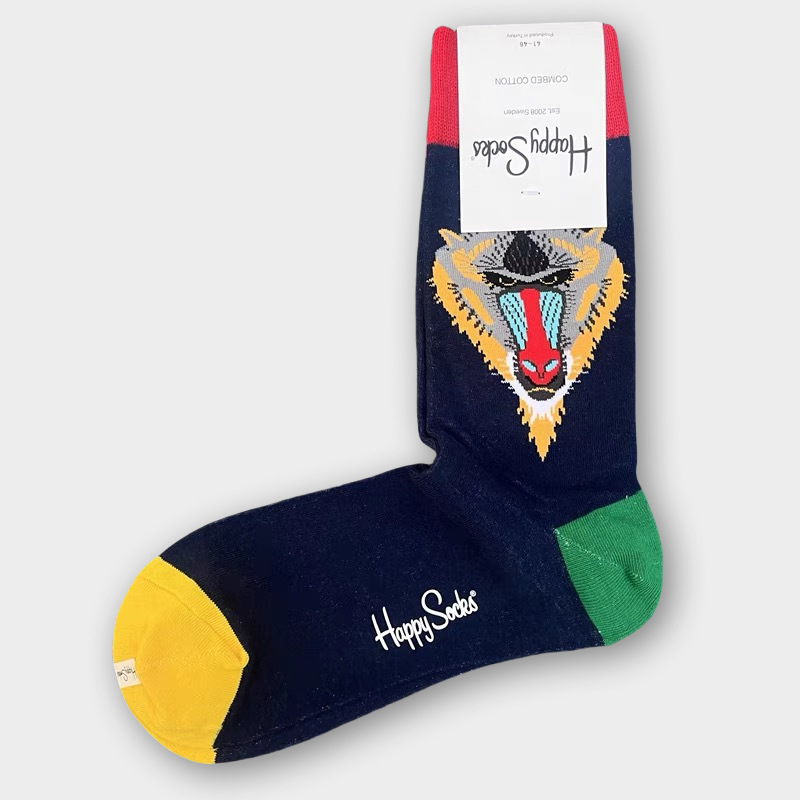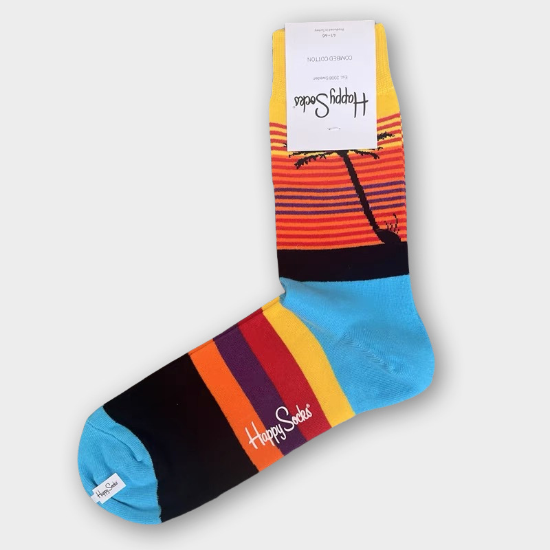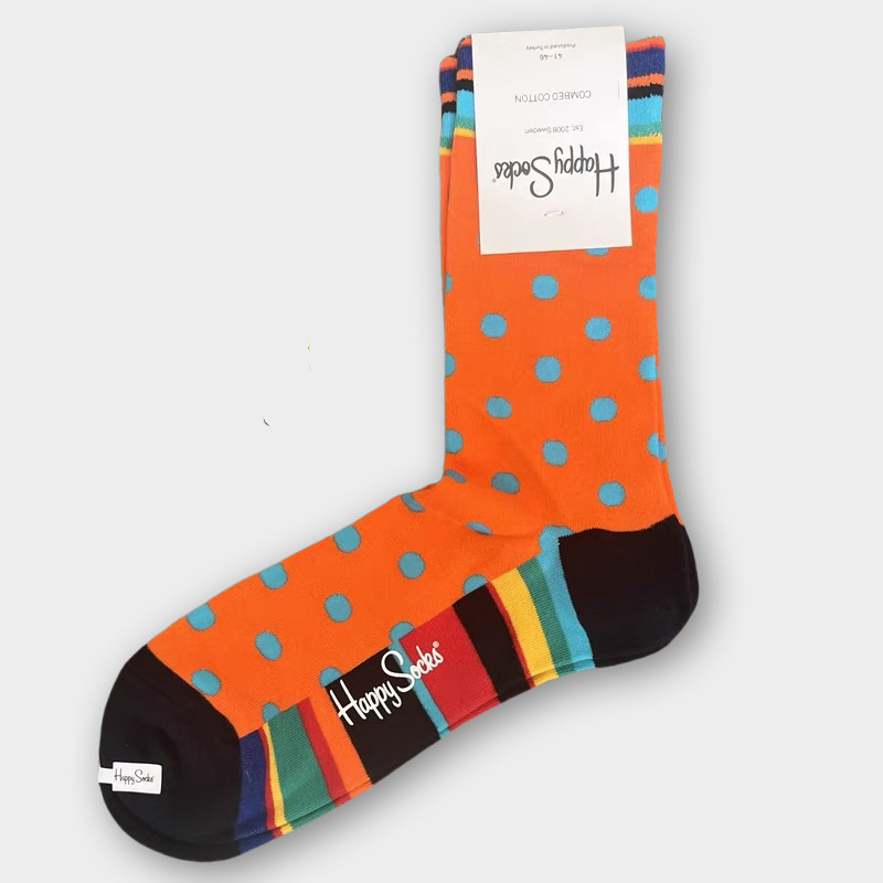 HappySocks 남성 스웨덴 패션 브랜드 미드 튜브 양말 플러스 사이즈 개인화 된 패션 긴 튜브 면 가을과 겨울 통기성 땀 흡수스토어 가기