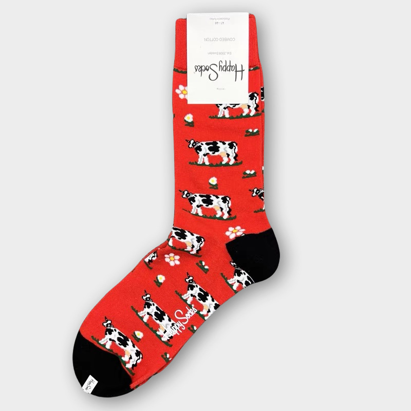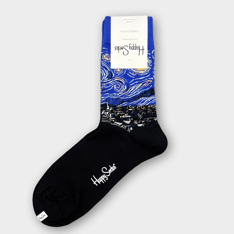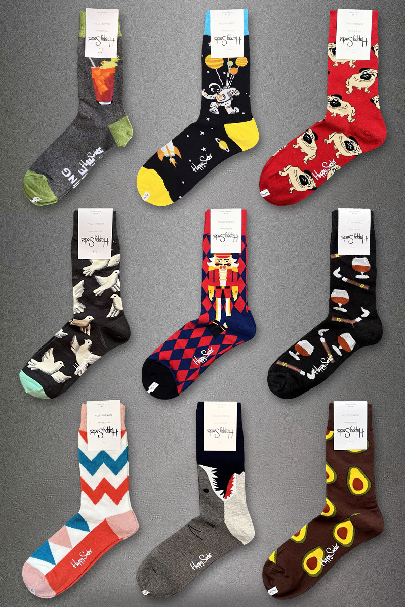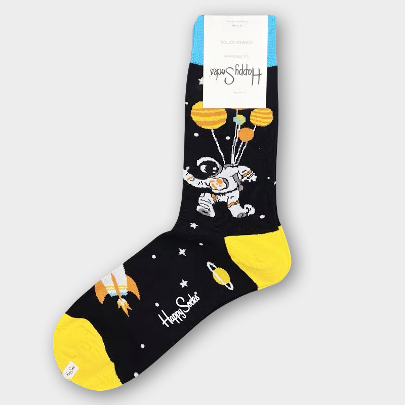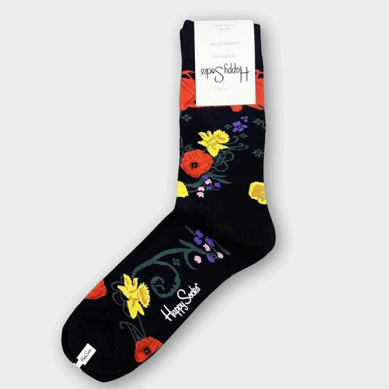 HappySocks 남성 스웨덴 패션 브랜드 미드 튜브 양말 플러스 사이즈 개인화 된 패션 긴 튜브 면 가을과 겨울 통기성 땀 흡수스토어 가기