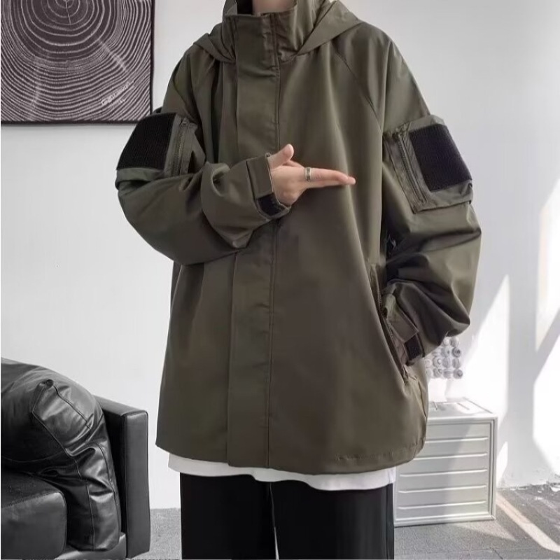 벨크로 재킷 남자의 봄과 가을 유행 브랜드 느슨한 플러스 사이즈 기능 등산 야외 캐주얼 재킷