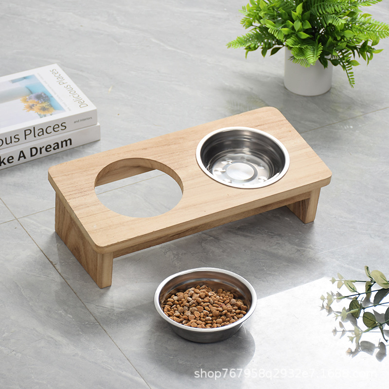 나무 애완 동물 그릇 랙 고양이 랙 나무 식탁 고양이와 개 나무 식탁 용 냄비 랙 개 애완 동물 식기스토어 가기
