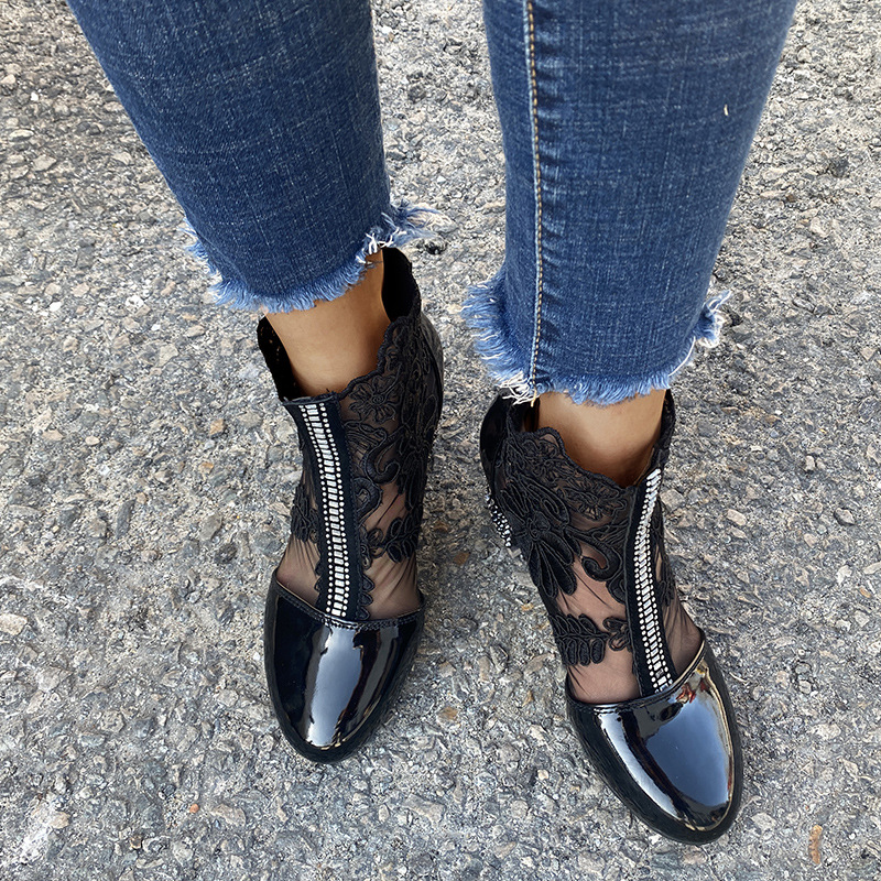 2024 봄과 여름 대외 무역 새로운 레이스 꽃 메쉬 여성용 샌들 크리스탈 하이힐 바오 터우 할로우 로마 샌들스토어 가기