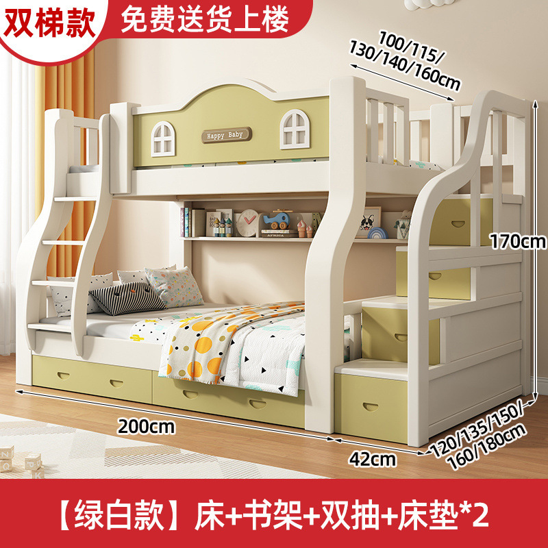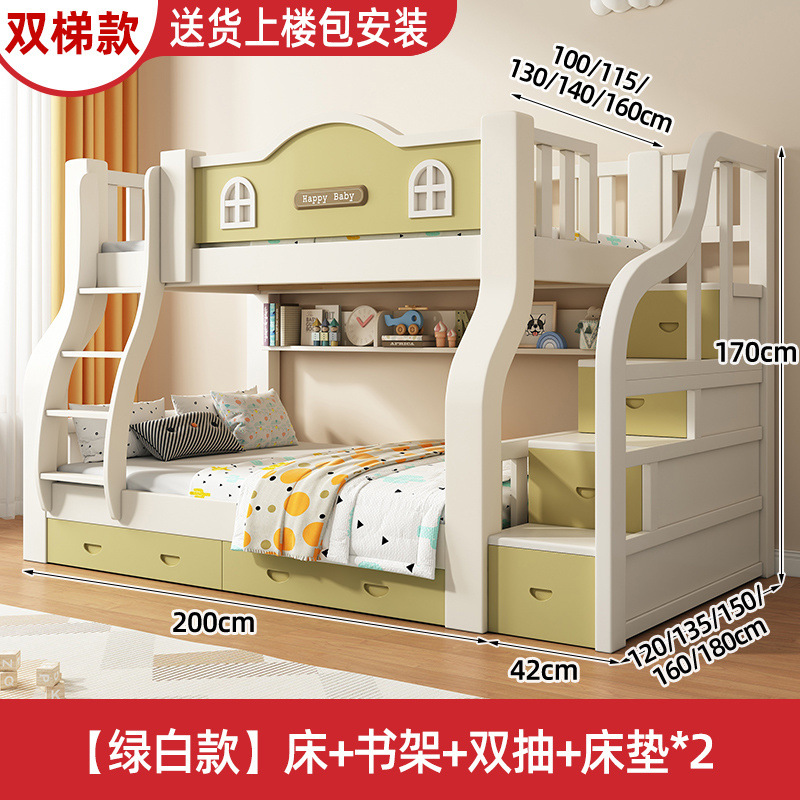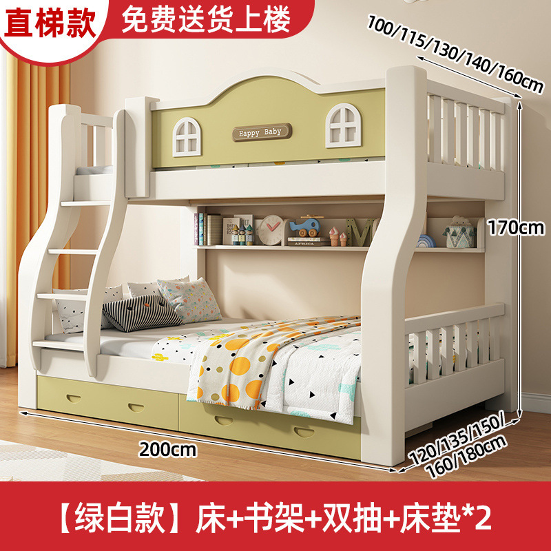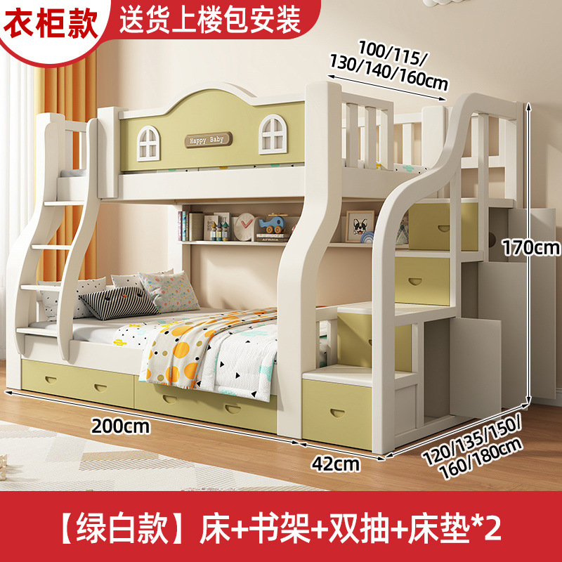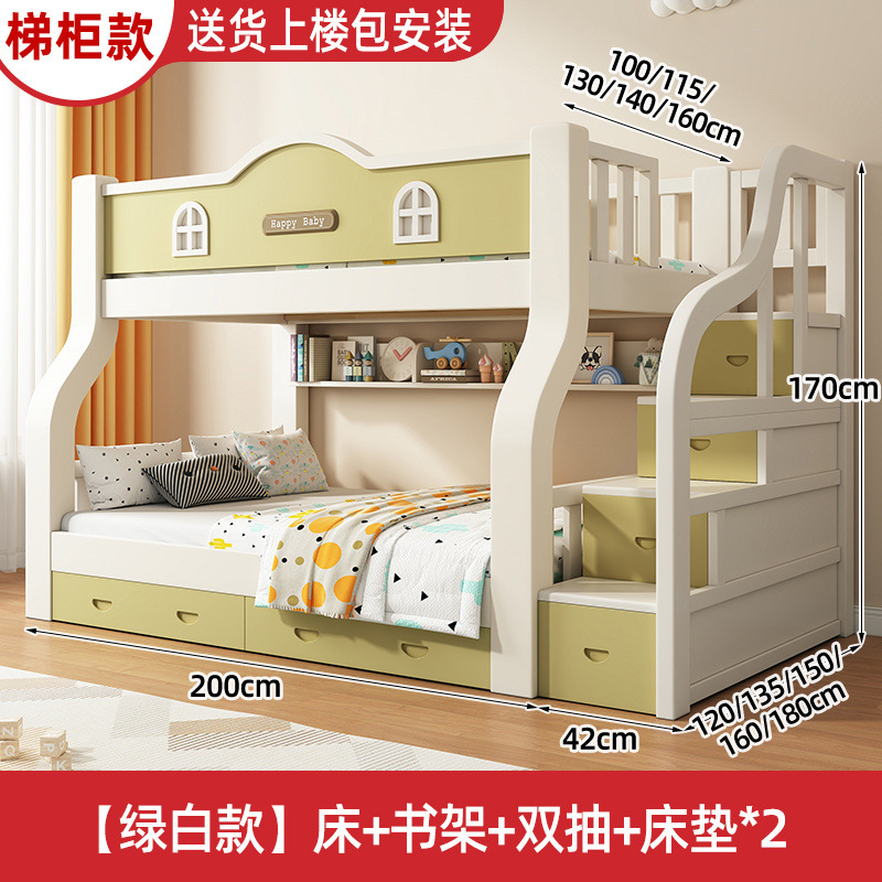 단단한 나무 두꺼운 상하 침대 두꺼운 어머니 침대 작은 아파트 어린이 방 침대 다기능 조합 나무 침대 높고 낮은 침대