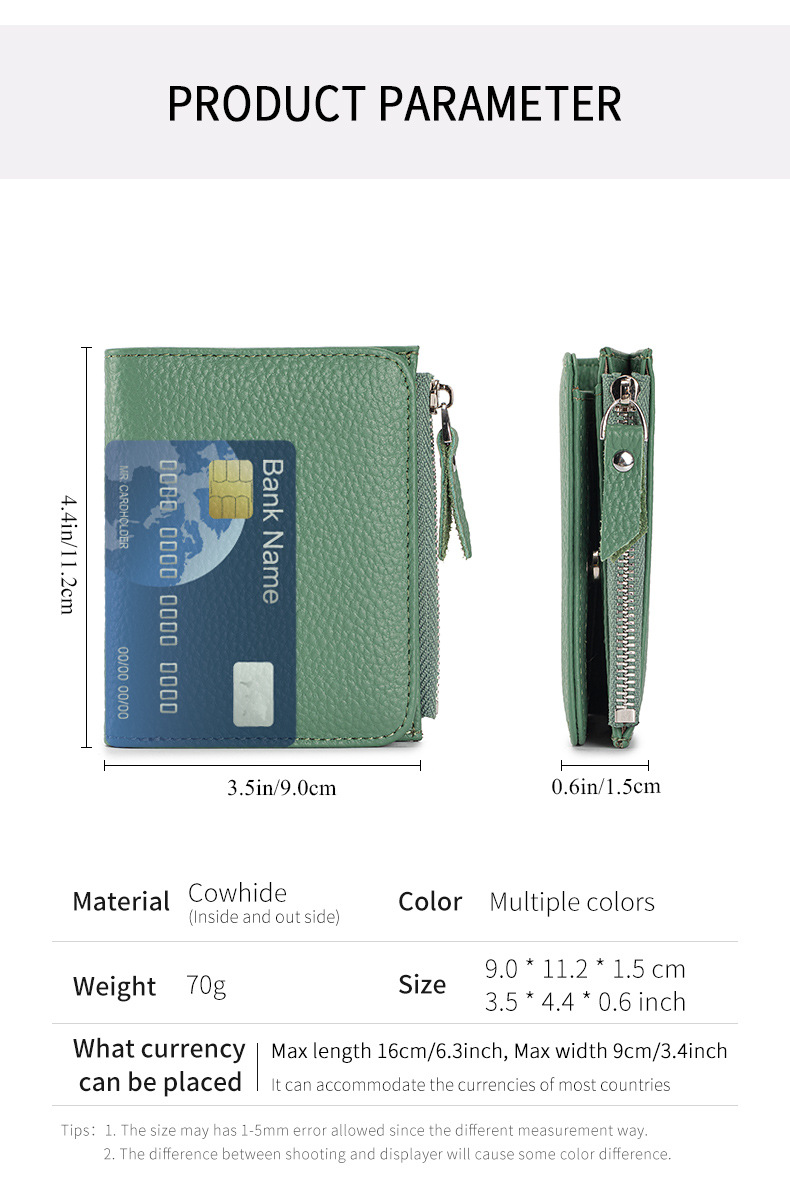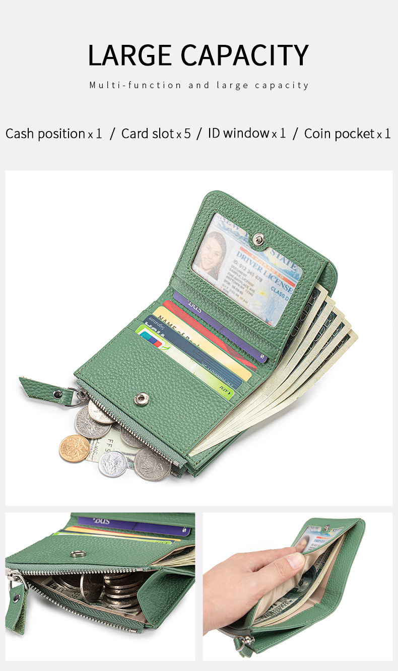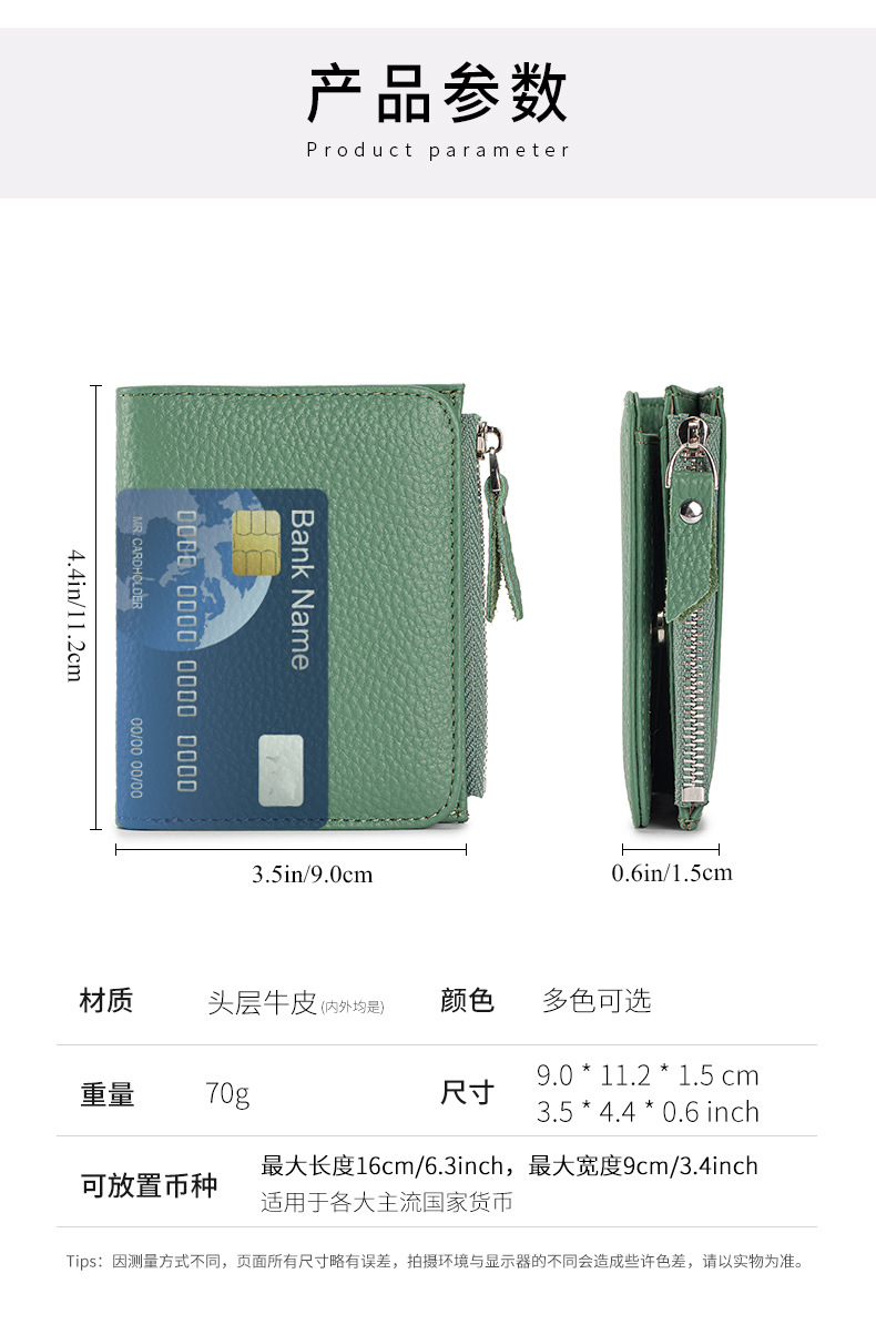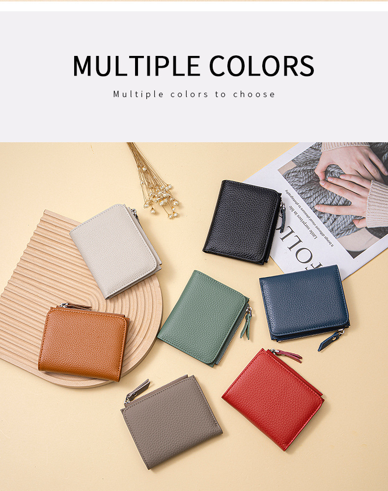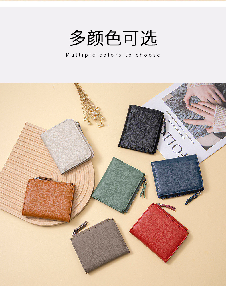 2025 여성용 짧은 지갑 정품 가죽 초박형 지갑 카드 홀더 고급 1 층 소 가죽 지갑 일본식 크로스 보더스토어 가기