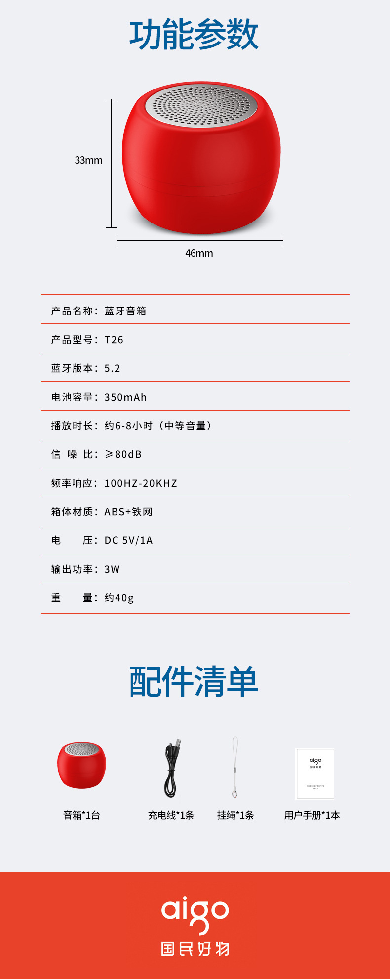패트리어트 고급 스마트 블루투스 스피커 T26 스피커 휴대용 미니 휴대 전화 컴퓨터 자동차 서브 우퍼 블루스토어 가기