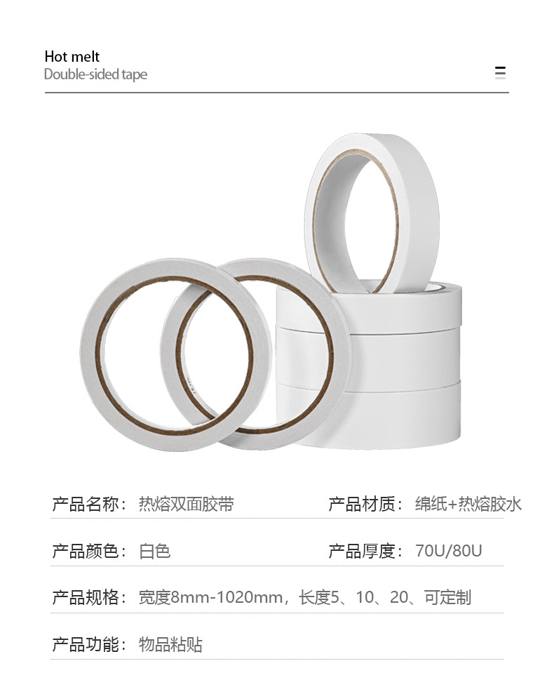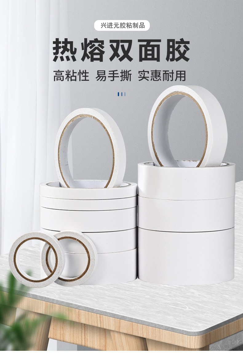 사용자 정의 티슈 양면 테이프 얇은 핫멜트 접착제 수제 DIY 흰색 강한 양면 테이프 오피스 문구 도매스토어 가기