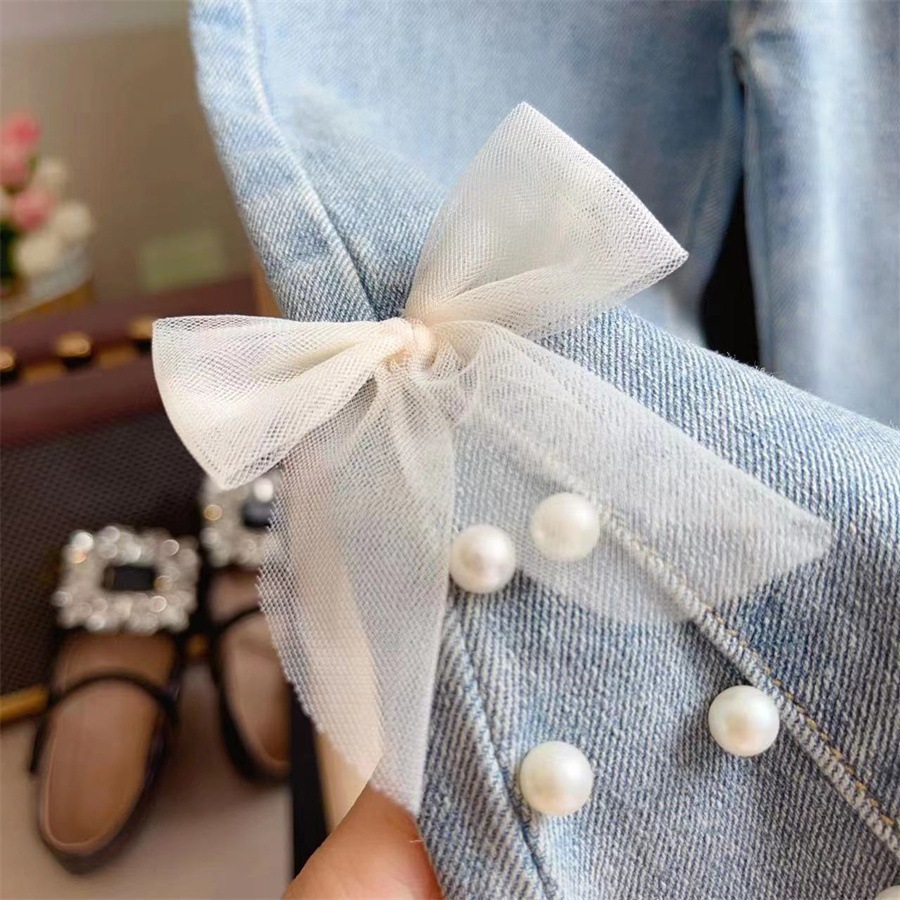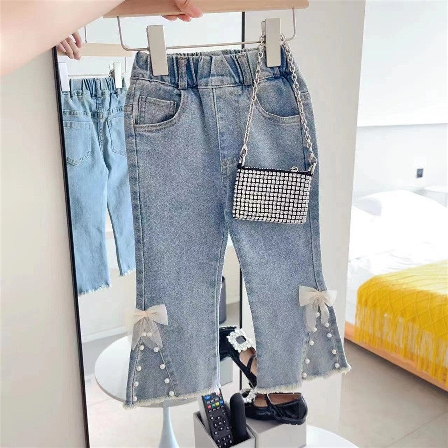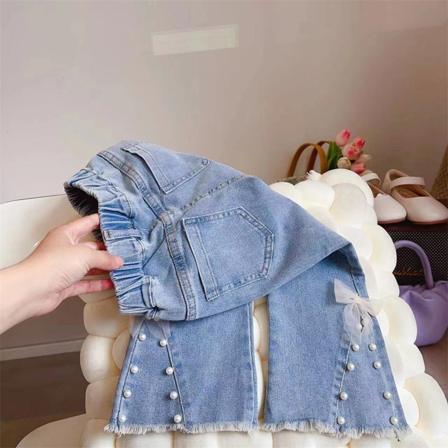 신상 여아 패셔너블 플레어 팬츠 가을옷 2025년 신상 아동 바지 진주 장식 밑단 청바지 드롭쉬핑