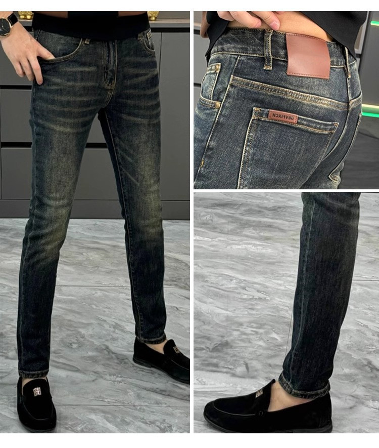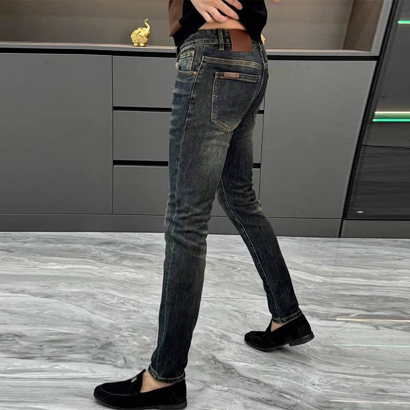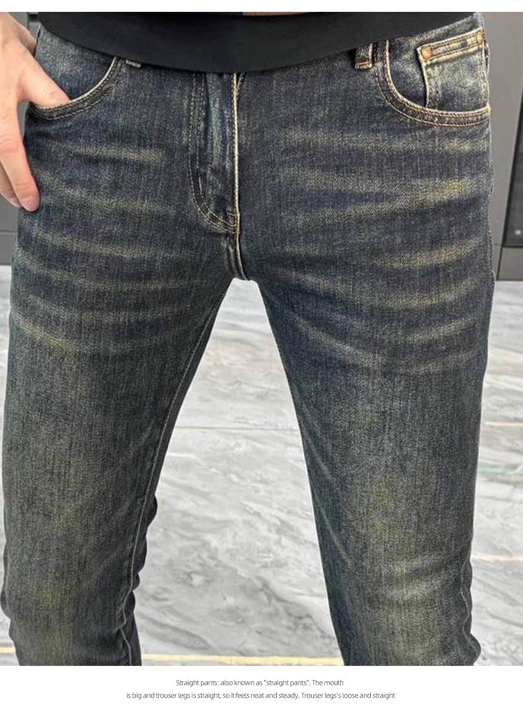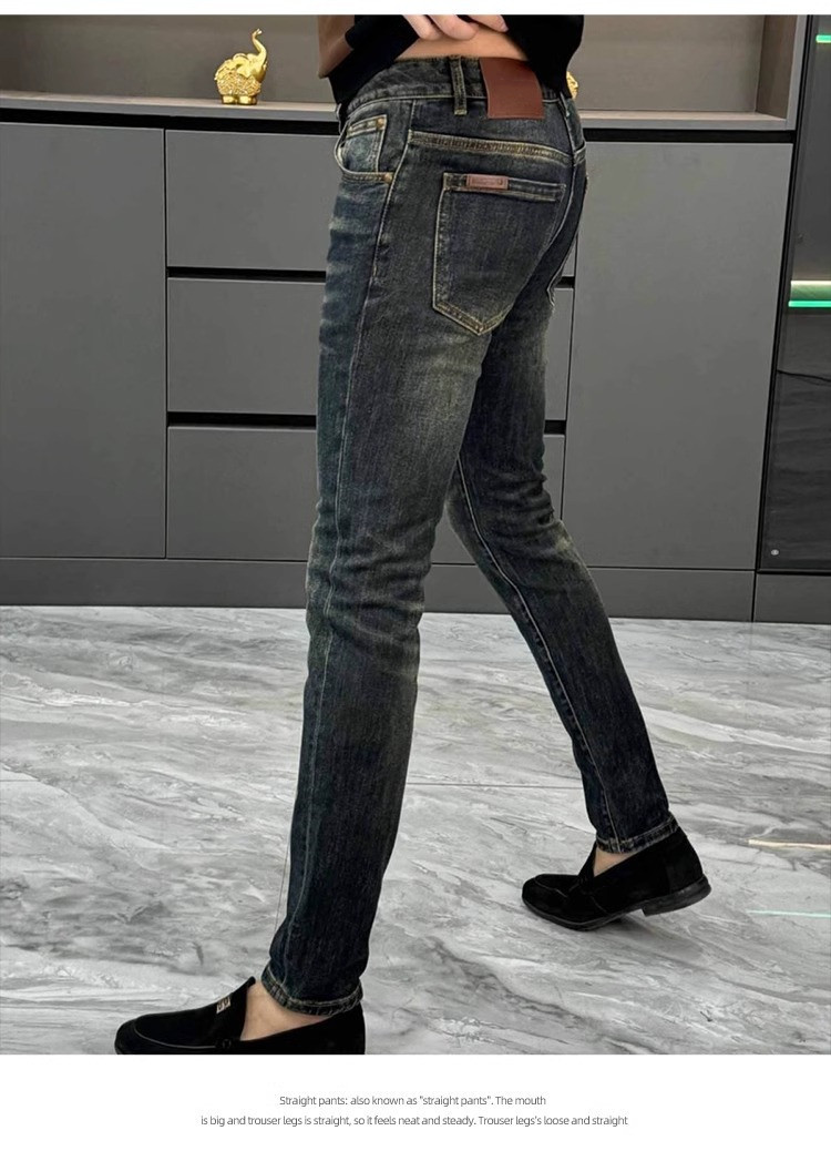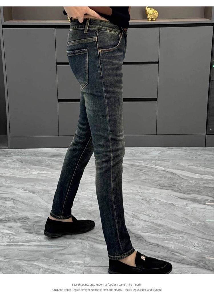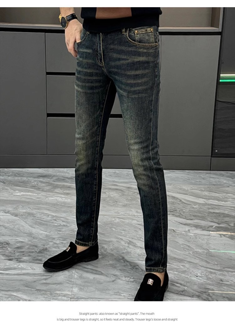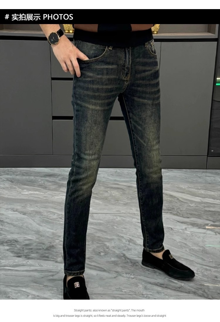 남성용 유럽 청바지 가을 새로운 패션 라이트 럭셔리 하이 엔드 느낌의 스키니 바지 슬림핏 슬리밍 세탁 캐주얼 바지스토어 가기