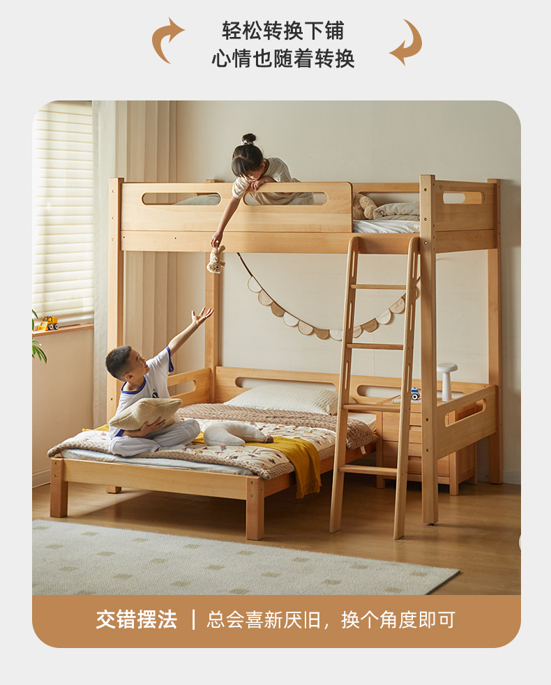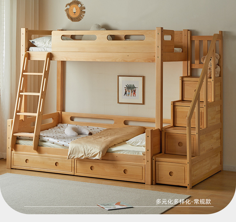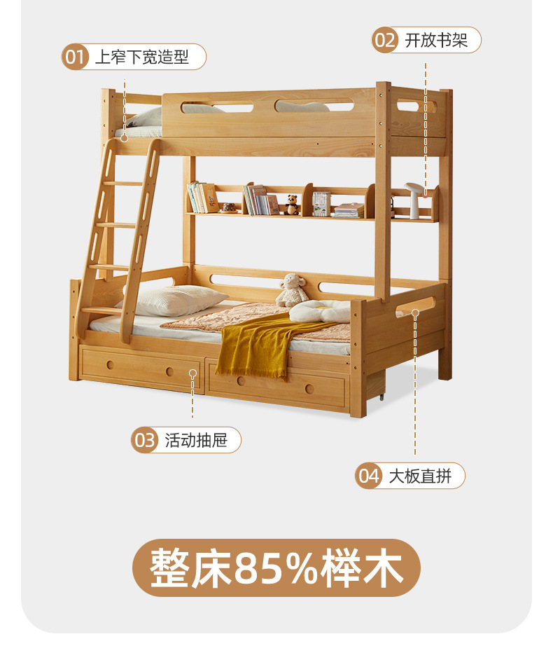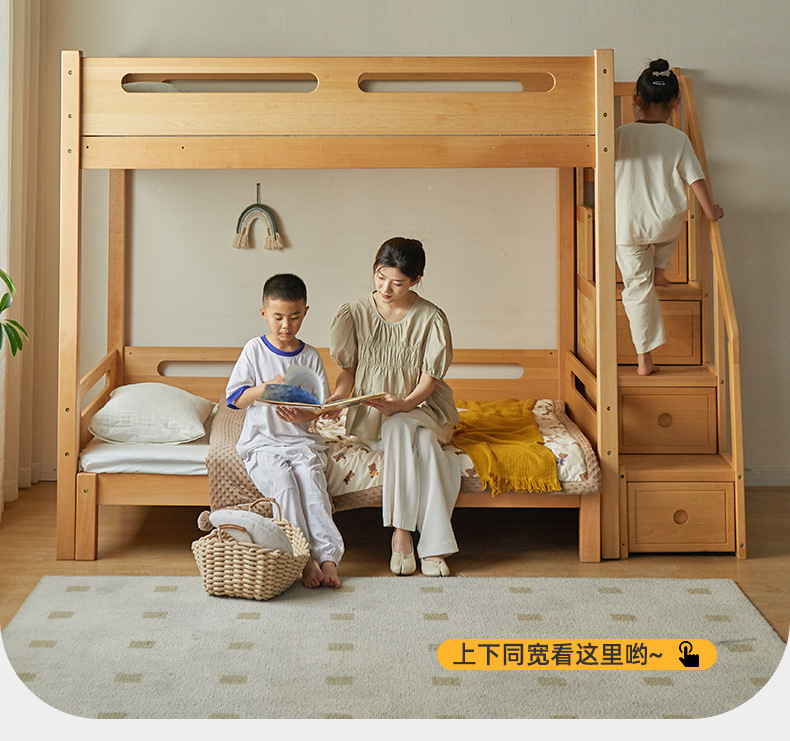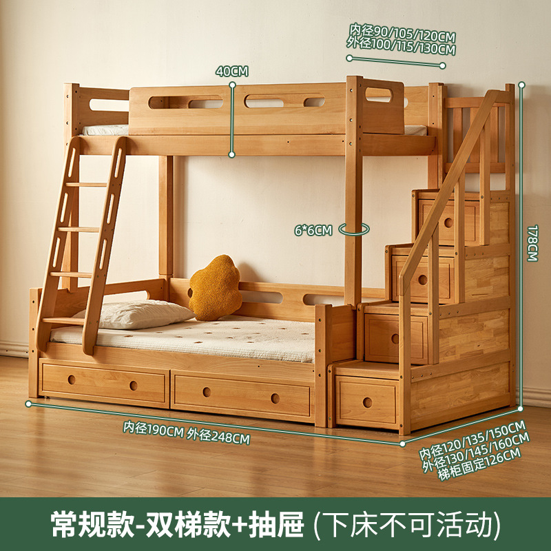 진두옥시 풀 솔리드 우드 상하 이층 침대가 높고 낮은 침대 작은 아파트 상하 아동침대 W18
