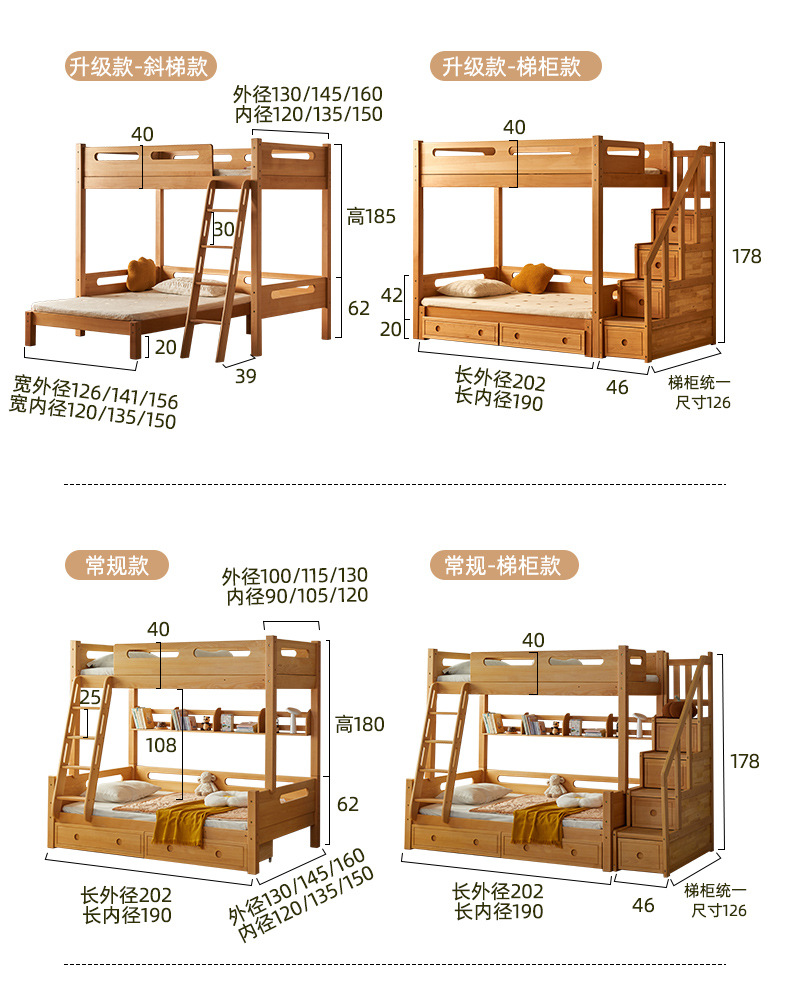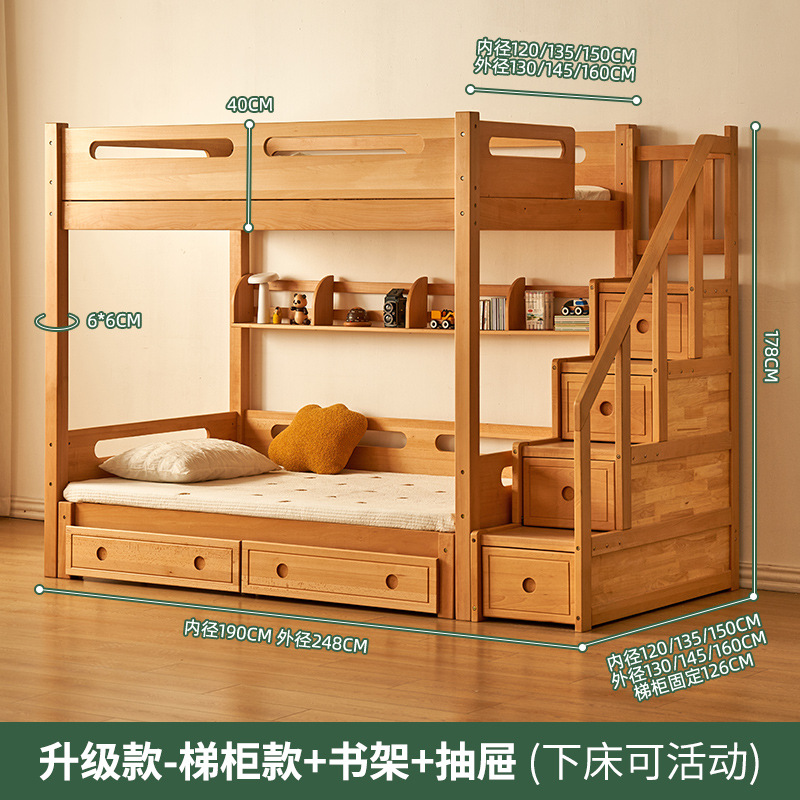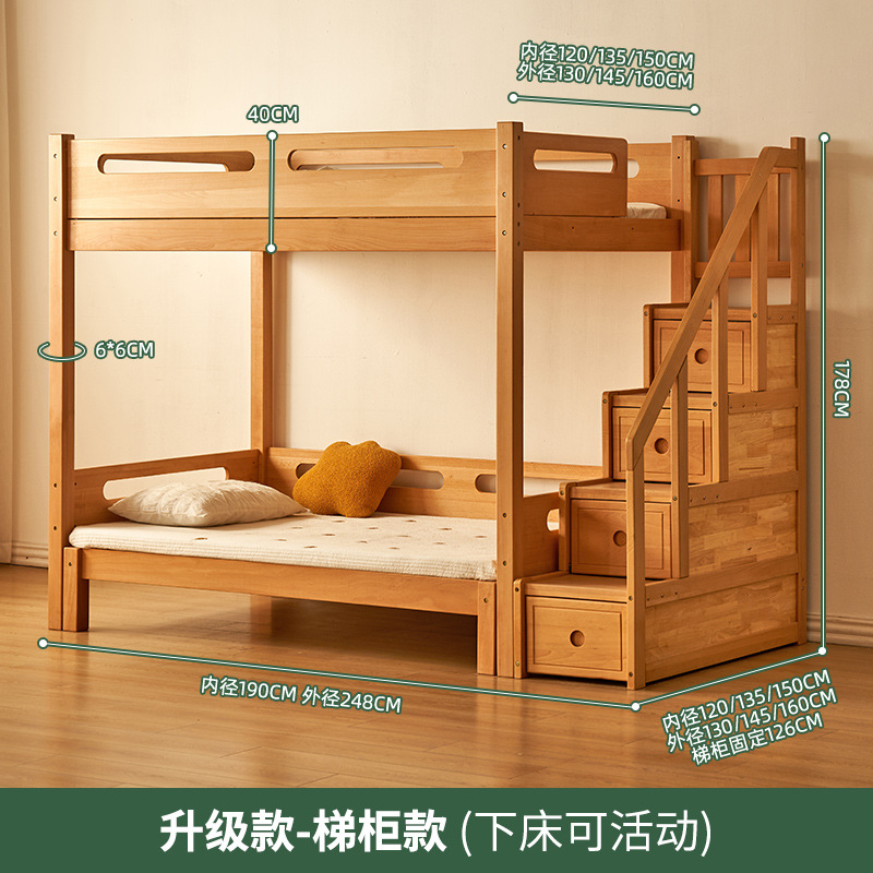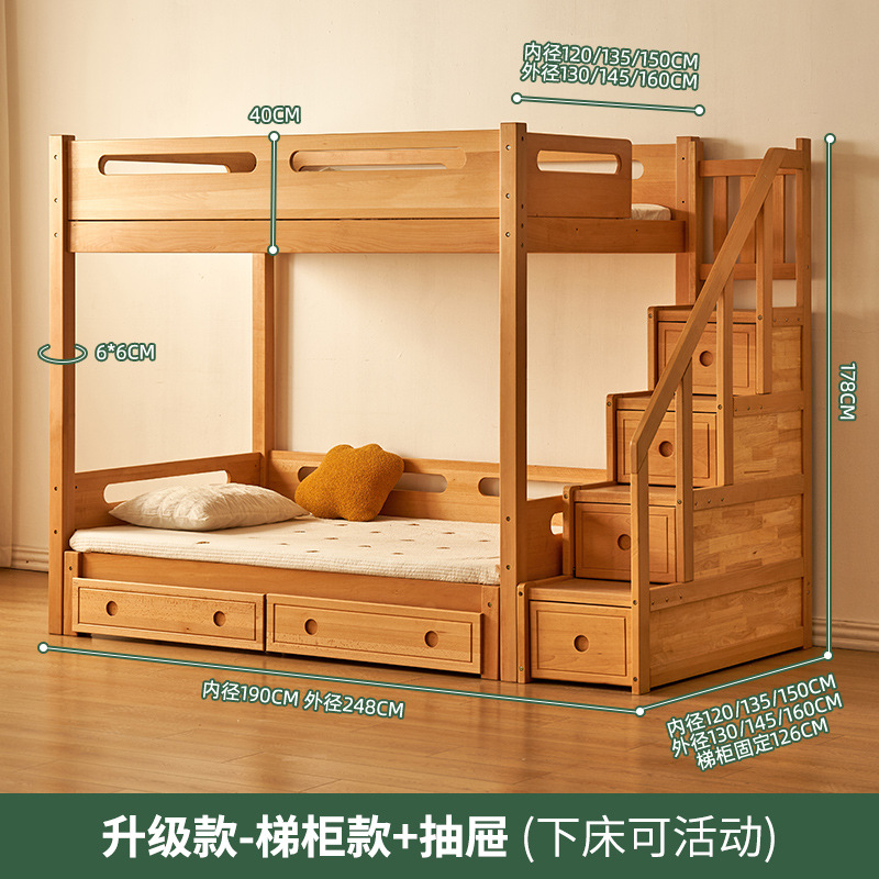 • 업그레이드 모델 - 사다리 캐비닛 + 침대 + 서랍(하부 침대는 이동 가능), 무료 상부 및 하부 매트리스