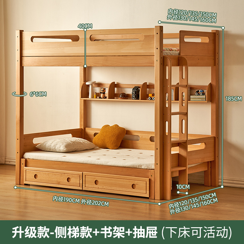 • 업그레이드 모델 - 사이드 사다리 + 침대 + 책장 + 서랍(하단 침대는 이동 가능), 무료 매트리스 및 하부 매트리스