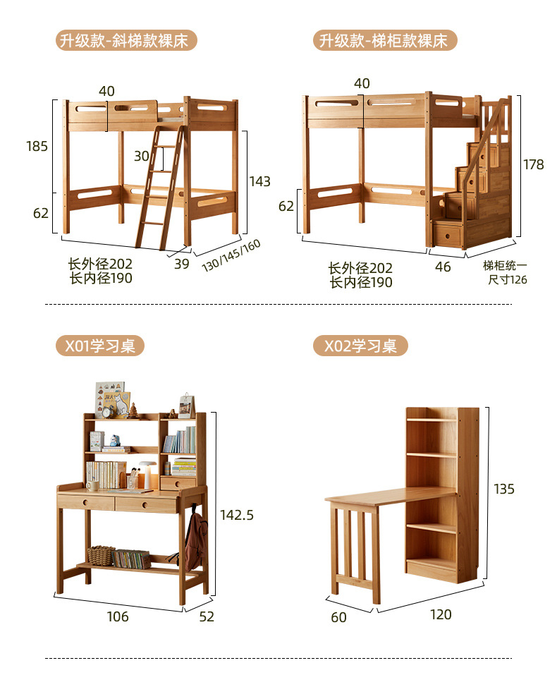 • 업그레이드 모델 - 사다리 캐비닛 + 침대(하부 침대는 이동 가능), 무료 상부 및 하부 매트리스