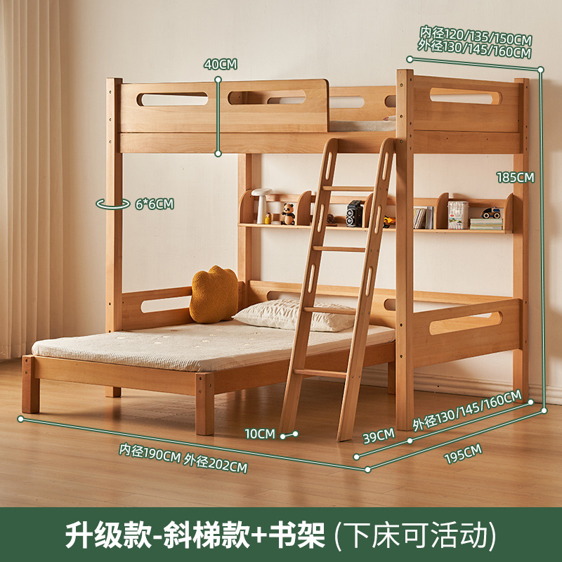 • 업그레이드 모델 - 경사사다리 + 침대 + 책장(하부 침대는 이동 가능), 무료 상부 및 하부 매트리스