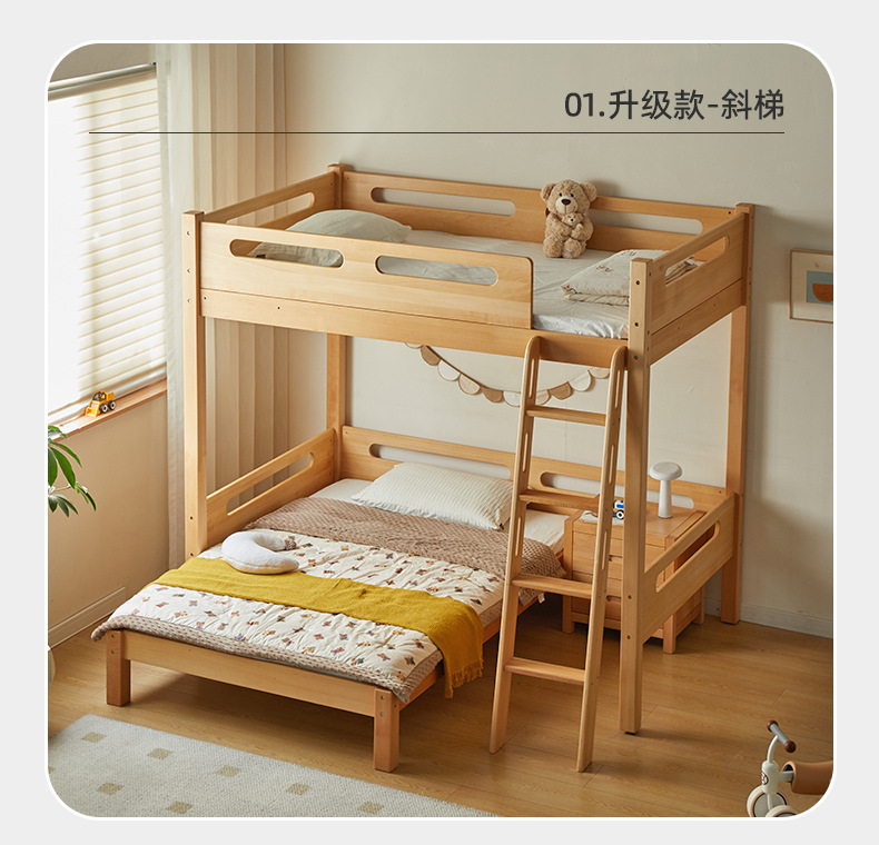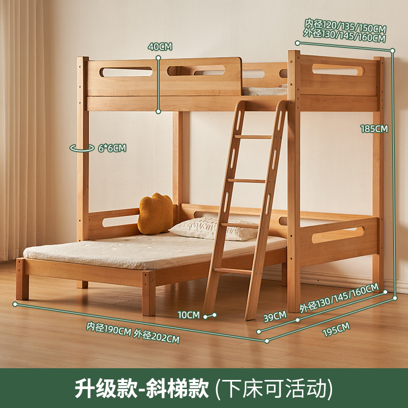 • 업그레이드 모델 - 경사사다리 + 침대(하부층이 이동 가능), 매트리스 상하 포함