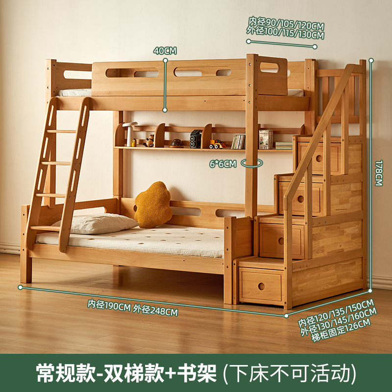 • 업그레이드 모델 - 사다리 캐비닛 + 침대 + 책장 + 서랍(하단 침대는 이동 가능), 상단 및 하단 매트리스 포함