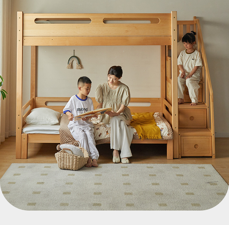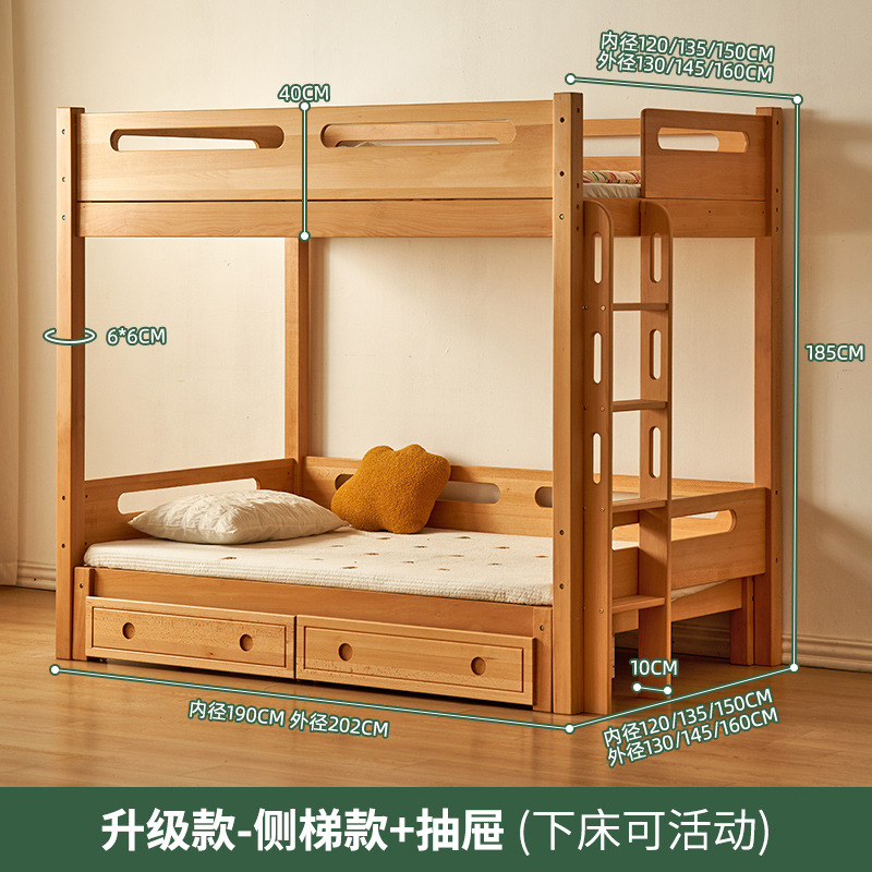 • 업그레이드 모델 - 사이드 사다리 + 침대 + 서랍(하부 침대는 이동 가능), 상단 및 하단 매트리스 포함