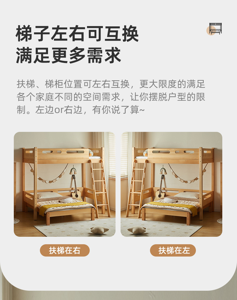 • 업그레이드 모델 - 사이드 사다리 + 침대(하부 침대는 이동 가능), 무료 상부 및 하부 매트리스