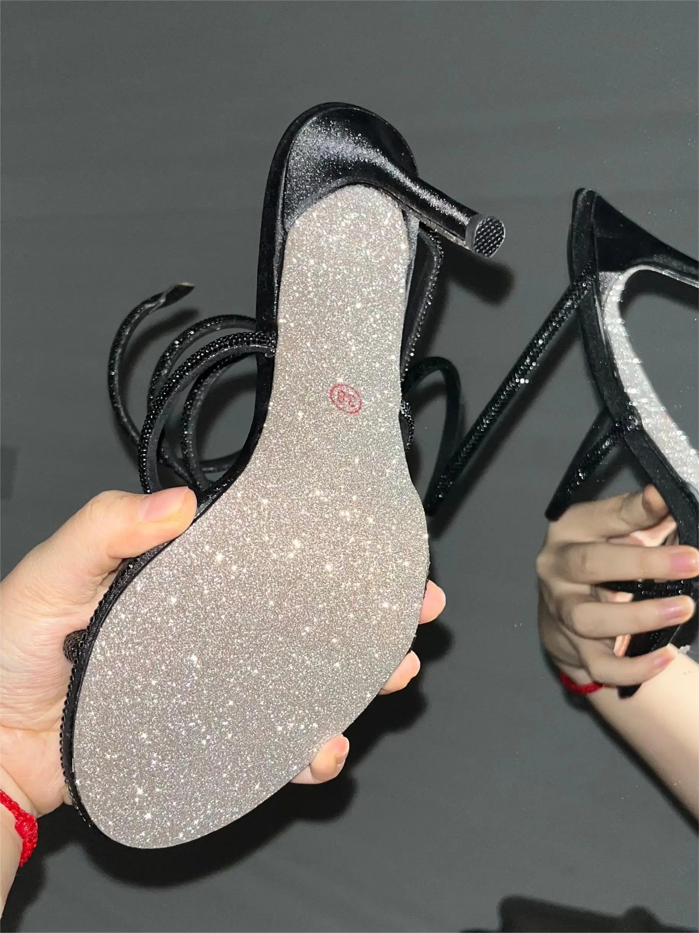 공장 직접 공급 2024 여름 새로운 하이힐 샌들 여성 스트랩 얇은 가열 대외 무역 플러스 사이즈 여성용 샌들 장기 선물