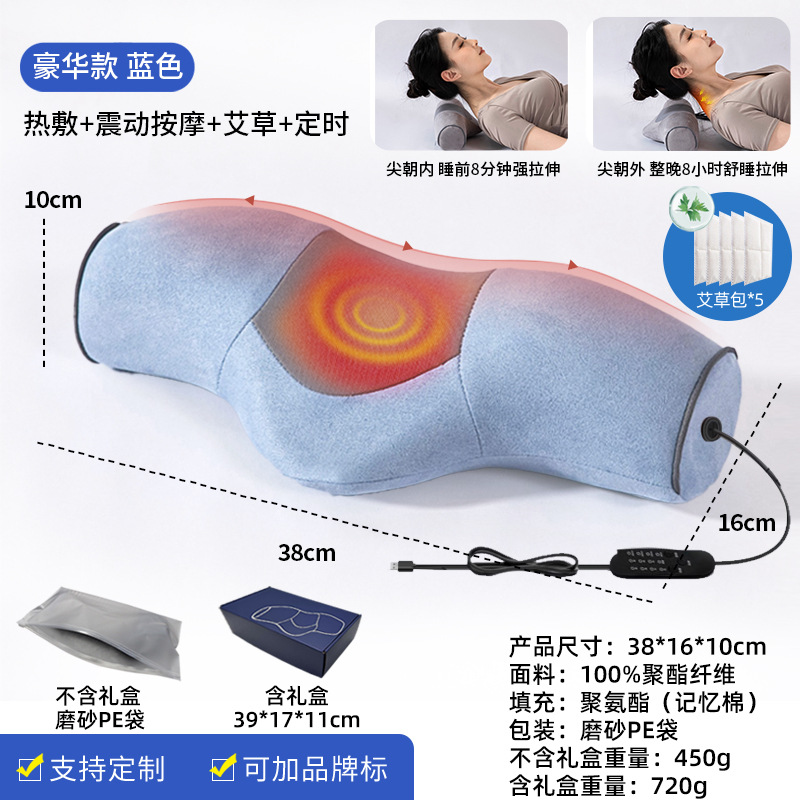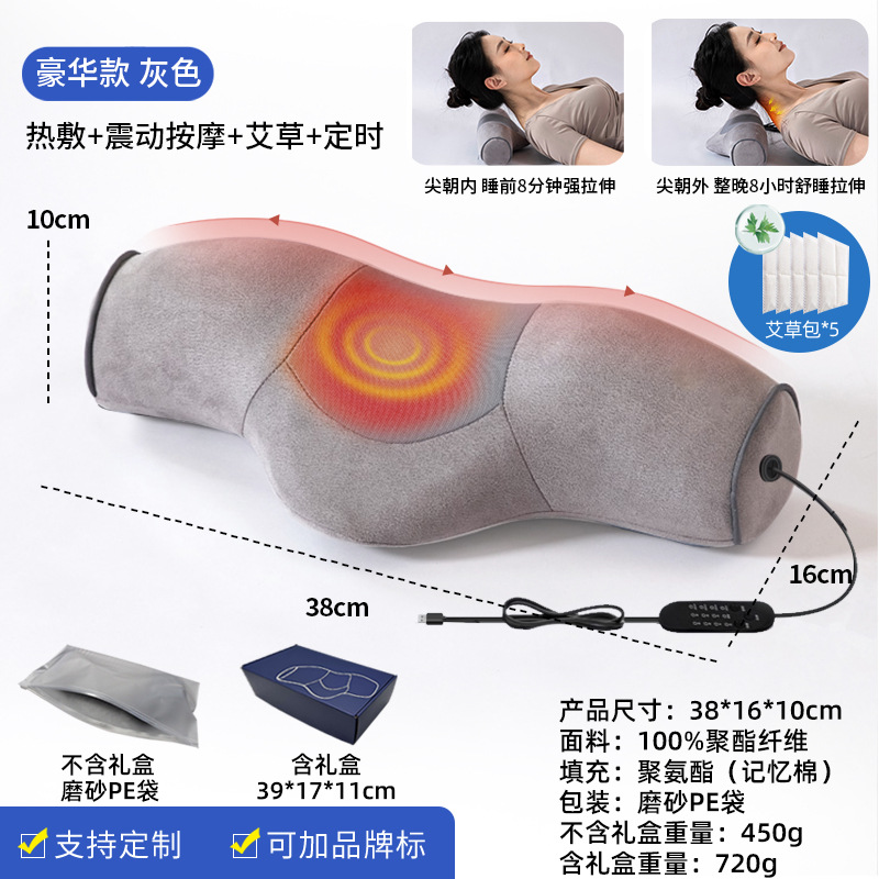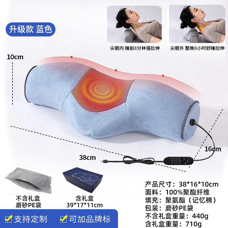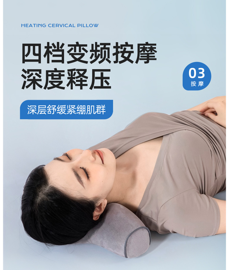 뻣뻣함을 보호하고 수면 마사지를 돕기위한 수면 난방 및 진동을위한 자궁 경부 척추 베개 원통형 뜨거운 압축 가정용 목 베개스토어 가기