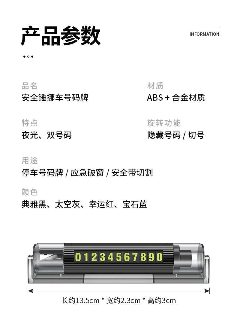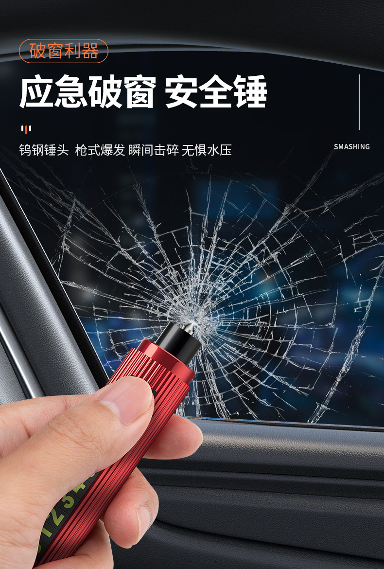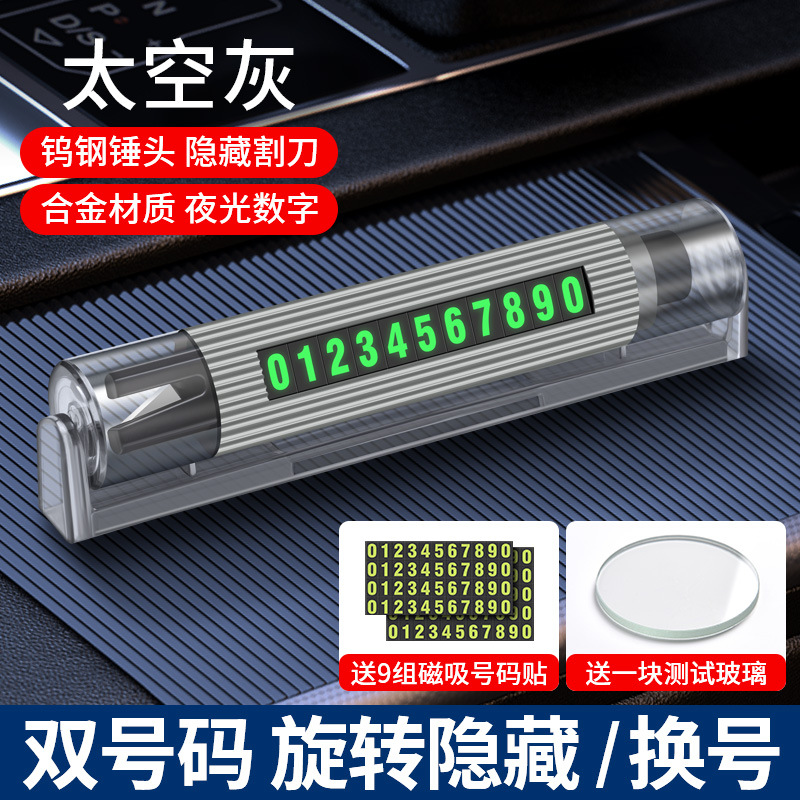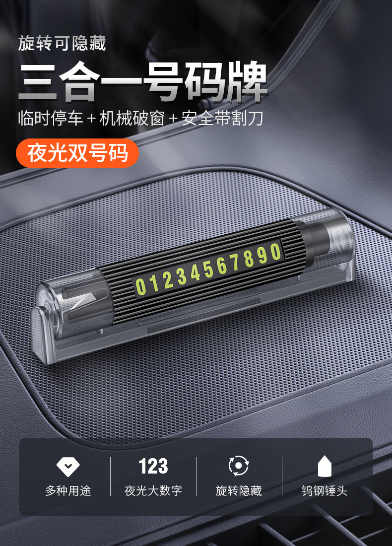 차량 장착 다기능 안전 해머 비상 자동차 탈출 망치 임시 주차 이중 번호 플레이트 편리한 미니 창 차단기
