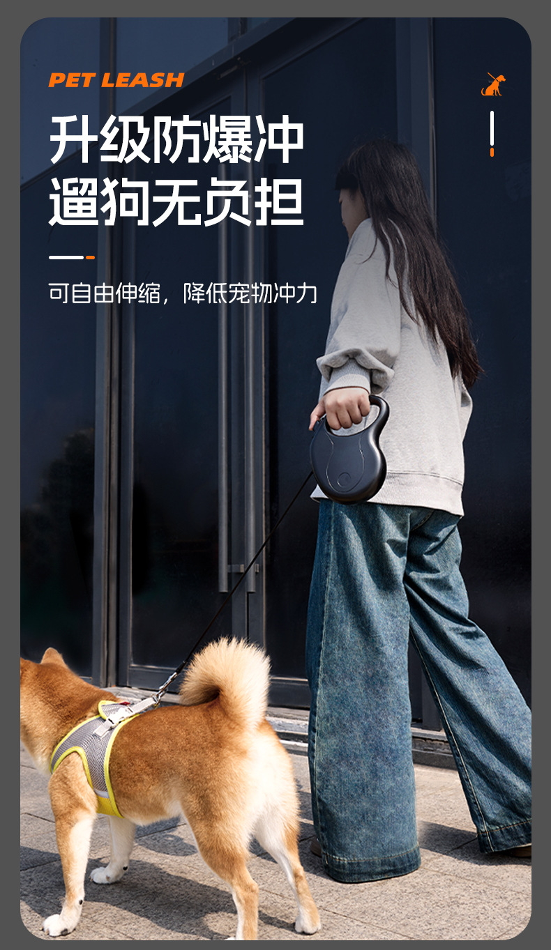 애완 동물 견인 로프 텔레스코픽 원 버튼 제어 가능한 폭발 방지 안전 개 보행 로프 재고 국경 간 도매 트랙터 용품스토어 가기