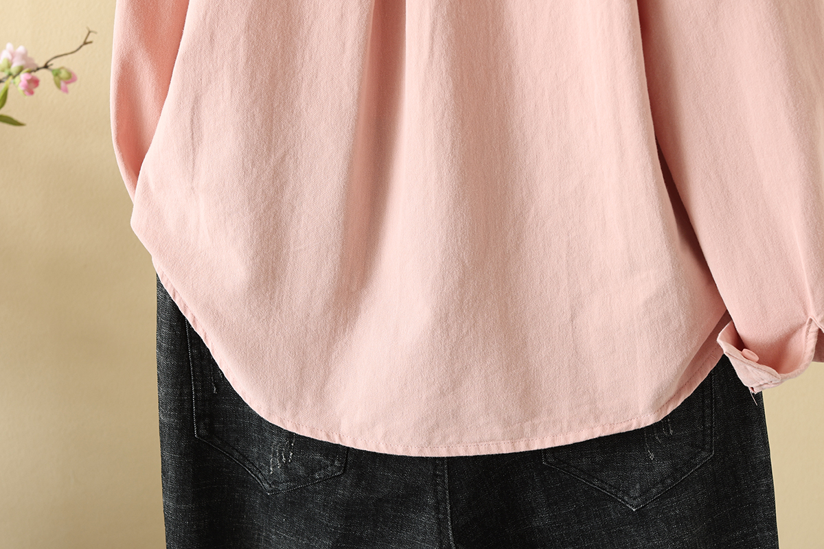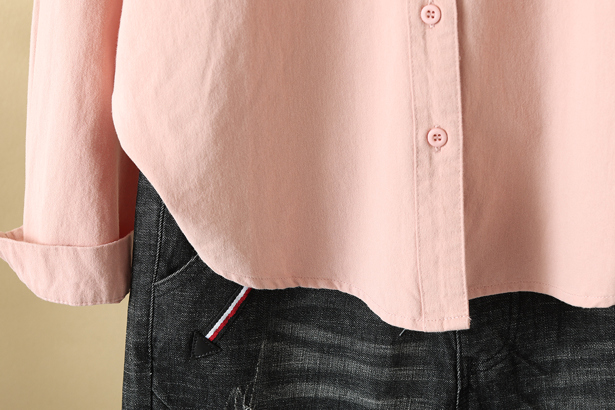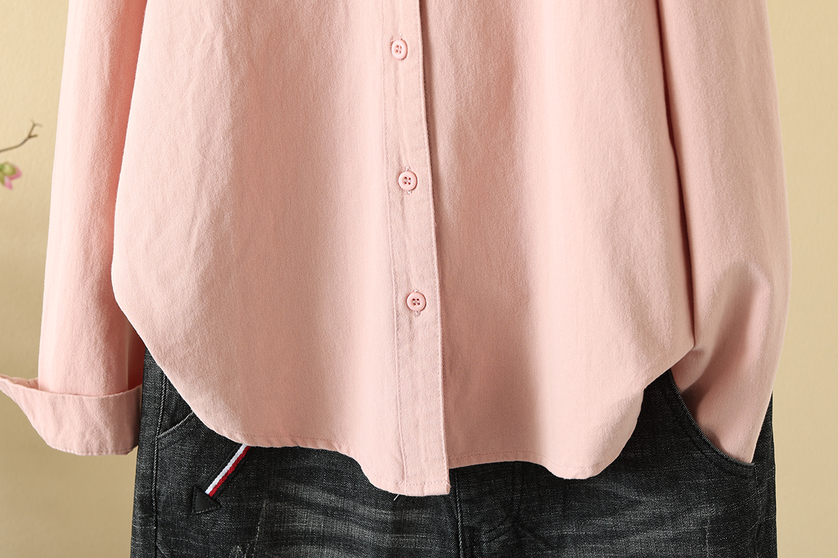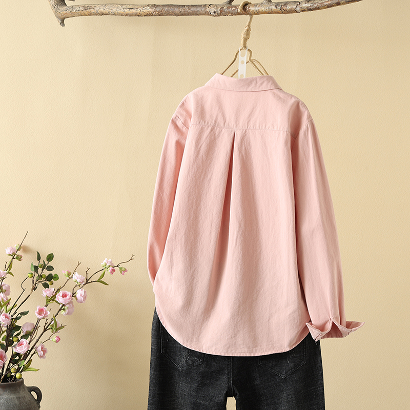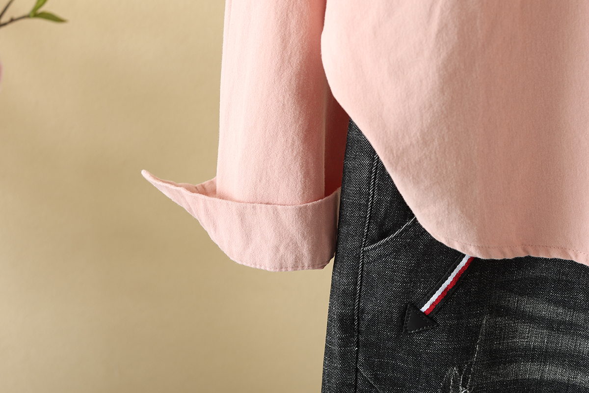 2024 이른 봄 샌딩 면 두꺼운 긴팔 단색 셔츠 여성용 캐주얼 간단한 셔츠베이스 탑