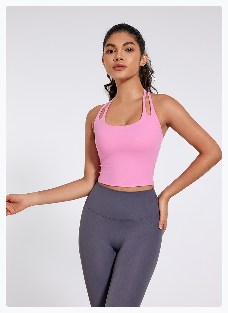 더 좋은 2024 목 더블 얇은 벨트 통합 스포츠 조끼 아름다운 다시 달리기 피트니스 스포츠 속옷 요가 의류 여성