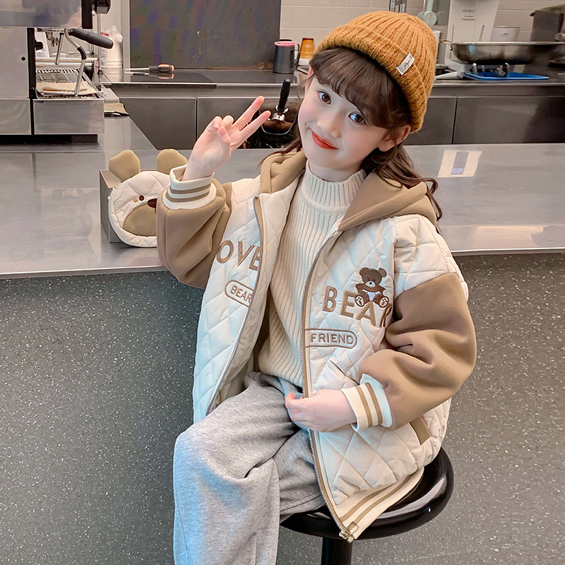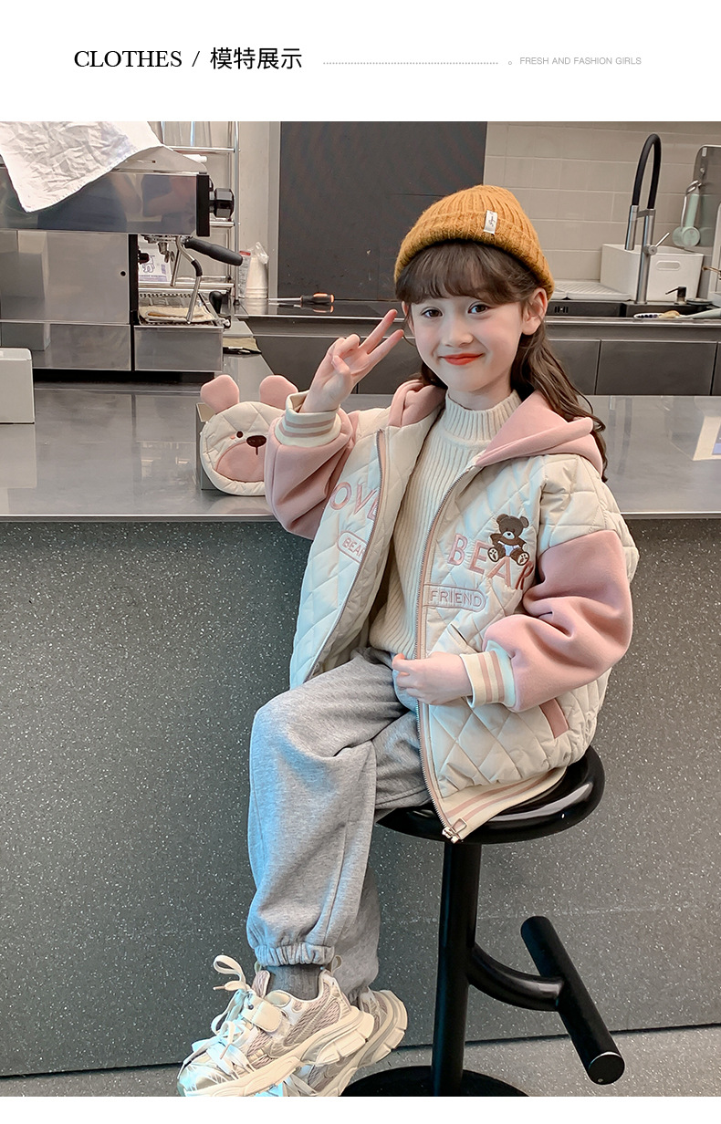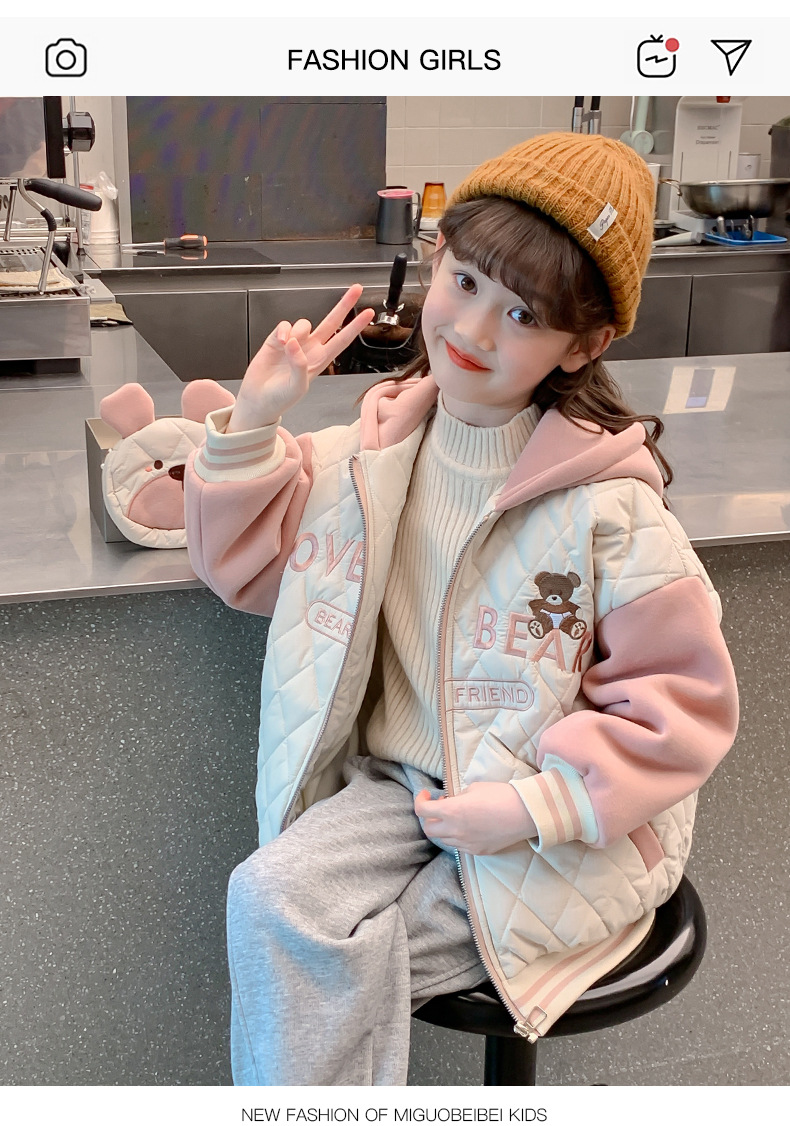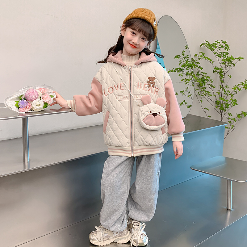 소녀 코트 가을과 겨울 2024 새로운 어린이 겨울 옷 기모 면 두꺼운 야구 옷 큰 어린이 겨울면 패딩 재킷스토어 가기