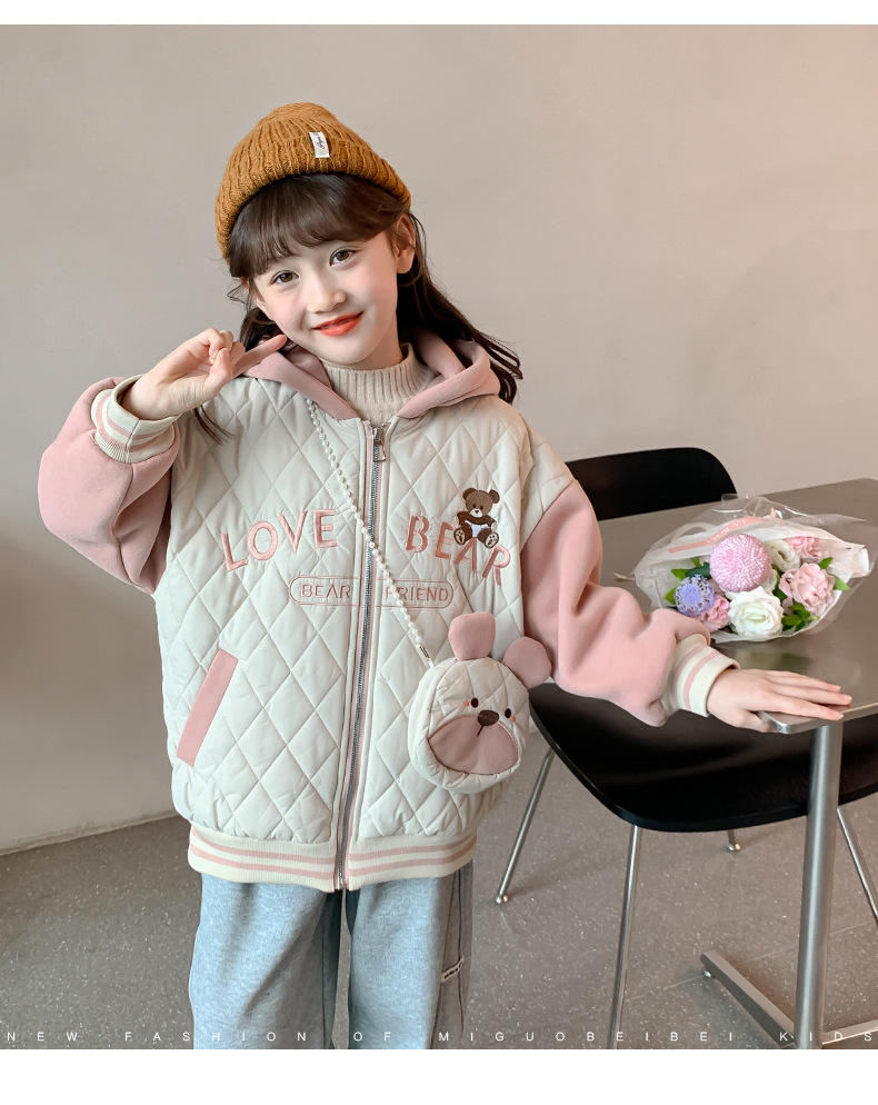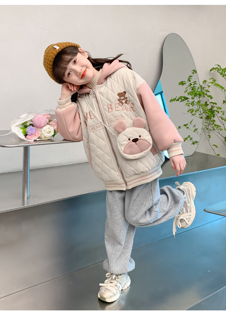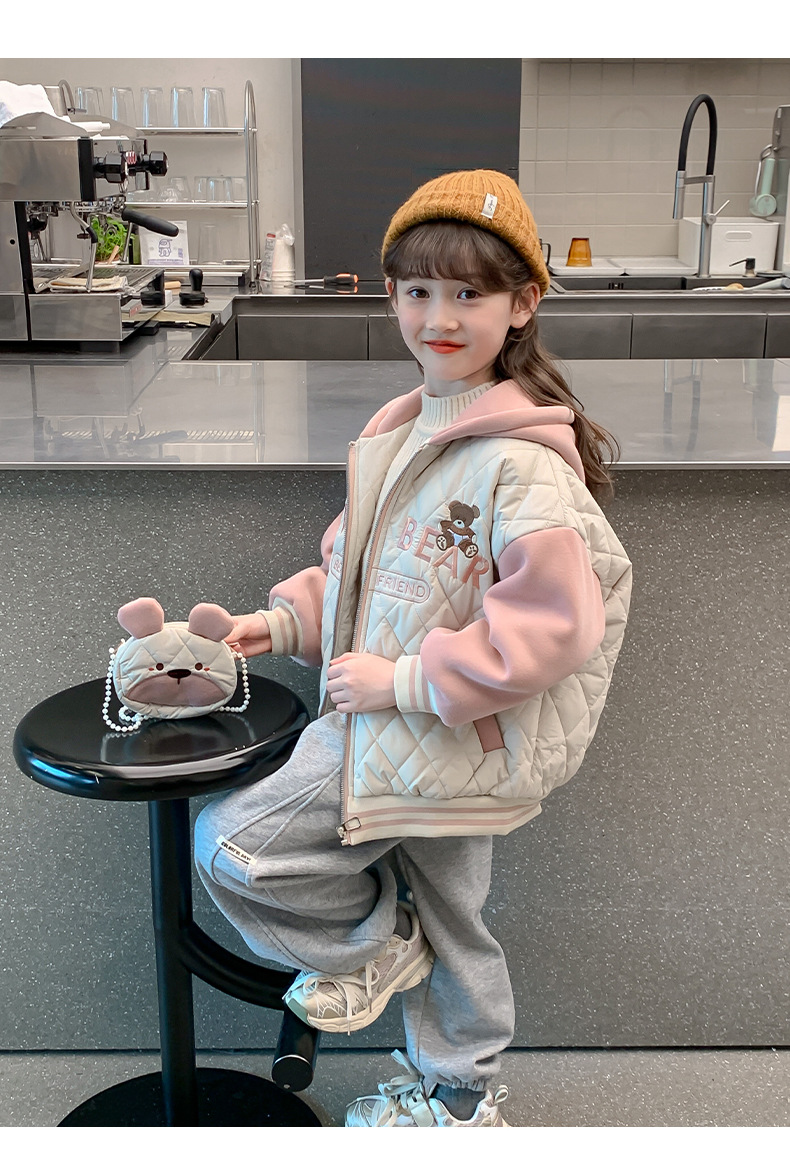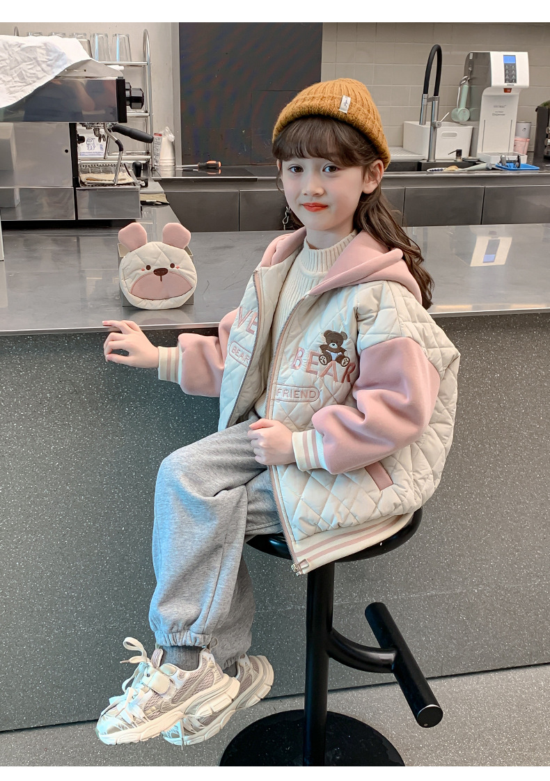 소녀 코트 가을과 겨울 2024 새로운 어린이 겨울 옷 기모 면 두꺼운 야구 옷 큰 어린이 겨울면 패딩 재킷스토어 가기