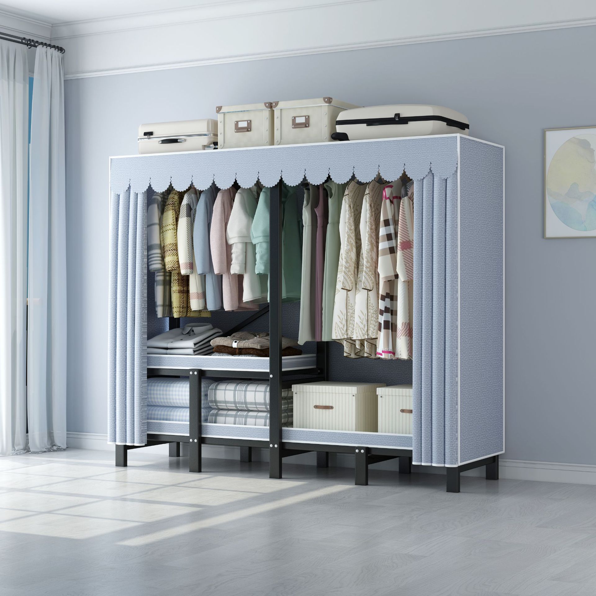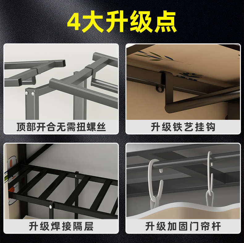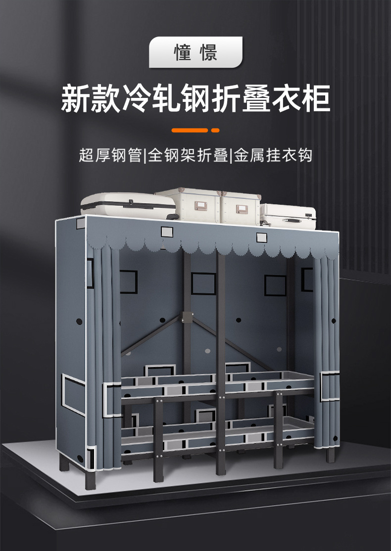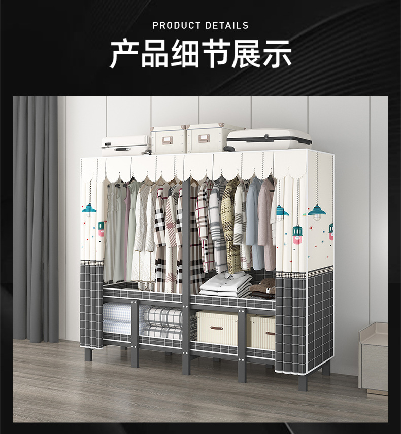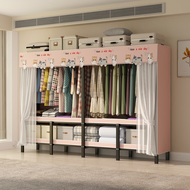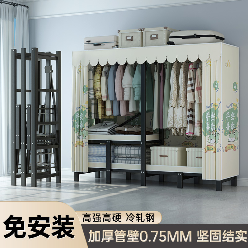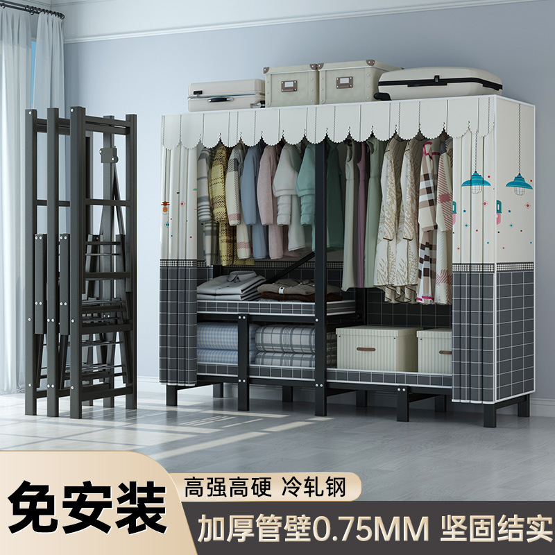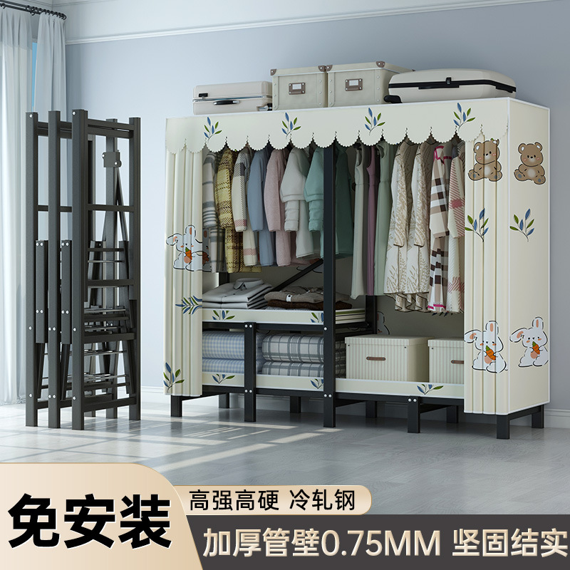 설치 무료 옷장 통합 접는 천 보관 옷장 30MM 탄소강 내구성있는 옷장 임대 2025