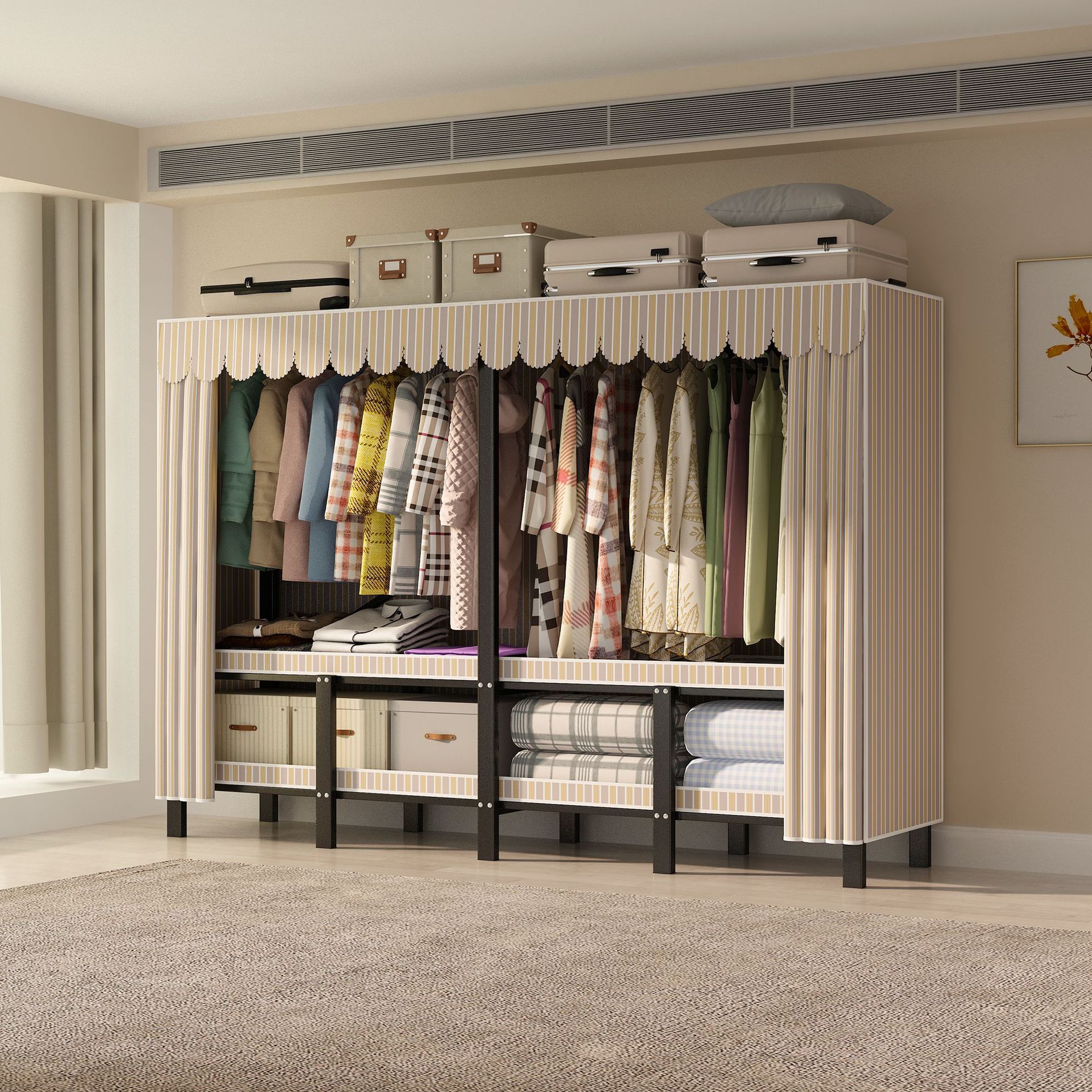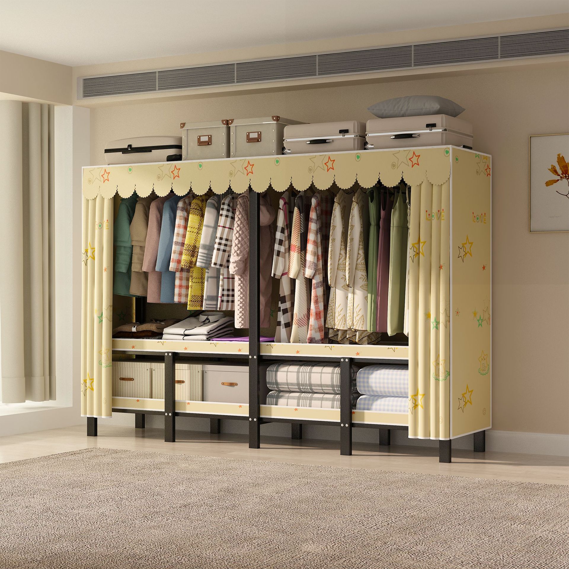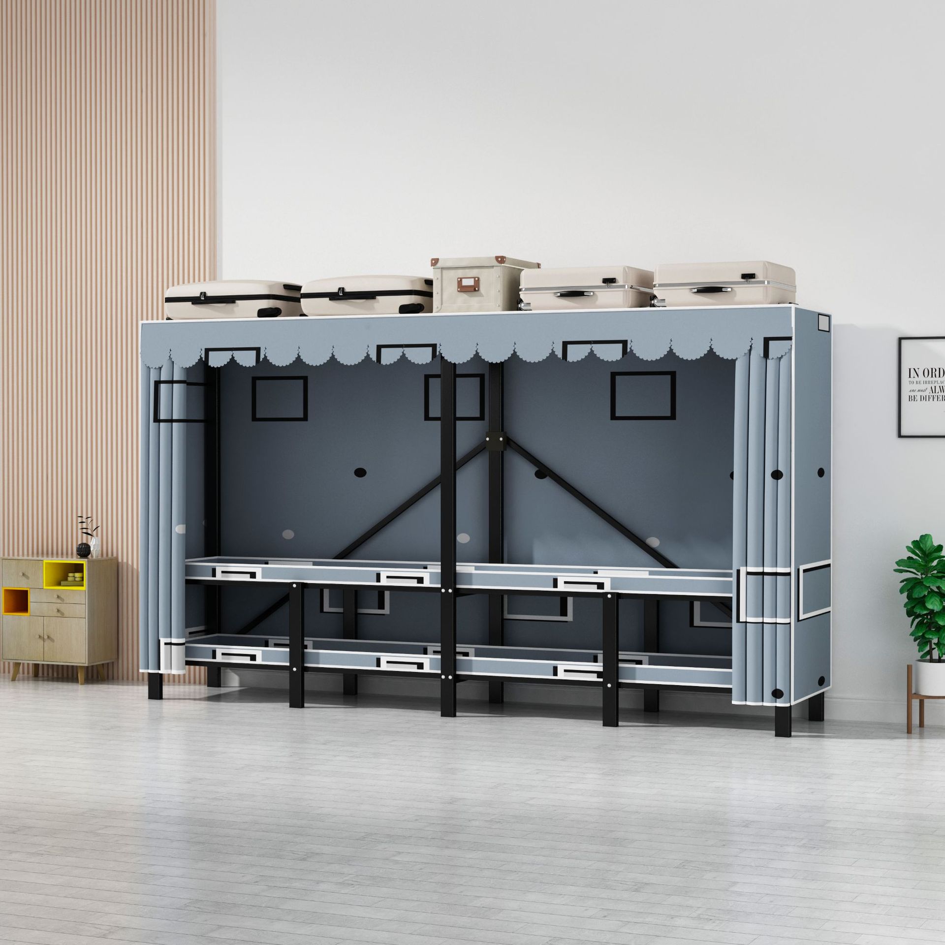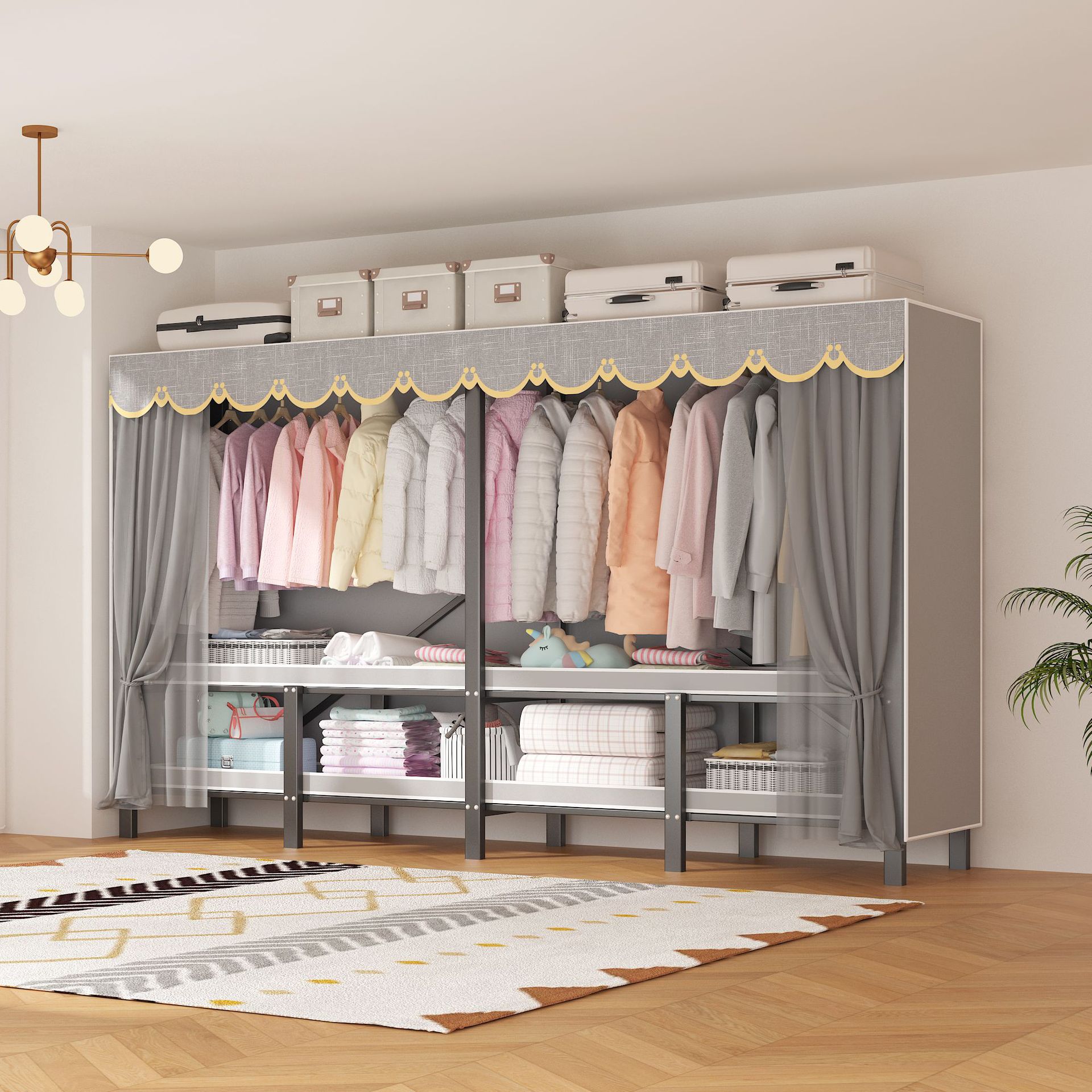 설치 무료 옷장 통합 접는 천 보관 옷장 30MM 탄소강 내구성있는 옷장 임대 2025