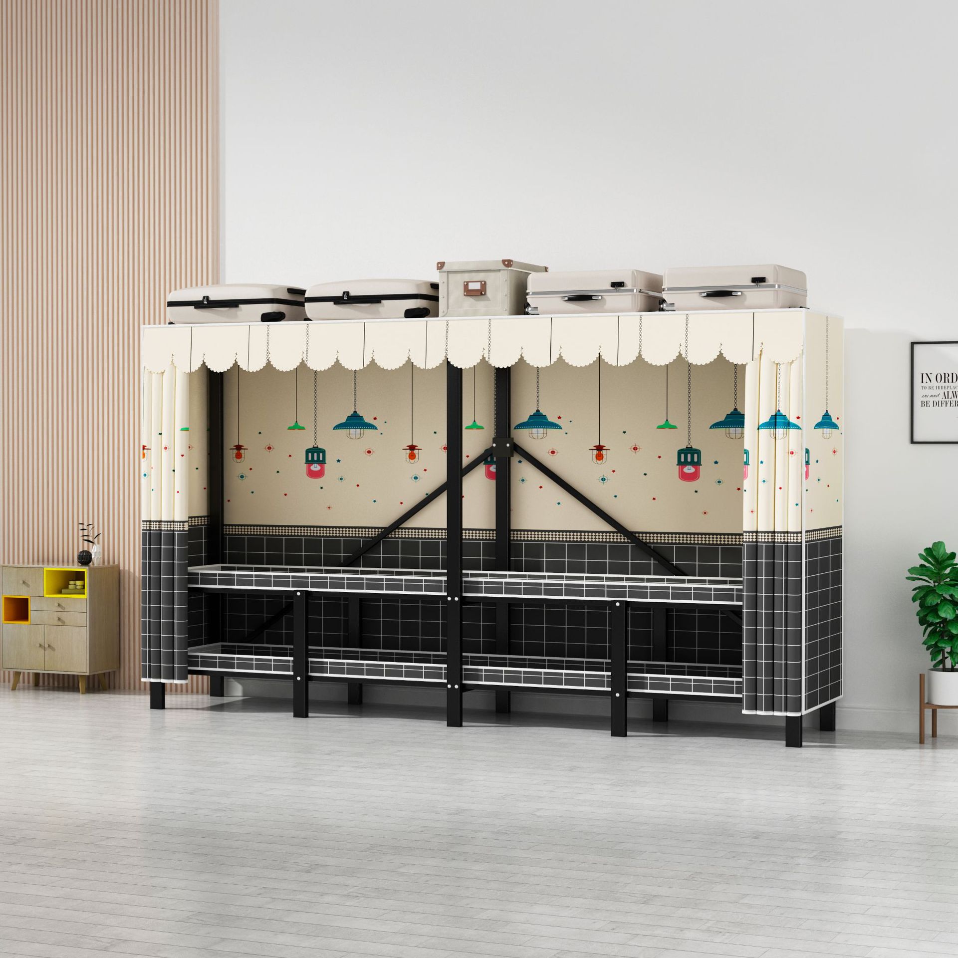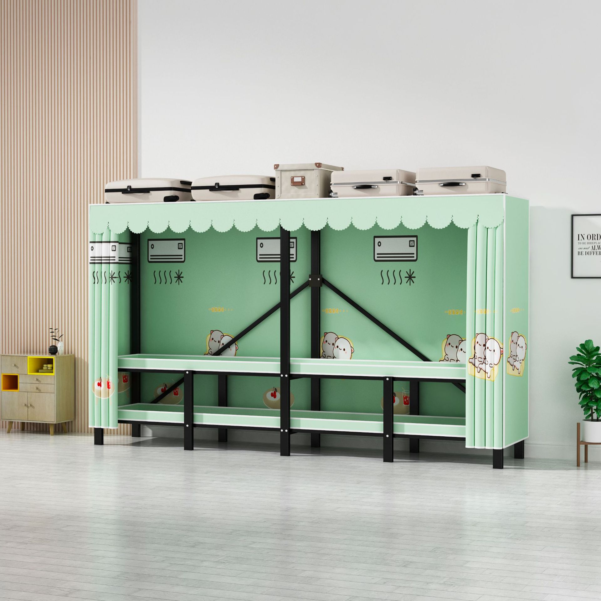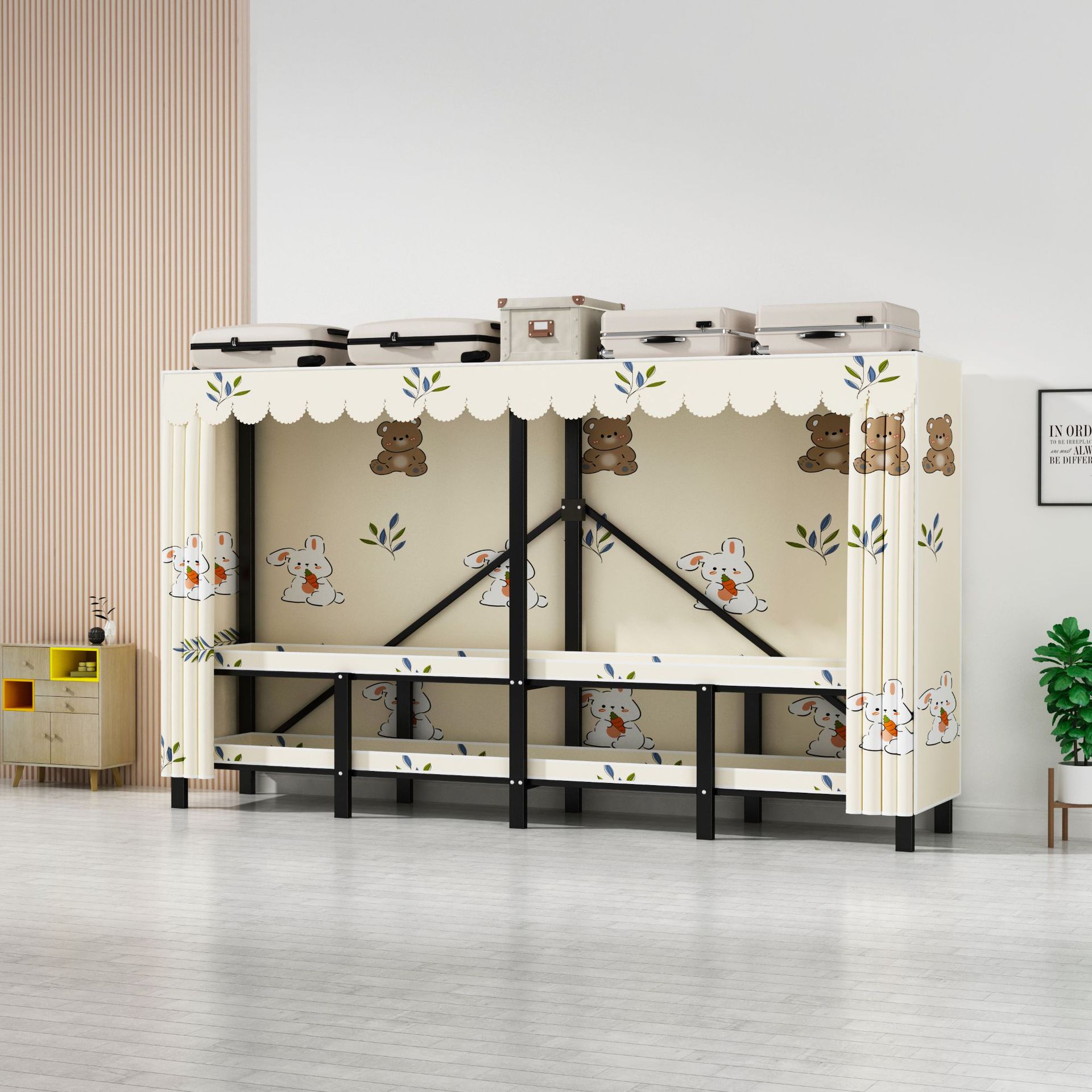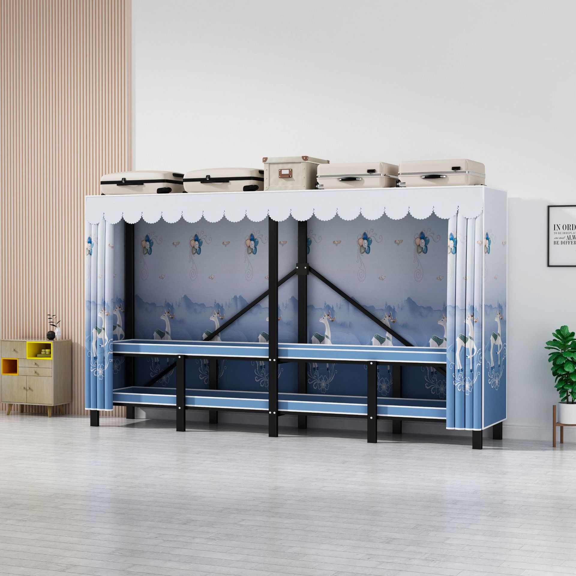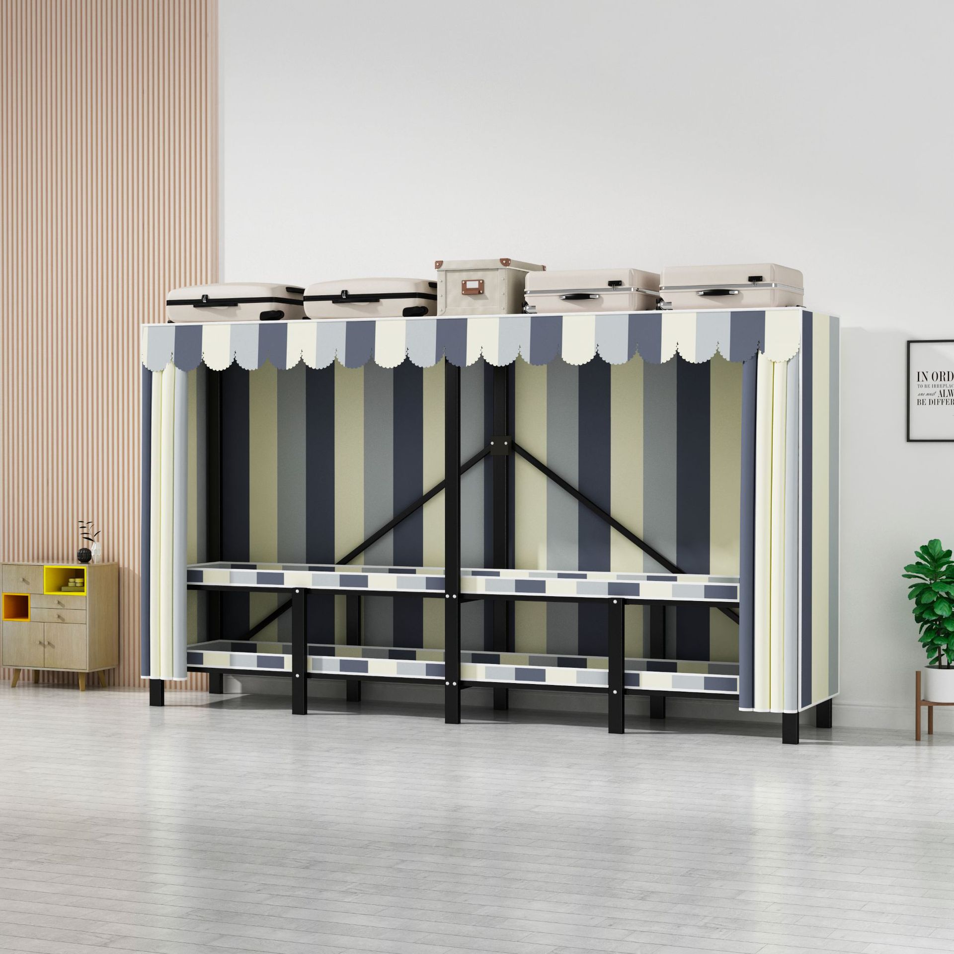 설치 무료 옷장 통합 접는 천 보관 옷장 30MM 탄소강 내구성있는 옷장 임대 2025