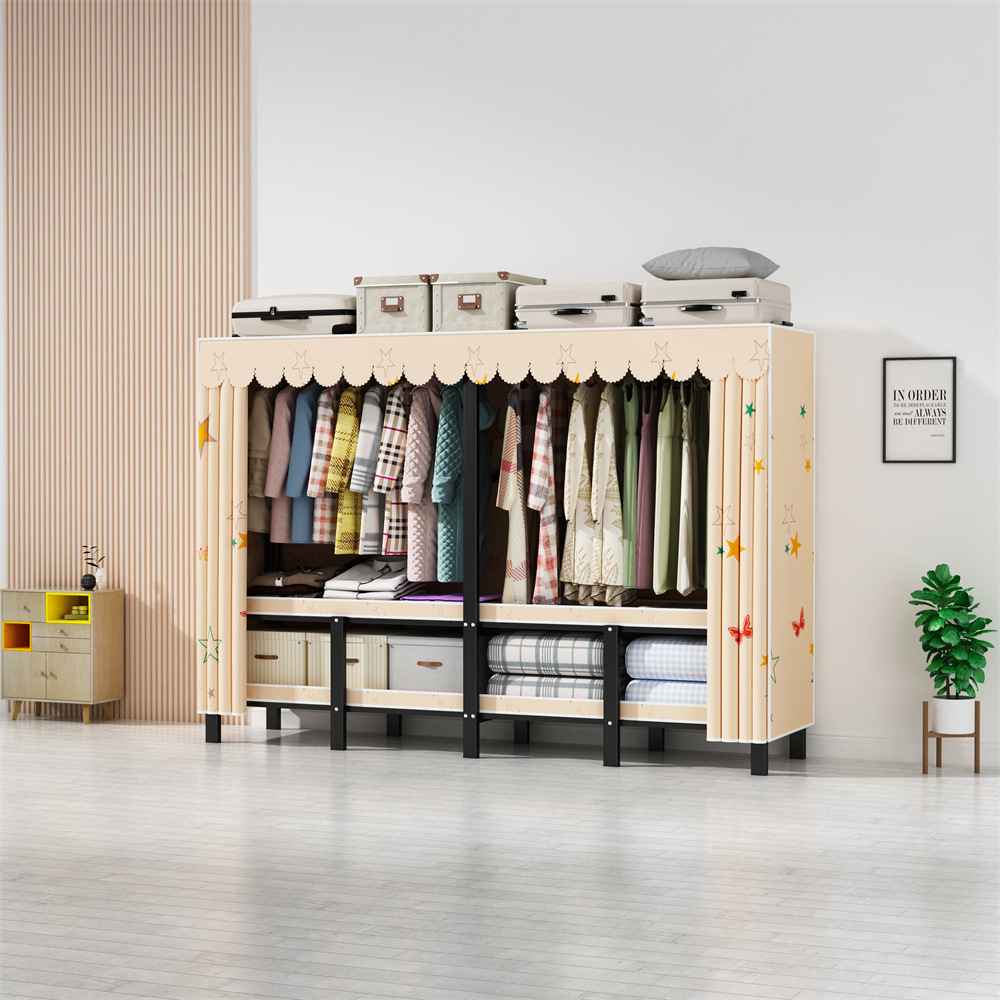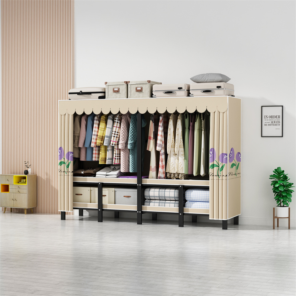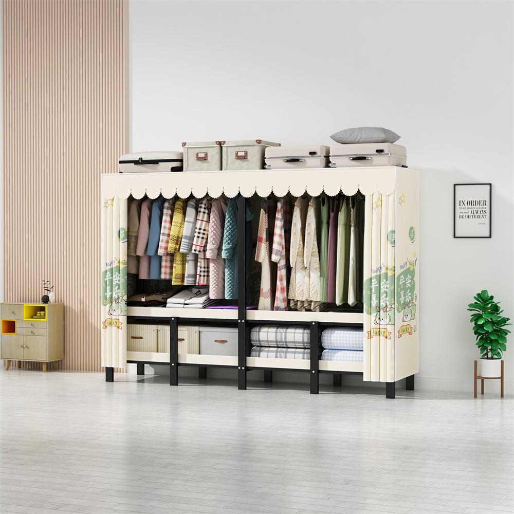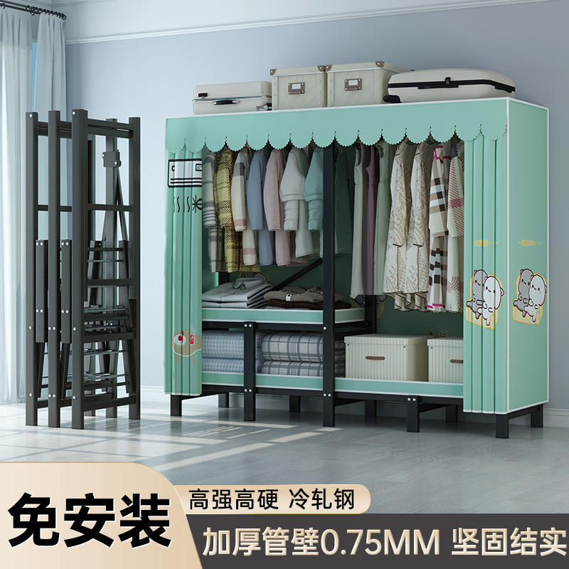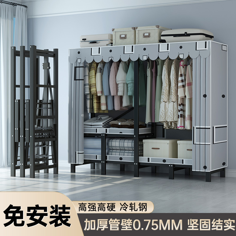 설치 무료 옷장 통합 접는 천 보관 옷장 30MM 탄소강 내구성있는 옷장 임대 2025스토어 가기